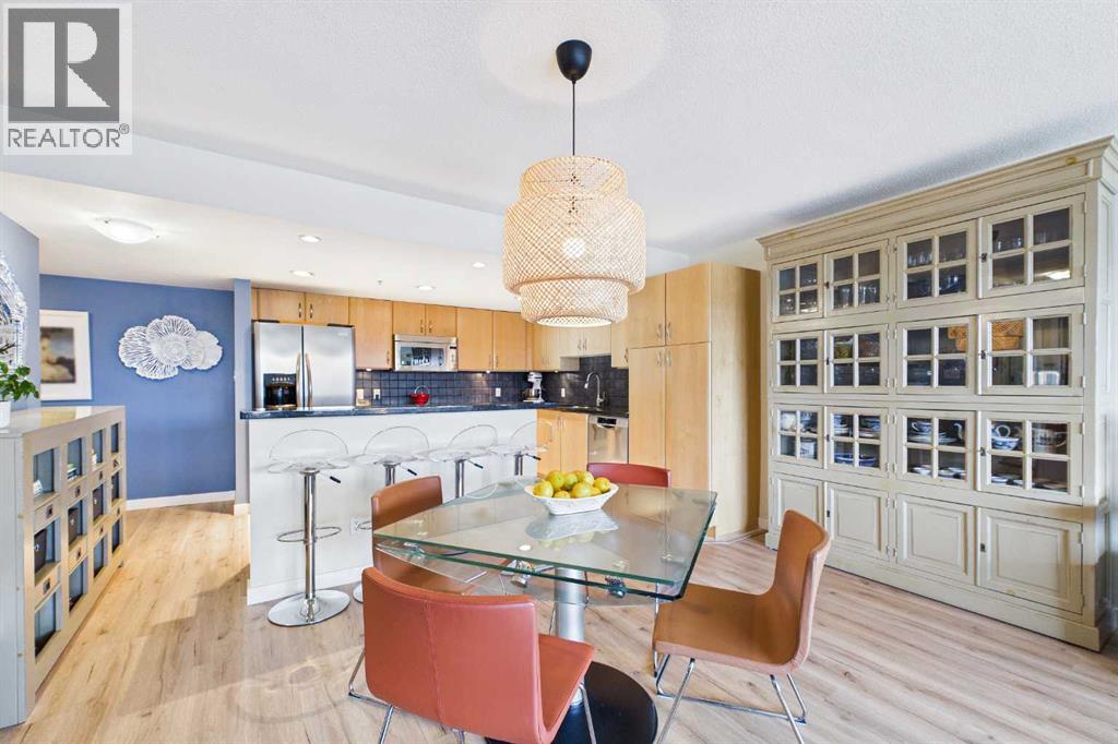 Welcome to this beautiful and spacious 3 Bedroom condo, boasting an exceptional layout with 1263 square feet of luxurious living space. All located in a quiet, safe, pet-friendly, CONCRETE BUILDING with top of class amenities including a swimming pool. As you step inside, you'll notice an abundance of natural light from the floor to ceiling windows with NW views of the Bow River. Enjoy the flow of this great floorplan with new luxury vinyl plank flooring, high ceilings, upgraded appliances, granite stone countertops, ample counter space, generous cupboard storage, under-cabinet lighting, a large eat-up bar, and plenty of room for a dining table. The open and inviting living room is complete with cozy gas fireplace with mantle and stone surround. Down the hall, the primary bedroom boasts a full bathroom with heated tile flooring, bathtub and stylish vanity. The second bedroom is generously sized, perfect for family or guests. As well, there is a 3 piece bathroom with stand up shower. The bonus features of this unit are the 2 separate balconies and 3rd bedroom that can also be used as a home office, yoga studio or flex space. This condo also includes in-suite laundry, additional storage spaces and TWO Underground heated parking stalls! River West is one of the premier city-center complexes and one of the few offering a private swimming pool, hot tub, fully equipped fitness center, and a social lounge. Perfect for playing cards, birthday parties or family gatherings. Additional features include secured heated underground visitor parking and concierge. This safe and quiet building is in a prime location, only steps to the Bow River pathway system. You can enjoy the convenience of walking to work, hopping on the LRT, quick access over the bridge to the plentiful coffee shops and restaurants of Kensington, or take a stroll to Eau Claire. Steps from the building is lovely Bowforth Park with a fenced off-leash dog park, allowing your pets to run free. This solid, concrete h igh-rise, built by the renowned Bosa Developments, offers some of the lowest condo fees per sq ft in the downtown core, a well-managed condo board, reception (Monday-Friday) and a controlled-access security system. Whether you're looking for a great place to call home or a fantastic investment opportunity, this property has it all! (id:58070)