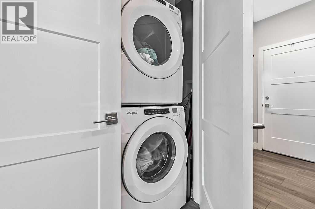 Welcome to stylish, low maintenance living in the heart of Calgary. This beautifully upgraded one bedroom condominium offers the perfect balance of modern finishes and everyday functionality, ideal for first time buyers, investors, or anyone looking to simplify without sacrificing style. From the moment you step inside, you will appreciate the bright open layout, enhanced by large windows and luxury vinyl plank flooring that flows throughout the main living space. The atmosphere is warm and inviting, with a layout designed to make the most of every square foot. The kitchen is sure to impress with 40 inch upper cabinets extended to the ceiling with filler, sleek quartz countertops, stainless steel appliances including a fridge with ice and water, and generous cabinet and counter space. Whether you love to cook or prefer to entertain, this kitchen delivers both beauty and practicality. The in suite laundry is thoughtfully tucked away in its own dedicated closet, keeping everything neat and out of sight. The spacious living room has patio doors to your private balcony, offering room for comfortable seating and complete with a gas line for your BBQ. It is the perfect place to relax at the end of the day or host friends on warm evenings. The bedroom easily fits a king size bed and features a convenient walkthrough closet leading to the elegant four piece bathroom. Here you will find quartz counters, excellent storage, and tile that extends to the ceiling in the tub and shower, creating a polished, upscale feel. This home also includes a prime end unit parking stall in the heated parkade, complete with additional storage and the added bonus of a private EV plug. The pet friendly building welcomes your furry companions with approval. Set within a walkable community filled with scenic pathways, easy access to transit and the LRT, and an array of shops, restaurants, and amenities just steps away, the location is truly exceptional. You may find you rarely need your car. With modern upgrades, smart design, and an unbeatable setting, this is an incredible opportunity to enter the Calgary market in style. (id:58070)