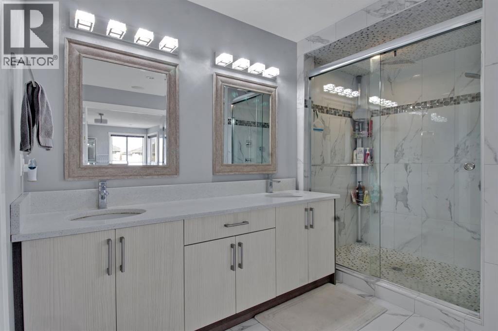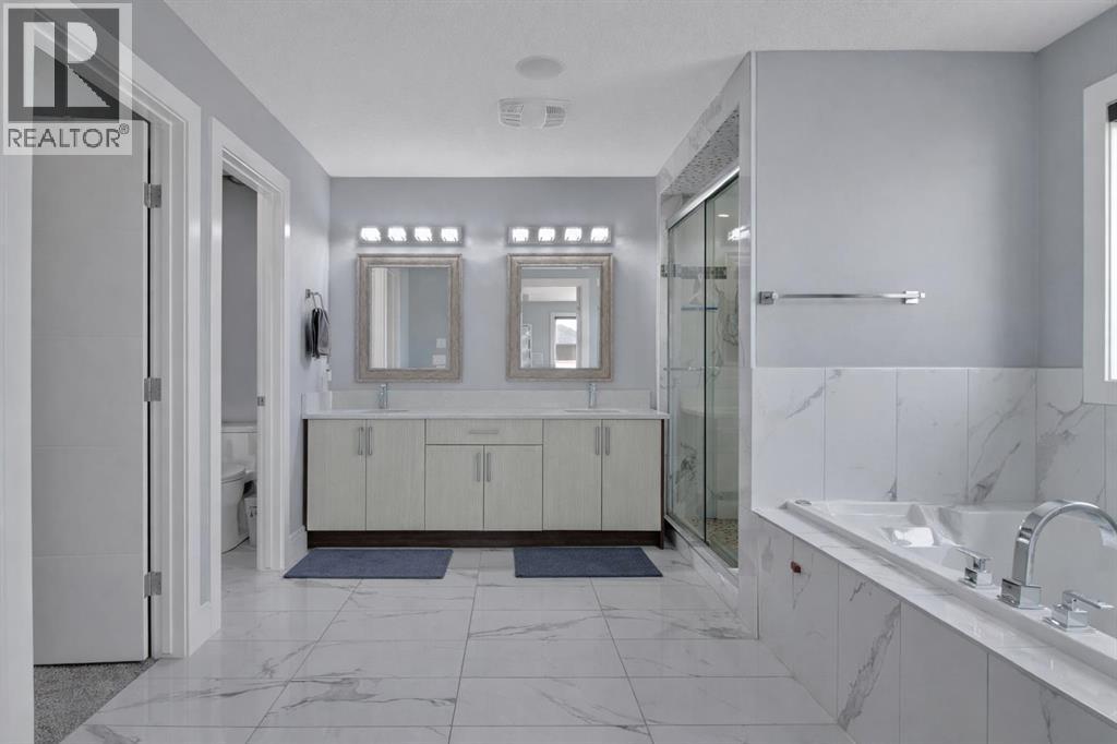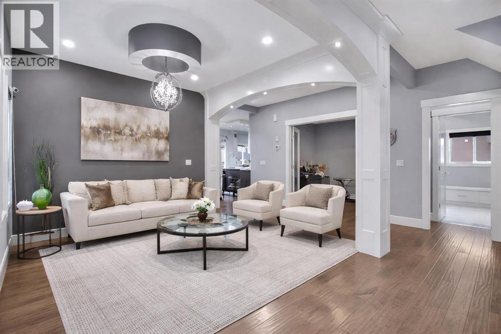 Welcome to this stunning home in the sought-after community of Kinniburgh sits on a Greenspace lot, offering exceptional curb appeal and a rare triple attached garage. Featuring 6 bedrooms and 5 full bathrooms, this home is designed for both comfort and elegance.The main floor showcases gleaming tile and Brazilian hardwood flooring, a versatile formal room, and a private office with French doors. The heart of the home is a beautifully designed two-tone chef’s kitchen with granite countertops, high-end built-in appliances, and a large island overlooking the inviting family room with a modern fireplace. A bright breakfast nook leads to a spacious deck—perfect for summer living.Upstairs offers a generous bonus room, multiple well-sized bedrooms, and a luxurious primary retreat complete with a spa-inspired ensuite. Basement is finished with separate walk-up entrance high ceilings, kitchen, spacious living area and 2bed/1bath. Book your private showings today! (id:58070)