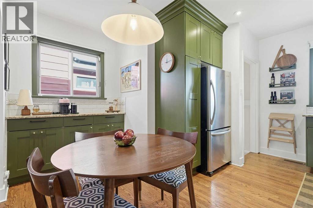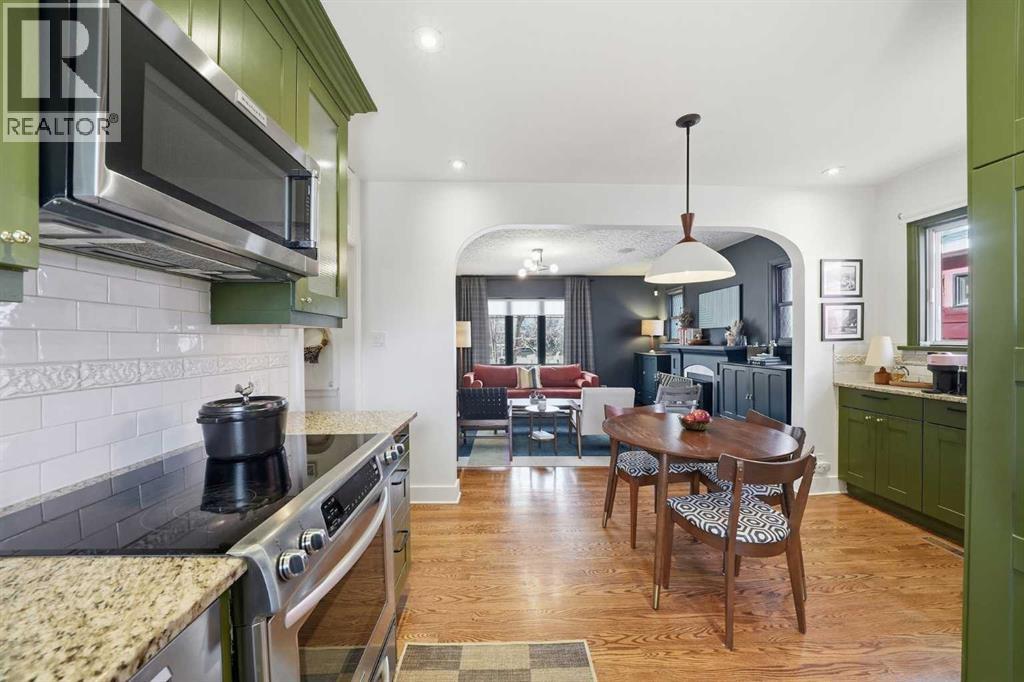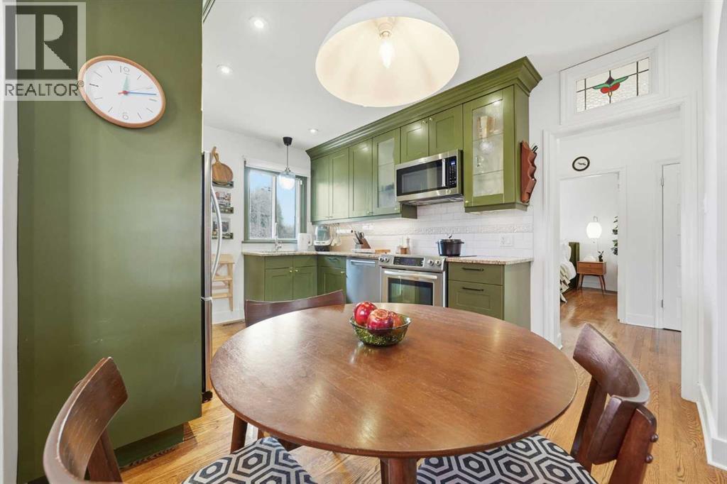 Modern luxury meets old world charm in this beautifully re-done 1949 character home. Situated on a LARGE 40’ x 119’ LOT, this UPPER MOUNT ROYAL BUNGALOW is perfectly located in the heart of inner-city Calgary. OWNER OCCUPIED and lovingly cherished, this home has been tastefully updated over the years. Many of the ORIGINAL CHARACTER FEATURES remain, making this a charming space full of history. The smartly laid out floor plan includes a total of 902 square feet above grade and a FULLY DEVELOPED BASEMENT, including 3 BEDROOMS AND 2 FULL BATHROOMS. Perfect for a professional couple or small family! Upon entering, you'll find original oak hardwood flooring, professionally refinished in a dark wood tone, a light and bright living and dining area upgraded with colour drenched walls and modern lighting. The kitchen has been transformed to modern standards with beautiful shaker cabinetry, granite countertops, and a stainless steel appliance package including a new dishwasher. Proceed through classic arched doorways to the bathroom, updated with a marble countertop and refinished wood vanity, plus dual sinks. Completing the main floor are two generously sized bedrooms. The basement, completed in 2013 with permits, features a large recreation space - full of light from four windows. There is a third bedroom and a full bathroom - a great guest space. Heading outside into the landscaped yard, you'll find a large lawn, perfect for the kids or pets to play. Completing the yard is the sturdy storage shed, single garage, plus a two car parking pad - plenty of off-street parking for visitors! Upgrades include: newer roof approximately 2018, furnace 2021, hot water tank 2021, A/C 2021, dryer 2025, Hunter Douglas blinds 2021, and interior paint. With a park and library right across the street, easy access into the heart of downtown via 14th street, and situated in the William Reid School catchment zone - this is an excellent purchase at only $699,900! Tired of builder basic homes? Own a piece of history in this adorable, craftsman-made, classic bungalow! (id:58070)
