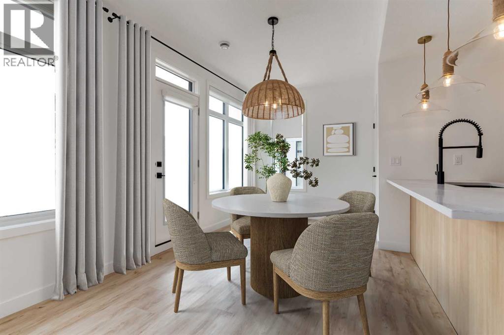 Discover the Birch by Rohit Homes, a pre-construction 3-bedroom, 2.5-bath townhome that perfectly blends modern design, everyday functionality, and an unbeatable location in the vibrant community of Livingston. Offering 1,341 sq ft of thoughtfully designed living space, this home features a double attached garage and an open-concept layout ideal for professionals, families, or investors seeking stylish, low-maintenance living.This home showcases Rohit’s Neoclassical Designer Interior™, characterized by bold contrasts, contemporary finishes, and a clean, modern aesthetic. Expect sleek cabinetry, striking accents, and a sophisticated palette that creates a refined yet inviting atmosphere.Inside, enjoy 9' ceilings and a bright, efficient main floor. The kitchen is beautifully finished with upgraded cabinetry, quartz countertops, a modern tile backsplash, and stainless steel appliances, seamlessly flowing into the spacious dining and living areas perfect for entertaining or relaxing at home.Upstairs, the primary suite offers a walk-in closet and a well-appointed ensuite. Two additional bedrooms, a full bath, and convenient upper-floor laundry with washer and dryer complete the upper level with comfort and practicality in mind.You’ll also benefit from Rohit’s new home warranty (1-2-5-10 years), low-maintenance landscaping, and shared green space designed for stress-free living.Located in Livingston, a connected, amenity-rich community offering over 200 acres of green space, off-leash areas, bike paths, and the impressive 35,000 sq ft Livingston Hub featuring a gymnasium, splash park, skating rink, tennis courts, and more. With quick access to Stoney Trail, Deerfoot Trail, and Calgary International Airport, this is a smart opportunity in Calgary’s thriving north.Reach out today to learn more about available units, floorplans, and possession timelines. (id:58070)