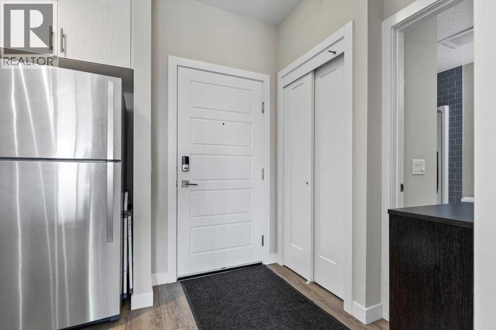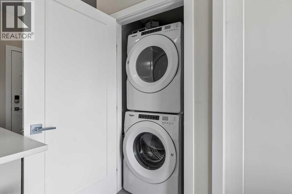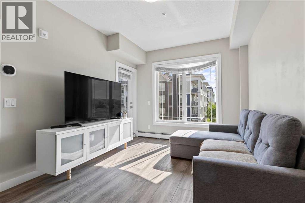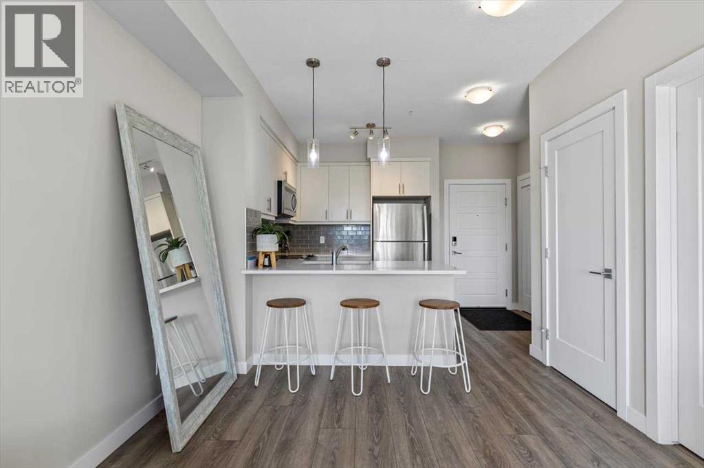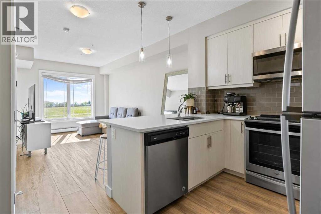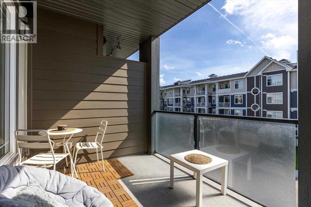 Lake Living in Auburn Bay!Step into this beautifully maintained one-bedroom condo on the 3rd floor — the perfect choice for first-time buyers or savvy investors. Bathed in natural light from its east-facing windows, the open-concept living and kitchen area creates a bright and inviting atmosphere.The kitchen is a true highlight, featuring ceiling-height soft-close white cabinetry, a sleek quartz island, stainless steel appliances, and a full tile backsplash. The spacious bedroom offers a walk-through closet leading directly to a stylish 4-piece ensuite with a walk-in shower and modern vanity.You’ll also enjoy the convenience of in-suite laundry with a stacked washer and dryer. Step outside to your large private patio with a BBQ gas hookup — perfect for morning coffee or summer evenings. Additional features include 9-foot ceilings and a separate storage locker for all your extras.Located in an unbeatable spot, you’re just steps from Co-Op grocery, the South Health Campus, Auburn Bay Lake, schools, parks, and the dog park. Don’t miss this opportunity to enjoy lake community living with every amenity at your doorstep! (id:58070)
