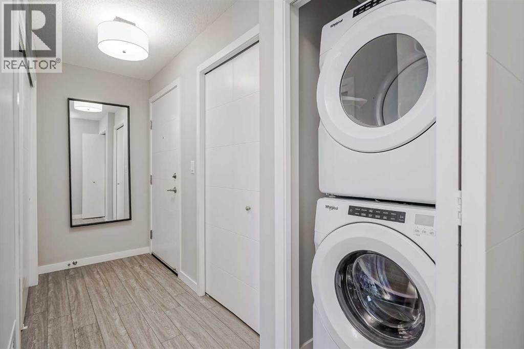 EXPERIENCE ELEVATED LUXURY LIVING AT WESTMAN VILLAGE-Welcome to an exceptional opportunity in the prestigious, resort-style community of WESTMAN VILLAGE-a rare offering designed for those who value sophistication, comfort, and an unparalleled lifestyle on Calgary’s largest and most celebrated lake. FORMER SHOWSUITE at WESTMAN VILLAGE, this exquisite corner-unit 2-bedroom, 2-bath residence with two titled parking stalls redefines luxury condo living. Spanning 1,050 sq ft, this air-conditioned home is bathed in natural light thanks to its premium corner position and generous windows throughout. Elegant 9-foot ceilings, wide-plank luxury vinyl flooring, and an open-concept layout create an inviting sense of space and serenity. The beautifully designed modern kitchen features sleek WHITE cabinetry, quartz countertops, and a refined colour palette that flows seamlessly into the bright and spacious living area. This outdoor patio is a sanctuary and a standout feature - an ideal extension of your living space, perfect for morning coffee, al fresco dining, or sun-filled relaxation. The oversized primary suite is a true retreat, offering ample space for a sitting area or workspace, custom closets with built-in organizers, and a private 3-pc ensuite with stylish, modern finishes. The spacious second bedroom includes a walk-in closet and large window, perfect for guests, family, or versatile use with convenient access to the full, 4-pc bathroom. Additional conveniences include in-suite laundry and a large pantry/storage room, ensuring both comfort and practicality. Perfectly crafted by Jayman BUILT, this residence showcases design integrity, with triple-pane windows, and forced-air heating and cooling.Surrounded by resort-quality landscaping-fountains, pathways, bridges, raised garden planters, and peaceful seating areas-WESTMAN VILLAGE offers a LIFESTYLE unmatched in Calgary. At its heart is the iconic 40,000 sq ft amenity centre, providing something for every interest: a lu xurious swimming pool with two-storey water slide, HOT TUB and STEAM ROOMS, fitness facility, golf simulator, art and woodworking studios, WINE VAULT, professional kitchen, library, movie theatre, GAMES ROOM that includes BILLIARDS and DARTS, an ATRIUM, a ROOFTOP LOUNGE and countless social spaces. Having CONCIERGE and a 24/7 SECURITY TEAM ensures peace of mind and white-glove service.Completing this remarkable lifestyle, you are only steps away from an outstanding selection of on-site dining, retail, and boutique services, including Chairman’s Steakhouse, Alvin’s Jazz Club, Diner Deluxe, Analog Coffee, Chopped Leaf, 5 Vines, Pie Junkie, MASH Eats, Marble Slab, Village Medical, Sphere Optometry, Mahogany Village Dental, Mode Fitness Studio, a medical spa, and more. This is not just a condo. This is luxury living without compromise. Welcome home to Calligraphy at Westman Village.Immediate possession available-your Westman Village lifestyle starts now. (id:58070)