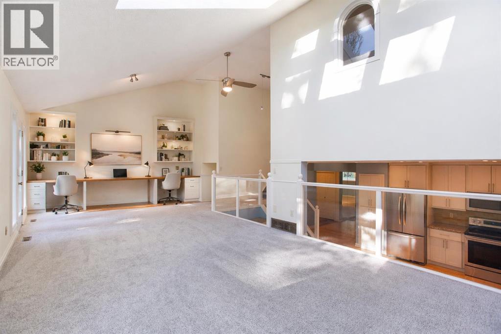Beautifully updated estate home located in the sought after community of Signal Hill, positioned on a quiet street just minutes from parks, pathways, and a short drive to downtown Calgary. This spacious property offers five bedrooms and three bathrooms with extensive renovations that blend comfort, style, and practicality.The main level welcomes you with a bright front living room and formal dining space finished with hardwood flooring and large windows that allow natural light to pour in. The kitchen has been tastefully upgraded with granite countertops, stainless steel appliances, ample cabinetry, and a brand new dishwasher. Just off the kitchen is a cozy family room highlighted by a wood burning fireplace and three skylights that brighten the space throughout the day. From here you can step directly out to the private west facing backyard that is ideal for evening sun and outdoor gatherings.Also on the main floor is a flexible room that can serve as a home office, guest room, or additional bedroom, along with an updated two piece bathroom and a generously sized laundry room.Upstairs offers four well proportioned bedrooms. The main bathroom has been renovated with dual sinks and granite counters, while the primary suite provides a comfortable retreat with a bay window, two walk in closets, and an upgraded ensuite that features heated floors, a jetted tub, and a separate shower.The lower level is finished and provides additional living space that can easily function as a recreation area, games room, fitness space, or hobby room. There is also plenty of storage along with a dedicated wine storage area.Numerous mechanical and structural upgrades have already been completed including central air conditioning, a water softening and filtration system installed in 2017, dual furnaces installed in 2018, new windows and exterior doors installed in 2020, a radon mitigation system installed in 2024, and a full underground irrigation system.Homes in this location rarely come available, offering a combination of space, extensive updates, and a prime setting within one of Calgary’s most established west side communities. (id:58070)