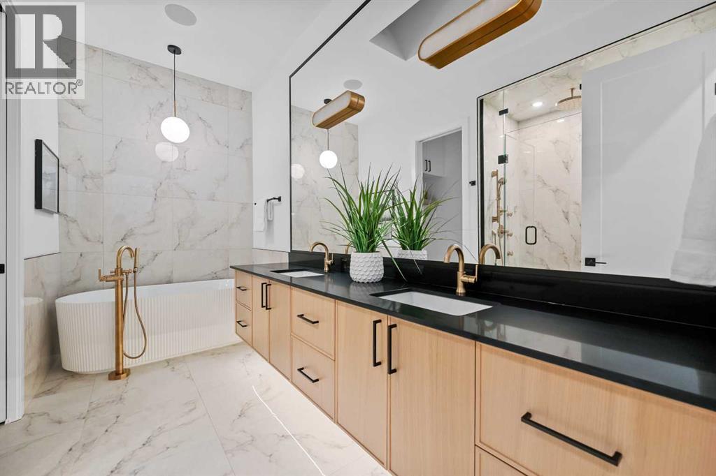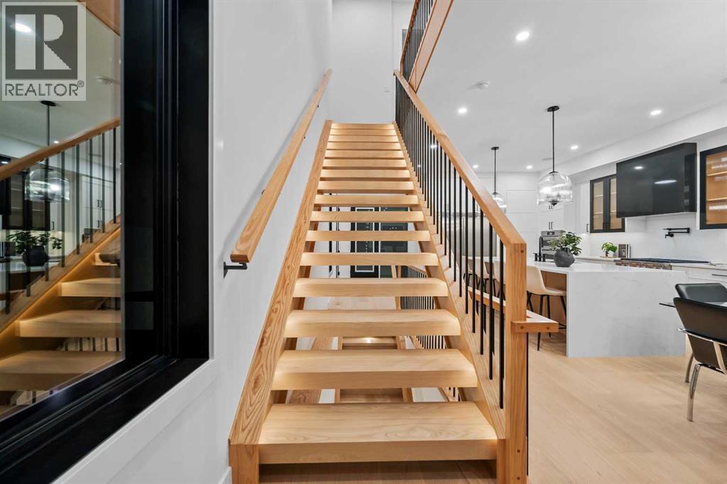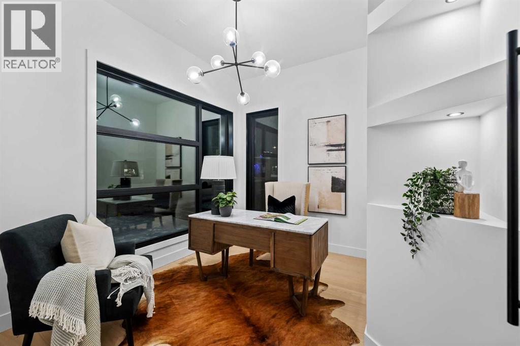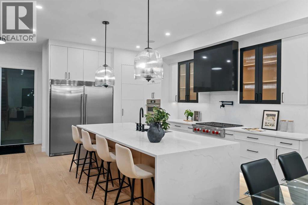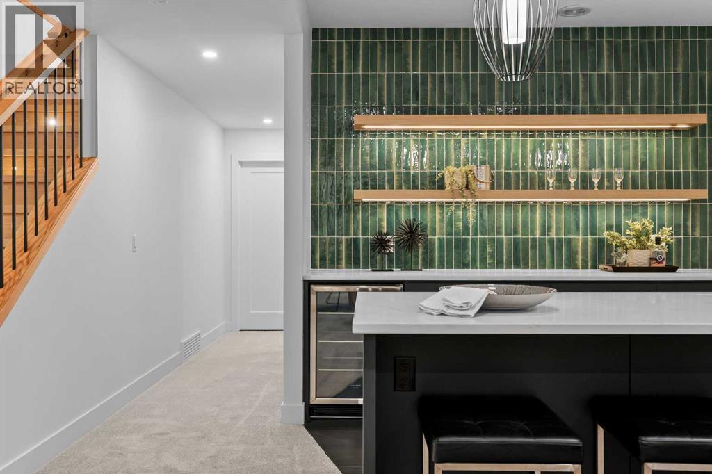Welcome to a home where CRAFTSMANSHIP, COMFORT, and LUXURY come together in perfect harmony. Thoughtfully built and intentionally designed, this residence stands apart from the typical new infill — offering a level of QUALITY, WARMTH, and SOPHISTICATION rarely seen in today’s market.From the moment you step inside, you’ll feel the DIFFERENCE. The main floor is filled with NATURAL LIGHT, thanks to EXPANSIVE WINDOWS and a CUSTOM OVERSIZED PATIO DOOR that creates true INDOOR/OUTDOOR LIVING. Step directly onto your MASSIVE PATIO — extending across the garage roof — where you’ll experience BREATHTAKING VIEWS OF DOWNTOWN and SHAGANAPPI GOLF COURSE. It is a one-of-a-kind outdoor space designed for ENTERTAINING, RELAXING, and taking in the cityscape.The LIVING ROOM is a SHOWPIECE, anchored by a STRIKING BRICK FIREPLACE, CUSTOM MILLWORK, and those same LARGE, OVERSIZED WINDOWS that bring the outdoors into every moment. This space blends ARCHITECTURE and WARMTH seamlessly, offering the perfect setting for gatherings or quiet evenings at home.The gourmet kitchen continues the theme of elevated living with a WOLF GAS RANGE, CUSTOM HOOD-FAN CANOPY, OVERSIZED REFRIGERATOR, WATERFALL ISLAND, DOUBLE OVENS, POT FILLER, and HIGH-END FINISHES selected for both BEAUTY and PERFORMANCE.A PRIVATE HOME OFFICE on the main floor delivers a QUIET, PURPOSEFUL workspace — ideal for MODERN WORK-FROM-HOME living.Upstairs, the primary suite offers a serene RETREAT with HEATED ENSUITE FLOORS, LUXURY TILE WORK, and a spacious WALK-IN CLOSET. With 4 BEDROOMS, 3.5 BATHROOMS, and 9-FOOT DOORS, the home provides SPACE, COMFORT, and FUNCTIONALITY on every level.The WALKOUT LOWER LEVEL opens to a COVERED PATIO, extending your living space year-round. Everywhere you turn, you’ll find OVERSIZED WINDOWS that frame natural light and views throughout the home — a signature element of this build.Additional highlights include AIR CONDITIONING, DOUBLE PATIOS, a WALKOUT BASEMENT, and an OVERSIZED HEA TED GARAGE WITH EPOXY FLOORING.Located in SHAGANAPPI, you’re just 5 MINUTES FROM DOWNTOWN, steps from the GOLF COURSE (literally a stone’s throw from the GREEN), and enjoy FAST ACCESS TO THE MOUNTAINS. It’s INNER-CITY LIVING with unbeatable convenience.This is more than a new home — it is a statement in DESIGN, QUALITY, CRAFTSMANSHIP, and THOUGHTFUL LIVING. To appreciate its TRUE VALUE, it must be experienced in person. (id:58070)