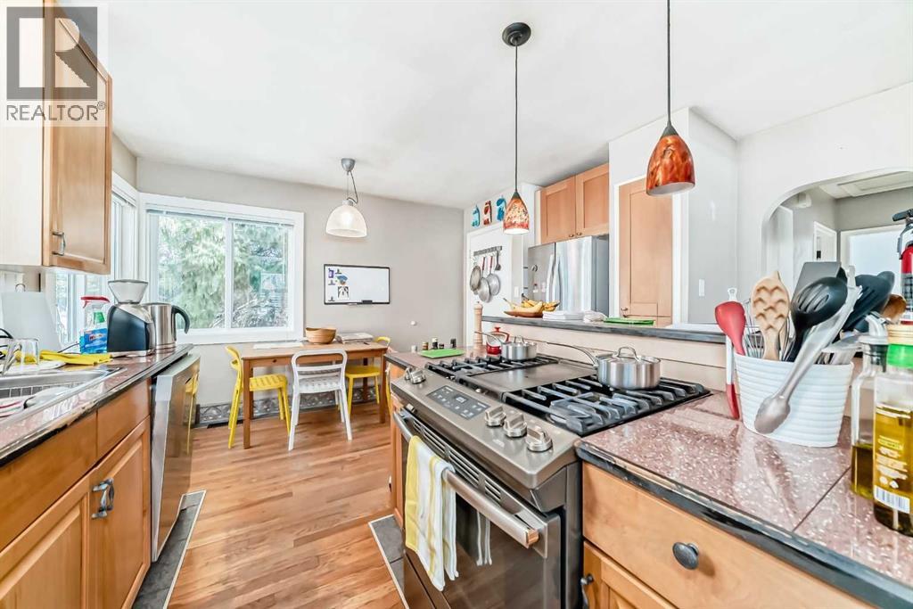 Investors ..Builders.. POSSIBILITIES ARE ENDLESS for this dream walk out lot on one of the nicest tree lined street in Killarney and city views if you had a 2 storey or higher property. Very livable 2 +1 bedroom bungalow, with 2 full 4 pc bathrooms. Main floor has good sized living room open to kitchen with eat up bar, newer appliances 2018, dining space overlooking the private east fenced yard. Back door provides access to good sized deck and stairs to garage. Lower level was refinished in 2010 with large rec room, bedroom, bathroom , laundry area and mechanical room. Furnace, hot water tank 2010. Shingles eaves, 2008 Current home had detached 24 x 24 garage with 2 single doors, built in 2010, Interior wall is floating so can easily be removed and a double door could go on. Home will be vacant by the end of May. (id:58070)