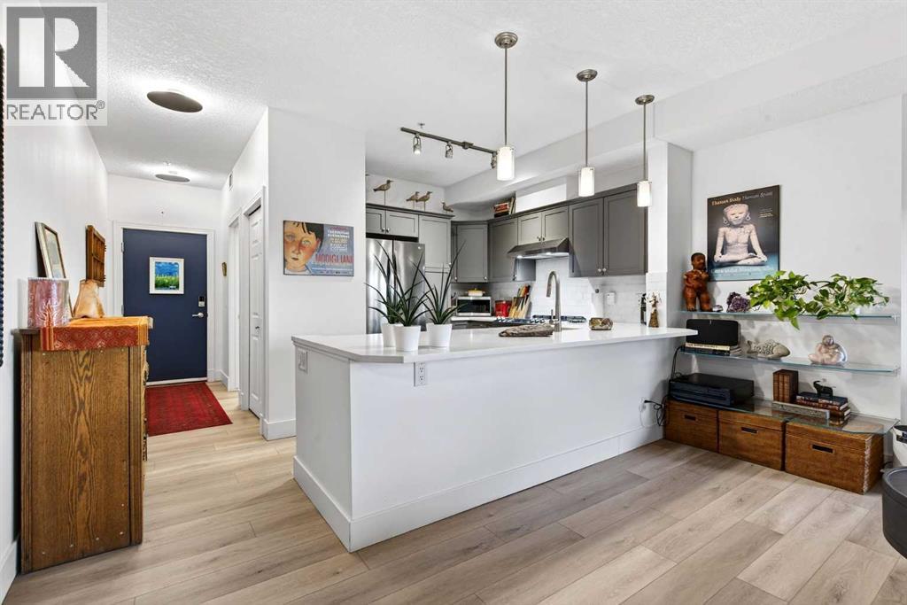 You’re not just buying a home—you’re purchasing a lifestyle. Welcome to Inglewood, one of Calgary’s most vibrant and walkable inner-city neighbourhoods. Just steps from parks, river pathways, local shops, music venues, breweries, and restaurants, this location offers the perfect balance of charm and convenience.Located in the sought-after Pearce Gardens, this spacious third-floor unit offers 974 square feet of bright, open-concept living with southwest exposure and sunset, mountain views from your private balcony. Inside, you'll find a large primary bedroom and a second enclosed room (currently used as a den) that meets legal egress requirements due to the building’s full sprinkler system, making it a safe and functional second bedroom.Upgrades throughout the unit include luxury vinyl plank flooring, porcelain tile in the main bath, a rebuilt fireplace wall with custom stonework and floating glass shelving, and a refreshed kitchen with quartz countertops, painted cabinets, and newer appliances including a fridge, stove, range hood, and dishwasher. Additional highlights include ceiling fans in both bedrooms, a custom dresser and shelving in the primary closet, built-in entry and laundry storage, and deck upgrades with flooring, privacy lattice, a retractable screen door and a 12-foot wide roll-down sun blind. The unit also features in-suite laundry, 9-foot ceilings, a gas fireplace, and a titled underground parking stall & storage near the elevator. Residents enjoy access to a fitness centre, a large party room with kitchen and patio, and ample visitor parking. Your condo fee includes gas, heat, sewer, water & more. Pearce Gardens is pet-friendly with board approval and is professionally managed.This home offers lifestyle, location, and lasting comfort in one of Calgary’s most sought-after communities. Book your showing today. (id:58070)