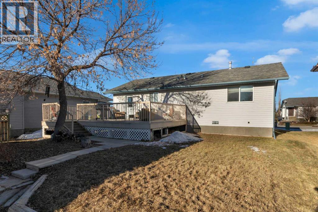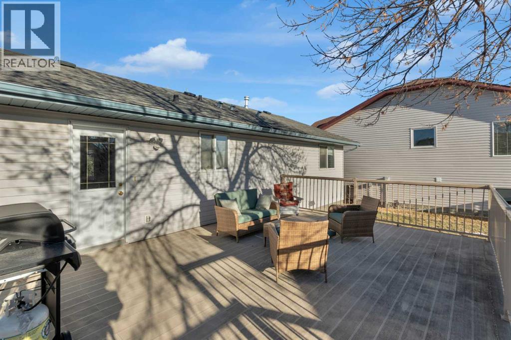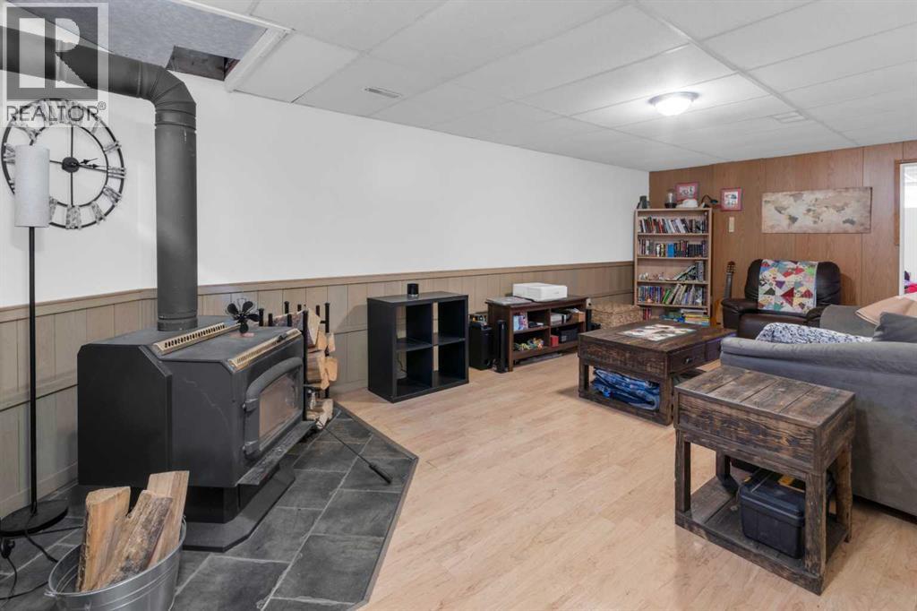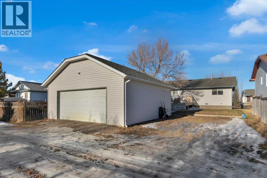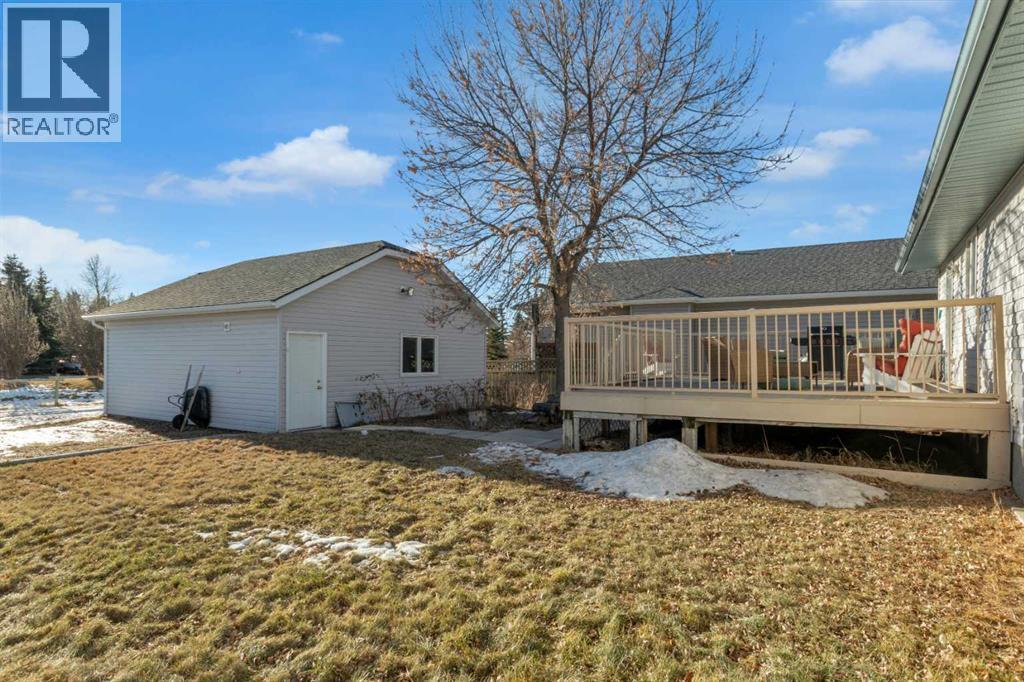 HOME SWEET HOME! This is your EXCITING and AFFORDABLE opportunity to own an updated, move-in ready bungalow in the charming town of Carstairs, just a short drive to Airdrie and Calgary! Escape from the hustle and bustle of the big city in this fantastic home offering 4 bedrooms, 2.5 bathrooms, 2,061 SQFT of well maintained living space throughout and beautiful curb appeal with an inviting front porch. Heading inside you will love the gleaming laminate and cork flooring leading you to the spacious living room flooded in natural sunlight, a large foyer, updated kitchen with newer appliances, quartz countertops, trendy lights and fixtures and ample cabinet space. You will also find 3 terrific sized bedrooms including the magnificent primary bedroom with a sleek 4 piece ensuite bathroom and an additional 4 piece bathroom. Downstairs, you will find a massive recreation room with a cozy wood burning wood stove, a 4th bedroom, a den that is perfect for a home office with a 2 piece ensuite bathroom, large storage room and a laundry/ utility room. Outside, you will find a massive south facing partially fenced yard with a huge maintenance free deck perfect for entertaining, a double detached, oversized garage that is fully insulated, new opener, boarded and heated and lovely landscaping with mature trees that gives you the ultimate in privacy with no neighbors behind. There is even room to park you RV or camper! Amazing, quiet location close to popular local shops, cafes, schools, parks, soccer fields, pond walking paths and a quick drive to the amenities of Airdrie, Balzac and Calgary. Don't miss out, book a private viewing of this GEM today! (id:58070)