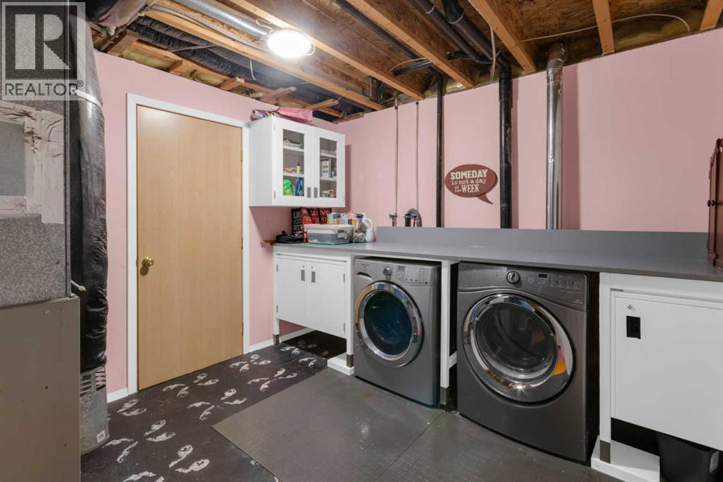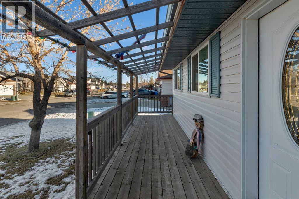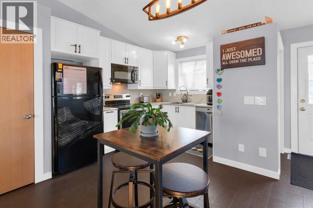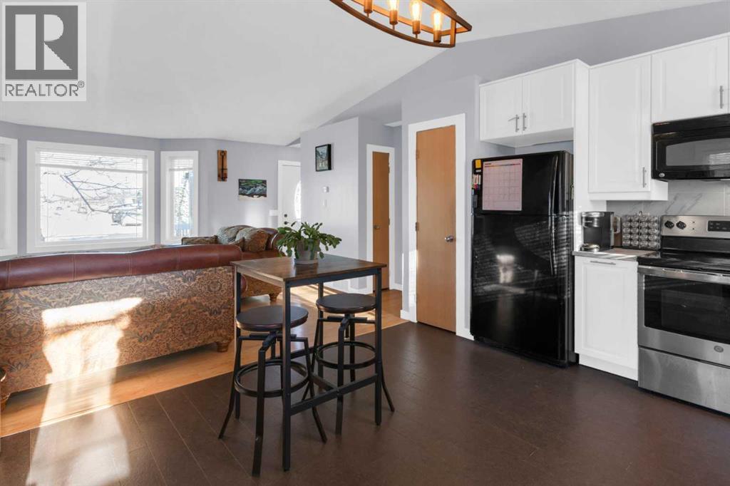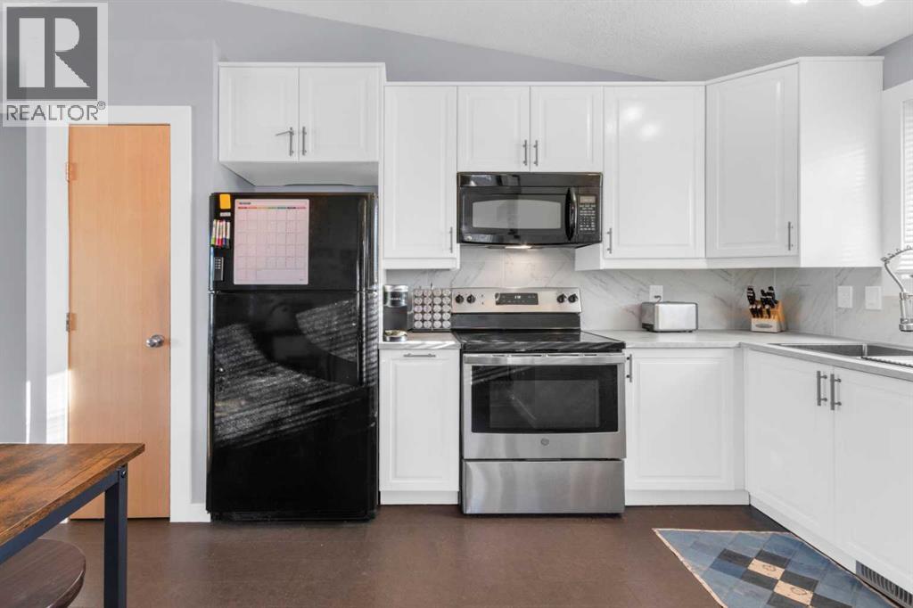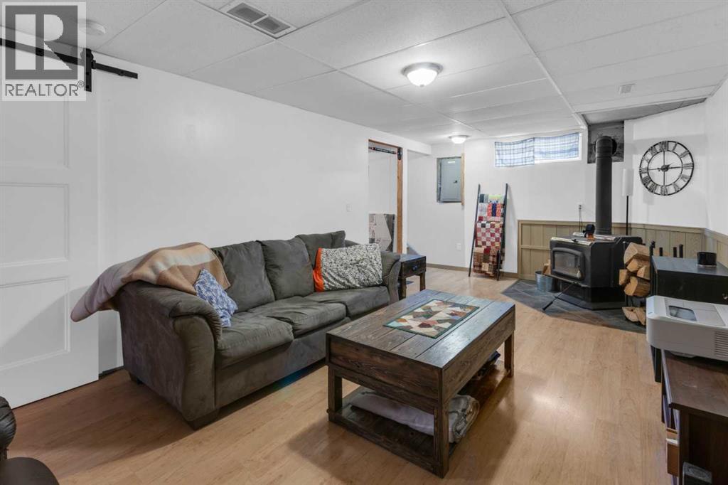 HOME SWEET HOME! This is your EXCITING and AFFORDABLE opportunity to own an updated, move-in ready bungalow in the charming town of Carstairs, just a short drive to Airdrie and Calgary! Escape from the hustle and bustle of the big city in this fantastic home offering 4 bedrooms, 2.5 bathrooms, 2,061 SQFT of well maintained living space throughout and beautiful curb appeal with an inviting front porch. Heading inside you will love the gleaming laminate and cork flooring leading you to the spacious living room flooded in natural sunlight, a large foyer, updated kitchen with newer appliances, quartz countertops, trendy lights and fixtures and ample cabinet space. You will also find 3 terrific sized bedrooms including the magnificent primary bedroom with a sleek 4 piece ensuite bathroom and an additional 4 piece bathroom. Downstairs, you will find a massive recreation room with a cozy wood burning wood stove, a 4th bedroom, a den that is perfect for a home office with a 2 piece ensuite bathroom, large storage room and a laundry/ utility room. Outside, you will find a massive south facing partially fenced yard with a huge maintenance free deck perfect for entertaining, a double detached, oversized garage that is fully insulated, new opener, boarded and heated and lovely landscaping with mature trees that gives you the ultimate in privacy with no neighbors behind. There is even room to park you RV or camper! Amazing, quiet location close to popular local shops, cafes, schools, parks, soccer fields, pond walking paths and a quick drive to the amenities of Airdrie, Balzac and Calgary. Don't miss out, book a private viewing of this GEM today! (id:58070)
