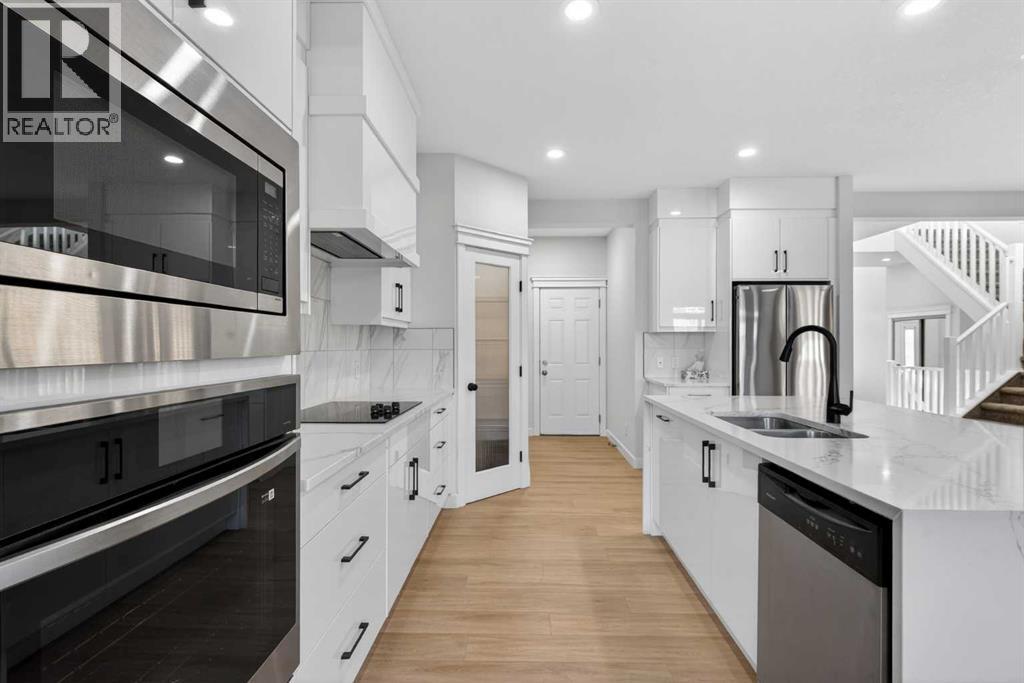 Welcome to this exquisite residence offering over 3,200 sq. ft. of beautifully developed living space, where modern luxury meets timeless sophistication. From the moment you step inside, you’ll be captivated by the home's meticulous upgrades—featuring fresh designer paint, elegant new flooring, and fully renovated bathrooms. The open-concept layout is enhanced by soaring ceilings, sleek LED lighting, and an abundance of natural light, creating a warm and inviting ambiance throughout. At the heart of the main level is a chef-inspired gourmet kitchen, thoughtfully redesigned with top-tier appliances, contemporary countertops, and generous cabinetry—perfect for everyday living and entertaining alike. Just off the kitchen, a stylish dining area provides the ideal backdrop for family dinners or gatherings, while the grand living room centers around a cozy gas fireplace, making it the perfect place to relax on cooler evenings. A versatile flex room adds functionality to suit your lifestyle needs. Upstairs, you'll find an expansive bonus room featuring vaulted ceilings, three skylights, and a private balcony—an impressive and sunlit retreat. The home boasts three spacious bedrooms, each designed with comfort in mind, and two fully upgraded bathrooms. The convenient laundry room includes a new linen closet, adding both style and practicality. The luxurious primary suite is a true sanctuary, complete with a large walk-in closet and a stunning 5-piece ensuite featuring a rejuvenating Jacuzzi tub—ideal for unwinding after a long day. The fully developed basement offers even more living space, featuring a soundproofed ceiling and a stylish 2-bedroom Legal suite with its own private entrance. This self-contained suite includes a modern kitchen with brand-new appliances, a full bathroom, and separate access—perfect for extended family, guests, or rental income. Located in a vibrant and family-friendly neighborhood, this home is surrounded by outstanding amenities including a Fre shCo shopping center, nearby parks, a large field with a playground and baseball diamond, two elementary schools, and the soon-to-open Evanston Middle School. Enjoy easy transit access, flat walking paths ideal for all ages, and close proximity to Beacon Hill shopping center with Costco and Walmart. Plus, it’s just a 10-minute drive to Calgary International Airport. Additional recent upgrades such as new LED lighting, brand-new carpeting, and a newly installed EV charging outlet in the garage further elevate this already stunning property. This home truly has it all—space, style, location, and versatility. Don’t miss your opportunity to make it yours. (id:58070)