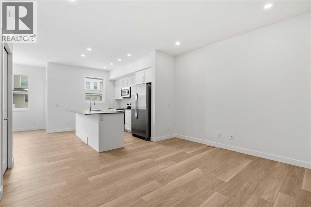 NEW BUILD 3-STOREY TOWNHOME | LOW CONDO FEES | 3 BED / 2.5 BATH / 1,320 SQ FT | SINGLE ATTACHED GARAGE + DRIVEWAY | Welcome to the Bellhaven by Minto Communities, an award-winning Canadian builder with over 70 years of experience! Located in Belvedere Rise, this thoughtfully designed three-storey townhome offers a functional layout, modern finishes, and exceptional value in one of southeast Calgary’s most convenient communities. The main living level features a beautifully appointed kitchen complete with a central island, stainless steel appliances, ample cabinetry, and a pantry for added storage. The kitchen seamlessly connects to the living room at the back of the home, creating a comfortable space for relaxing or entertaining, while a tucked-away 2-piece bathroom adds everyday convenience. At the front of the home, you’ll find a bright dining area with direct access to your private balcony. Upstairs, the spacious primary bedroom includes a walk-in closet and a 4-piece ensuite. This level also features a second well-sized bedroom, an additional 4-piece bathroom, and upper-floor laundry for added practicality. The ground floor welcomes you with an open foyer and a large utility room, ideal for additional storage. You’ll also find direct access to the single attached garage and driveway, keeping daily routines simple and efficient. Belvedere Rise fosters a true sense of community with its pedestrian pathways, nearby greenspace, and intimate scale, creating an environment where neighbours can easily connect. Located just steps from East Hills Shopping Centre, residents enjoy unmatched walkability to Costco, Walmart, banks, restaurants, and everyday essentials all just across the street. With quick access to major roadways and public transit, commuting downtown or around the city is effortless. Combining modern finishes, a functional three-storey layout, low condo fees, and an unbeatable location, this is a fantastic opportunity to secure a brand-new townhome in one o f southeast Calgary’s most convenient communities. Contact Minto’s sales staff and book your visit today! (id:58070)