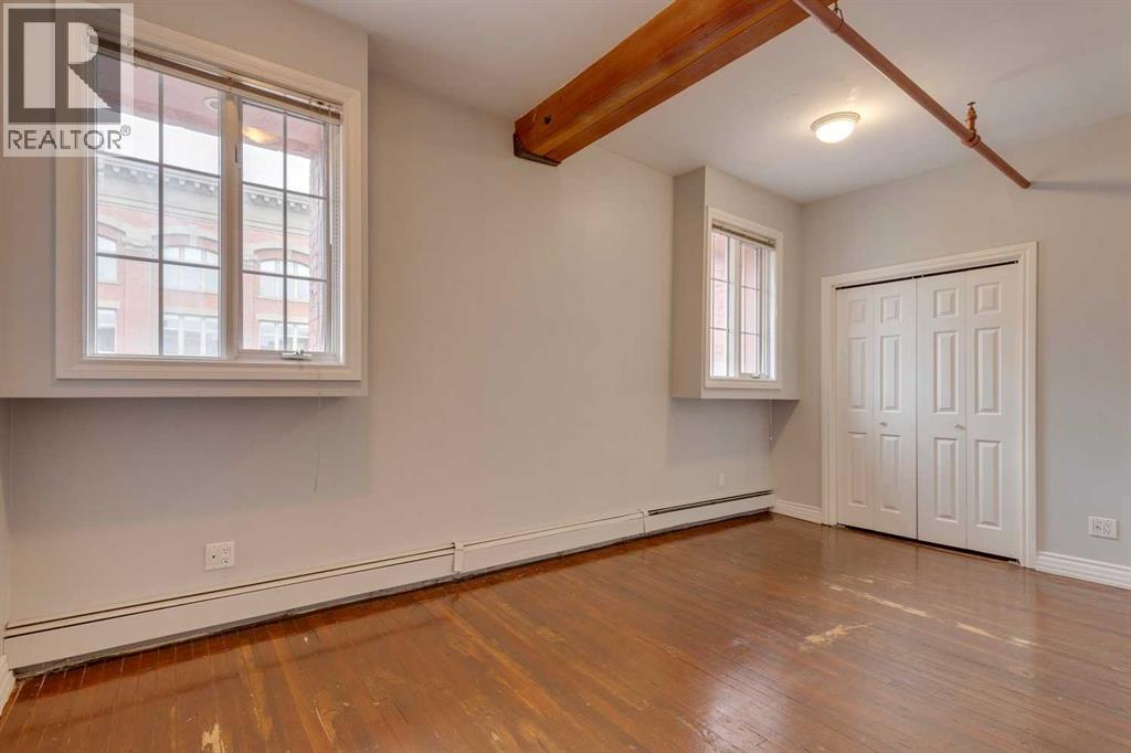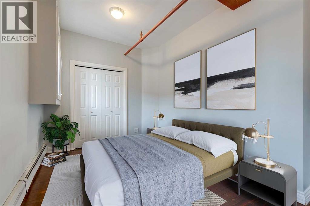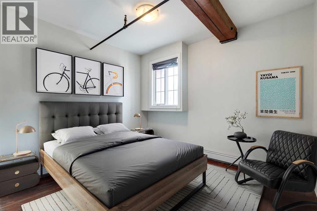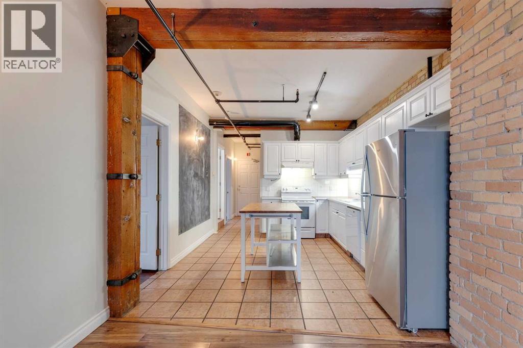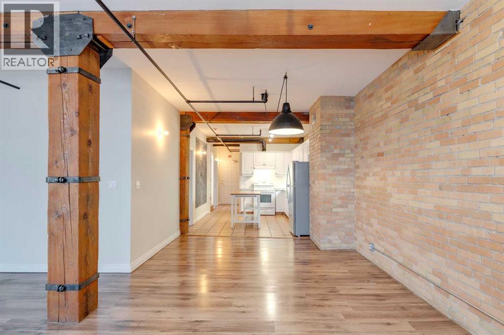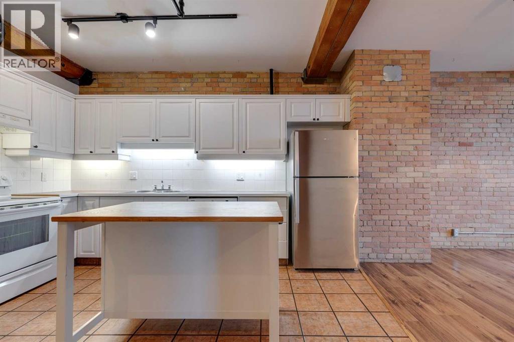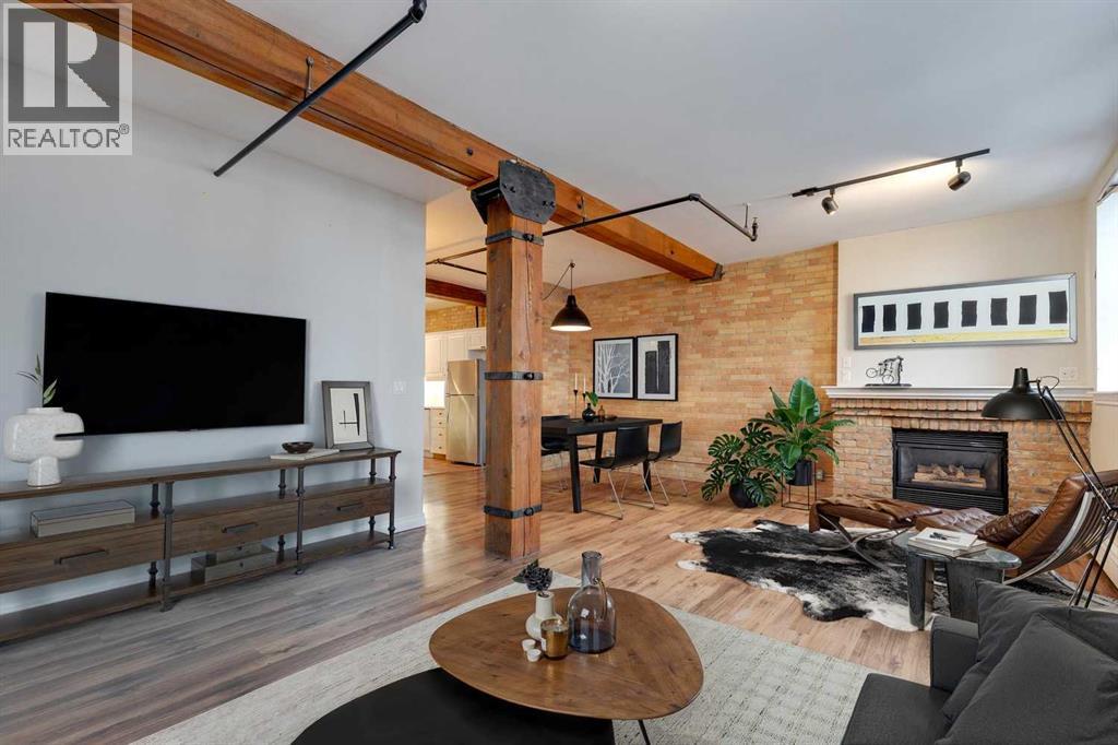 Nestled in the heart of Calgary's Beltline, this extraordinary red brick loft offers a rare opportunity to own a piece of the city’s rich history. Constructed in 1912 for the Imperial Tobacco Company by the renowned A. Dale and Associates, the architectural firm behind the iconic Calgary Tower, this building underwent a stunning conversion to lofts in 1995. For the first time ever, these timeless residences are available for sale, blending historical charm with modern sophistication. Offering over 1,100 SqFt, this expansive loft exudes character with its original brick walls, exposed wood beams, and soaring ceilings. A wall of windows floods the space with natural light, creating a warm and inviting ambiance reminiscent of a classic New York City loft. The open-concept layout is thoughtfully designed, offering endless possibilities for both living and working. A private den provides the perfect space for a home or business office, while two generously sized bedrooms are complemented by a five-piece Jack and Jill bathroom plus there is an additional three-piece bathroom. The galley-style kitchen features freshly sprayed maple cabinetry with under mount lighting, moveable island, and a seamless flow into the dining and living areas. Whether you envision this space as your personal sanctuary or a dynamic live/work environment, the possibilities are as limitless as your imagination. Beyond the loft itself, the building offers an array of amenities, including a gym, a games room, and a rooftop patio with breathtaking views of the Downtown Skyline. A titled underground parking spot is also included, ensuring convenience in this vibrant urban setting. This is more than a home; it’s a lifestyle. A rare blend of history, elegance, and modernity, this loft is a once-in-a-lifetime opportunity to own a truly unique piece of Calgary’s architectural heritage. (id:58070)