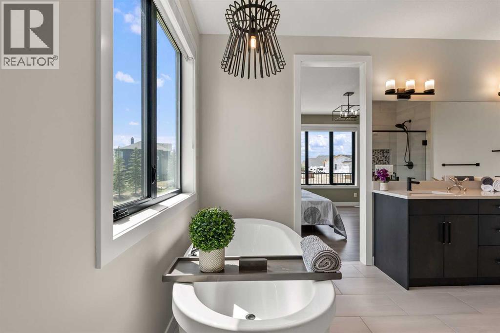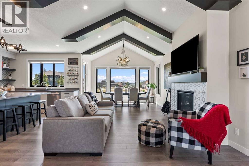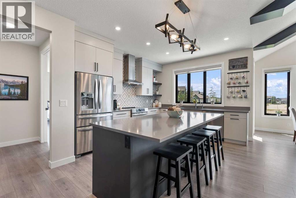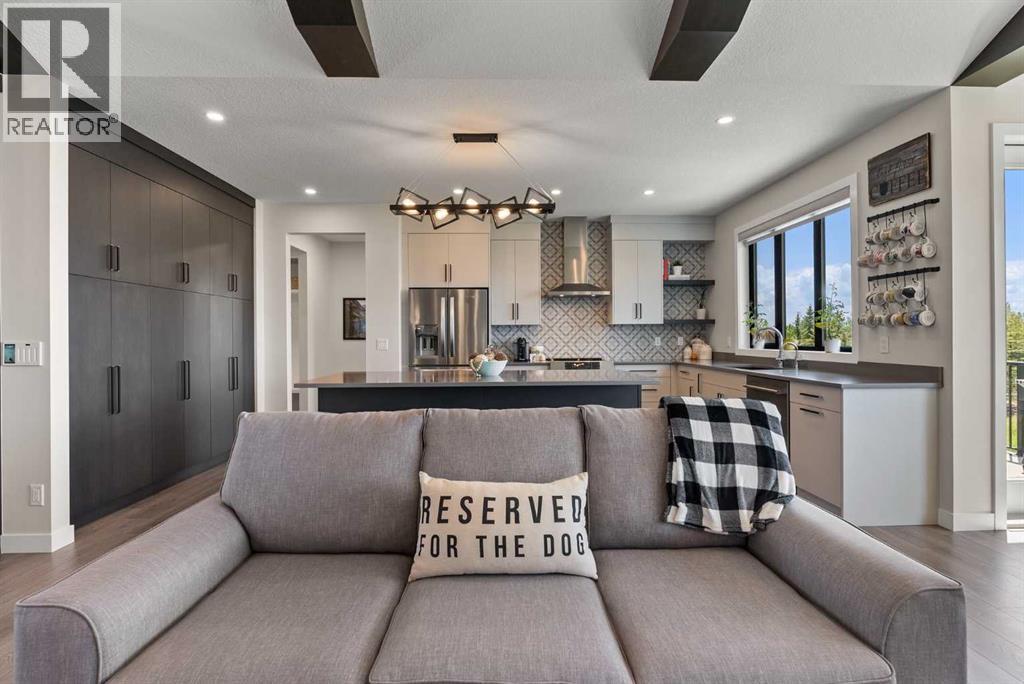 Discover this beautiful home just outside of Cochrane in Monterra. Offering nearly 3,400 sq ft of thoughtfully developed living space on a generous 0.45-acre lot, it delivers the top-tier essentials buyers crave. The main floor impresses with an open, airy design featuring vaulted ceilings that create a bright, inviting atmosphere. The spacious kitchen boasts a large island and soft-close cabinets, flowing seamlessly into the dining and living areas—ideal for hosting family and friends.The primary suite is a private sanctuary, with an elegant ensuite that includes a soaker tub, shower, and dual sinks, complemented by a large walk-in closet with built-in organizers. Convenience is key with a well-appointed laundry room located along the corridor to the heated, insulated triple garage. Step outside onto expansive decks—12x28 feet on both levels—that are perfect for outdoor entertaining. The lower deck features a hot tub, offering a relaxing retreat with stunning mountain views.Throughout the home, you’ll find custom built-ins, including a dedicated office with custom cabinetry and a built-in pantry for ample storage. The finished basement provides additional living space with two bedrooms, a spacious rec room that opens to a large patio, and a versatile three-season room equipped with retractable screens to enjoy the outdoors in comfort.This property combines luxurious finishes, practical design, and breathtaking natural scenery—making it an exceptional place to live and entertain. (id:58070)