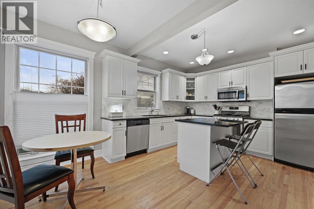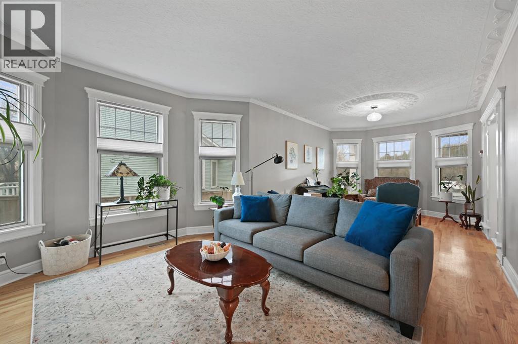 Timeless charm meets unrivaled location in this beautiful turn-of-the-century Parkdale home, perfectly positioned on a coveted 6,781 sq. ft. riverfront lot facing the Bow River. Set on a picturesque, tree-lined street, this character residence blends classic architecture with thoughtful upgrades, creating a warm and welcoming space ideal for families. A charming front porch sets the tone before stepping into the stunning foyer, where original detailing and rich hardwood flooring carry you through the main level. Through elegant French doors, the living room offers a cozy gathering space complete with a gas fireplace. The dedicated dining room is perfect for hosting, while the beautifully updated kitchen features stainless steel appliances and connects seamlessly to a practical mudroom. Upstairs, the home truly shines with four generous bedrooms. The spacious primary retreat has a 4-piece ensuite bathroom and one of the secondary bedrooms captures incredible Bow River views along with access to a private upper-level porch. The upper level also has a secondary 4-piece bathroom, ideal for large families. The lower level provides a comfortable, flexible space—perfect for movie nights, recreation, or a cozy hideaway on winter evenings. Outdoors, the property boasts a spacious front and side yard, offering ample room for kids to play or for gardening enthusiasts. An oversized double detached garage adds convenience and storage options. This exceptional location means you can enjoy the Bow River Pathway network directly across the street, with endless options for biking, running, and scenic river walks. Downtown Calgary is just 10 minutes away, and Kensington Village is a quick 5-minute drive, placing some of the city’s best dining and cafés at your fingertips. Families will appreciate being a short walk to Westmount Charter Elementary School, making everyday life easier. (id:58070)