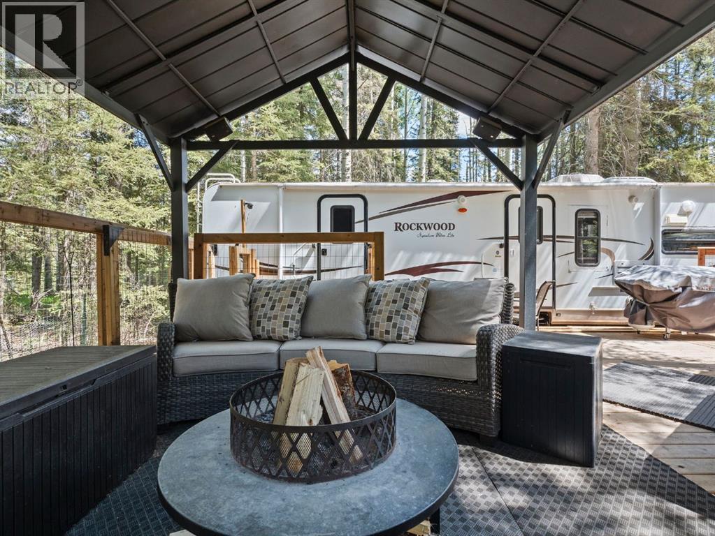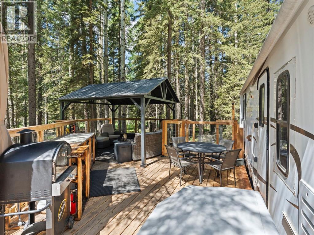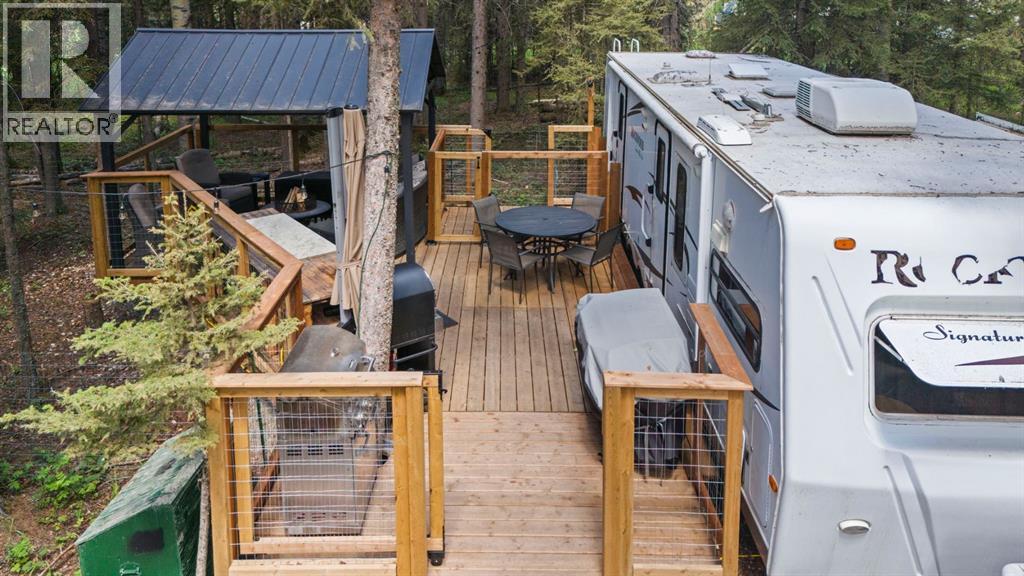Tucked away just minutes from Sundre in a private gated community, this stunning 1-acre treed parcel offers the ultimate blend of seclusion, security, and serenity. Towering evergreens and mature aspens provide a natural canopy, giving this property a true forested feel — perfect for anyone seeking a peaceful escape or weekend retreat.The lot is serviced with 200amp power, and thoughtfully improved with a gravel driveway, outdoor entertaining deck, and custom gazebo. A beautifully built-out RV setup (RV negotiable) features an expansive wooden deck with designated seating and dining areas, BBQ space, and even a built-in firepit lounge — all nestled under the trees. There’s also a shed/watercloset for extra, and ample parking for guests.Backing onto green space and steps from a community pond, this lot is located in a well-maintained, quiet cul-de-sac — offering a secure, community-driven environment that still feels like your own slice of wilderness. (id:58070)