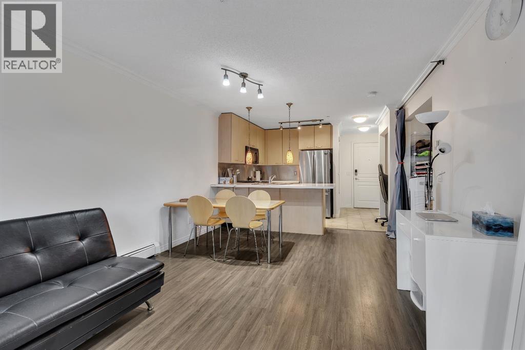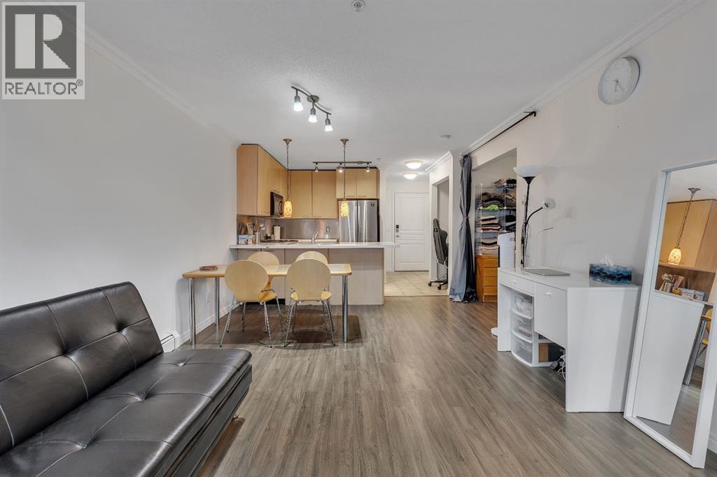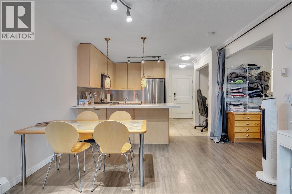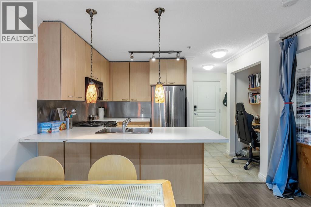Discover modern comfort and urban convenience at Trafalgar House, a highly sought-after residence ideally located just steps from everyday amenities and a short stroll to the vibrant campus of Mount Royal University. Perfectly positioned between Garrison Green and Marda Loop, this prime inner-city location offers effortless access to boutique shopping, popular restaurants, and an abundance of parks and bike trails.This spacious 1-bedroom, 4-piece bath condo blends style with functionality, showcasing an open-concept layout, a cozy corner gas fireplace, and tasteful upgrades including new tile, plank flooring, and an updated fridge. South-facing exposures invite natural light into the main living space, opening onto serene views of the beautifully landscaped central courtyard—creating a tranquil retreat right in the heart of the city. Everyday living is elevated with underground parking, a dedicated storage unit, and in-suite laundry. The building itself is thoughtfully designed with impressive amenities, including two elevators, a fully equipped fitness centre, party room, tire and bike storage, plus ample visitor parking.Whether you’re a student, professional, or investor, this home offers the perfect balance of modern convenience and everyday beauty—a place to truly put down roots just moments from shops, cafés, and the lively atmosphere of one of Calgary’s most desirable communities.Come experience what makes Trafalgar House in Lincoln Park such an exceptional place to call home. Book your viewing today! (id:58070)