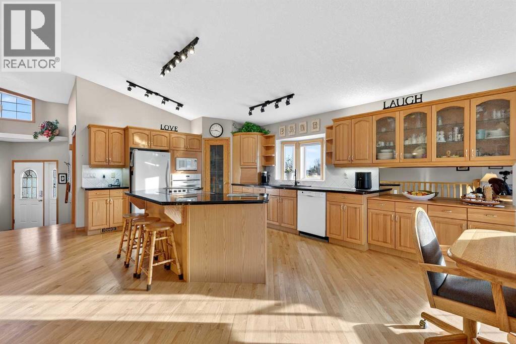 2 GARAGES - FULLY DEVELOPED WALK OUT - RV PARKING! This BUNGALOW is a contractor built personal residence that is thoughtfully designed, solidly constructed, and meticulously maintained. It is perfectly situated on large CORNER LOT in a desirable, mature neighborhood offering a total of 2983.7 sq ft of above & below grade developed living space, 2 GARAGES, RV PARKING, VAULTED CEILINGS, CENTRAL A/C, multi-zoned IN-FLOOR BOILER HEAT SYSTEM, loads of NATURAL LIGHT, abundant STORAGE, CENTRAL VACUUM, and WALK OUT basement! From the moment you step into the heated tile entrance, you are invited into a bright, open-concept floor plan characterized by soaring vaulted ceilings and an abundance of natural light. You seamlessly transition onto hardwood floors and into the gorgeous open living area that serves as the heart of the home. Here in the kitchen, you’ll find a massive granite top island with built-in cooktop, ample cabinetry, corner pantry, and full suite of appliances which then flows into the dining area designed for large family gatherings. Step out garden doors onto the tiled balcony, the perfect perch for morning coffee, evening cocktail and a GAS BBQ for summer grilling. The carpeted living room boasts floor-to-ceiling windows equipped with REMOTE-CONTROLLED BLIND SYSTEM and a GAS FIREPLACE creating the perfect spot for a cozy evening. Set to the side, the main primary retreat is equally as impressive, offering space for king-sized furniture, huge WALK-IN CLOSET, and well-appointed FOUR-PIECE ENSUITE with relaxing JETTED TUB. Completing the main level is the bright, dedicated Office at front, convenient two-piece guest bath, and main floor laundry room with 1 piece bath. There is direct access from laundry room to the double attached garage, which stays toasty year-round thanks to in-floor heating system. The lower level is a FULLY DEVELOPED WALK-OUT that feels like a natural extension of the bright upper floor. It features a massive rec/family room with custo m wood entertainment center perfect for movie nights and additional space for game table or home gym. Two additional large bedrooms and a three-piece bathroom provide plenty of space for family or guests, while another versatile room offers the potential for a fifth bedroom, hobby or office space. Storage is never an issue here, with a dedicated room featuring built-in shelving and a chest freezer, with yet another storage room tucked beneath the stairs. The exterior of the property is just as impressive as you step out through garden doors onto the covered patio out to a landscaped yard, complete with mature trees and flower beds, and an underground sprinkler system to keep the grounds lush. Car enthusiasts, hobbyists, or tradesmen will be thrilled by the additional detached heated single garage with alley access, complimented by paved RV parking pad eliminating additional storage fees. MOVE-IN READY with QUICK POSSESSION available! Note: owner has the only neighboring vacant lot for sale as well. (id:58070)