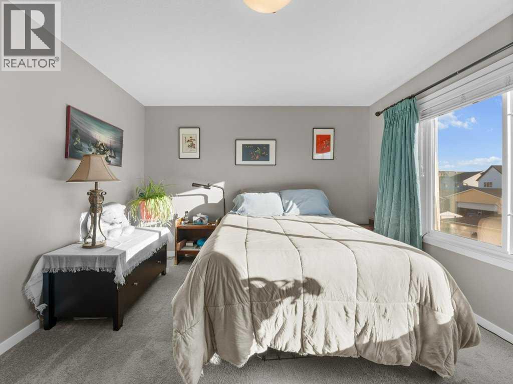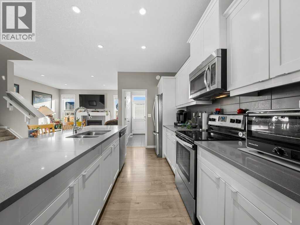 Welcome home to this charming, fully finished 2-storey with a covered front porch, perfectly situated across from Amery Park in the quiet, family-friendly town of Crossfield. Enjoy front-row access to the playground, outdoor rink (winter hockey / summer basketball), fire pit, community gardens and nearby storm-water ponds with scenic walking and cycling paths that lead into town. Inside, the open-concept main floor has a clean, contemporary palette and is bright and inviting, featuring high ceilings, durable laminate flooring, and a cozy gas fireplace anchoring the living room. The white island kitchen offers quartz countertops and stainless appliances—ideal for everyday living and entertaining alike. A convenient laundry/mudroom and 2-piece powder room complete the main level.Upstairs, retreat to the spacious primary bedroom, where large south-facing windows flood the room with natural light. The spa-inspired ensuite impresses with a dual-sink vanity, deep soaker tub, walk-in shower and private water closet. Two additional nicely-sized bedrooms, a 4-piece bath, and a large linen closet round out the upper floor. The fully finished basement adds exceptional versatility with a large recreation/games/media room, an additional bedroom, abundant storage and a 3-piece bathroom—perfect for guests, teens, or a home office setup. Step outside into a sunny, fully-fenced private backyard designed for easy entertaining, featuring a deck and thoughtful landscaping. The garage is drywalled and insulated, wired for 220V (plug is behind the deep freeze), and is ready for electric or radiant heat—plus it’s deep enough to accommodate a truck. There’s also room to park a vehicle or small RV beside the garage. The high-efficiency furnace and 50-gallon hot water tank were both professionally serviced in January 2026 and carpets professionally cleaned. This well maintained, move-in ready home offers comfort, functionality, and an unbeatable park-side location—perfect for families, outd oor enthusiasts, or anyone seeking small-town living with modern conveniences. Check out the **virtual tour** and come see experience it with your favourite realtor. (id:58070)