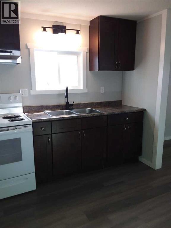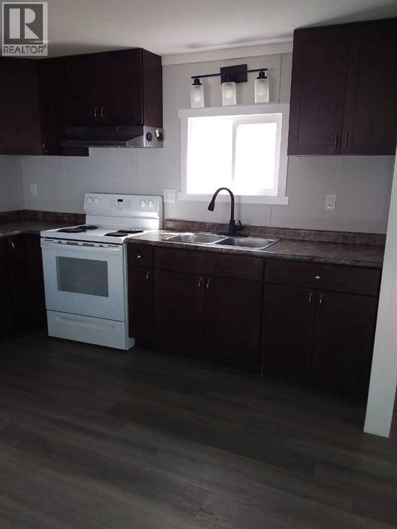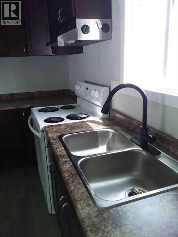 You can own this charming home for less than $20,000 down, with approved financing by Cove Homes. Priced right and available immediately! The exterior is crowned with a covered porch in front, ready for a couple of chairs and a side table. This leads into a entrance / mud room and lovely kitchen with updated, espresso cabinets with brushed nickel hardware. The fridge and stove are included. There is newer vinyl flooring, fresh, modern paint and white trim throughout. The primary bedroom features a large, double closet. The upgraded 4 piece bathroom has a modern cabinet & sink plus ceramic tile tube surround that needs to be seen to be appreciated. Added to the home is a 12 ft. by 6 ft. separate laundry / storage room with an exit to the back yard. This home has vinyl windows, siding and skirt plus a steel roof – all in great shape. The yard is a bit overgrown but waiting for your person touch. This unit is located a short distance to the clubhouse which features a community gathering area with kitchen, a modern exercise room, an 8-ball pool table and games room plus common area playground and bbq area. Calgary Village is a quiet, family friendly community. (id:58070)