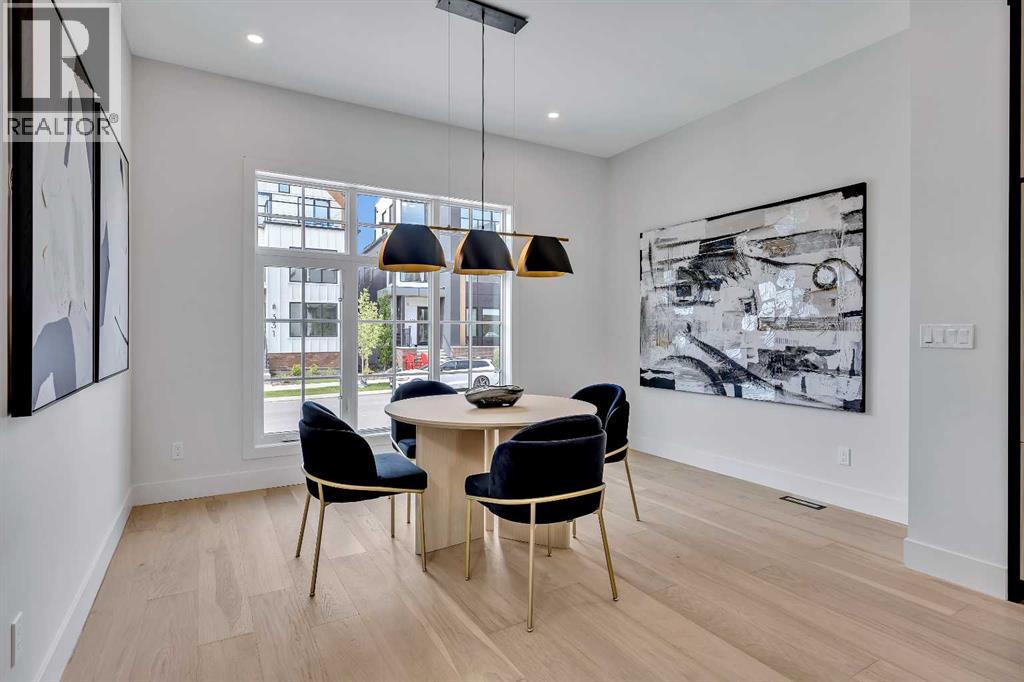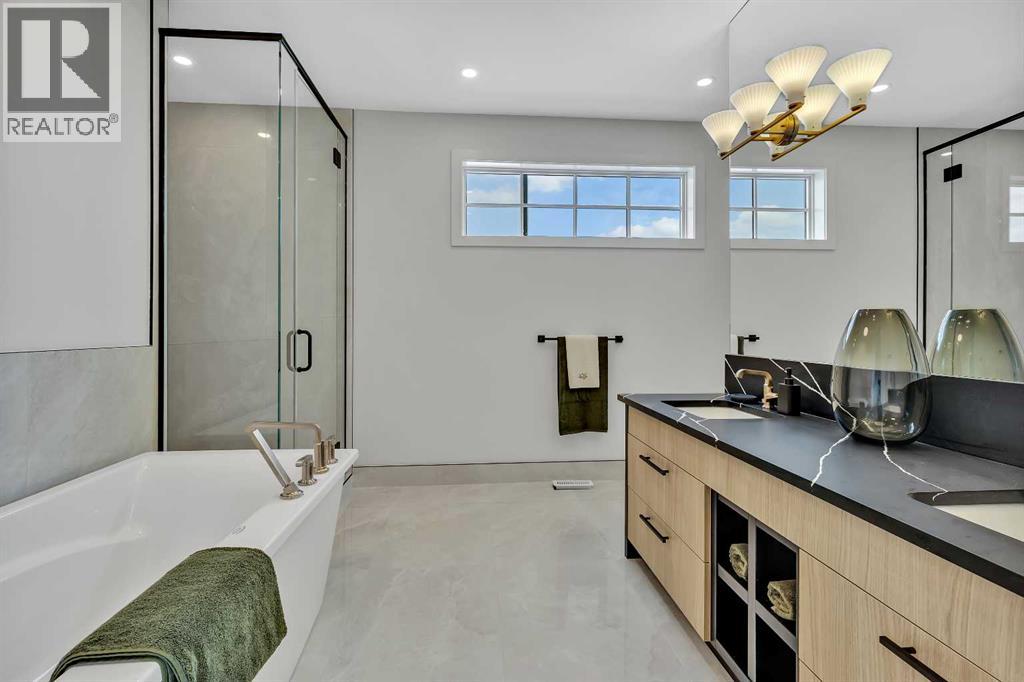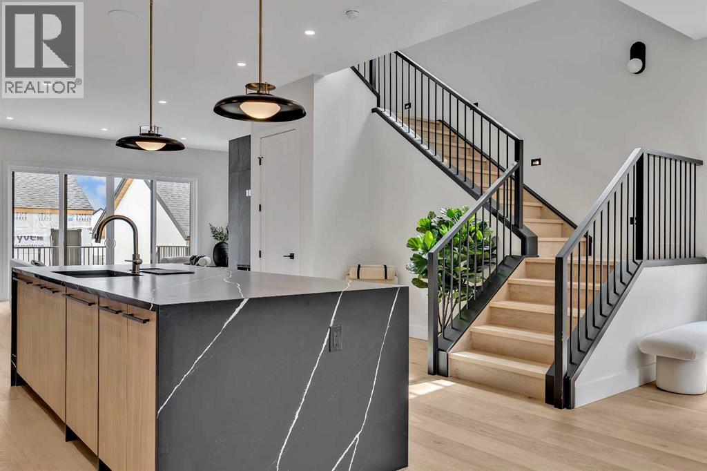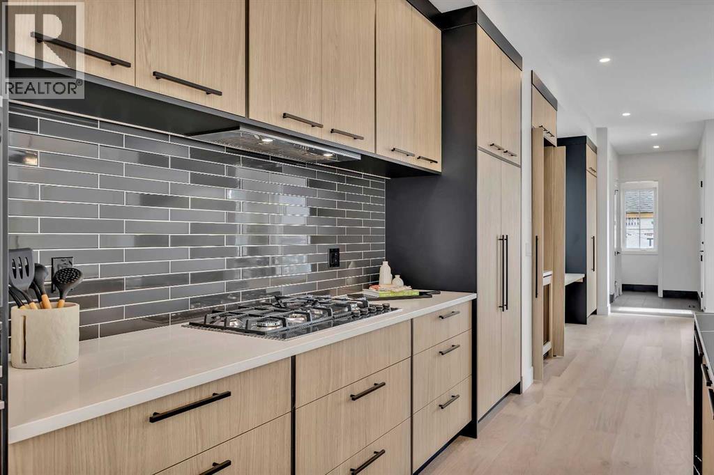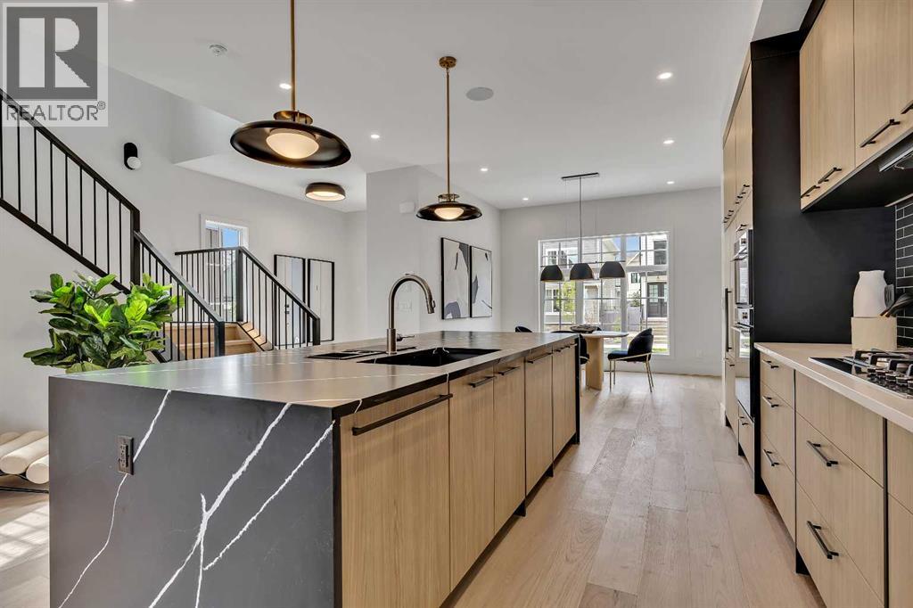 BACK ON THE MARKET DUE TO FINANCING. Welcome to your dream home in the picturesque community of Currie, Calgary! OFFERING OVER 3400 SQ FT OF DEVELOPED SPACE. This stunning farmhouse beautifully merges modern elegance with a great charm. With 4 spacious bedrooms and 3.5 luxurious baths, this residence offers ample space for comfortable living and entertaining.Approaching the home, you’ll be captivated by the contemporary elevation, impressive curb appeal and streetscape. The beautifully crafted interior features a GOURMET KITCHEN that is a chef's delight, showcasing a unique design with a WATERFALL ISLAND equipped with A TROUGH SINK, FISHER & PAYKEL BUILT IN PANEL COVERED FRIDGE & FREEZER, a NATURAL GAS STOVE, built-in convection oven and a speed oven/microwave, and custom cabinetry, all enhanced by under-cabinet lighting. The cozy living room is perfect for gatherings, featuring built-ins that add sophistication to the space. You also get to enjoy summer days in this fully AIR-CONDITIONED HOME.The serene master suite is a true retreat, complete with an elegant ensuite featuring HEATED FLOORS, a large double vanity with custom mirrors, and a freestanding tub that invites relaxation. Additional bedrooms provide comfort and privacy, while the upper floor includes a conveniently located LAUNDRY ROOM EQUIPED WITH A SINK and AMPLE STORAGEThe fully developed 1000+ sq ft basement is an entertainer's dream, equipped with HEATED FLOORS, EPOXY FLOORS IN MECHANICAL ROOM & STORAGE, CUSTOM BUILT IN ENTERTAINMENT UNIT AND WET BAR. This home also features a COMPLETELY FINISHED & PAINTED GARAGE, with a CHARGING POINT; providing a polished and functional space for your vehicles. Additionally, this home features PREMIUM VINYL FENCE AND COMPLETE LANDSCAPINGThe Home is designed for modern living, with cutting-edge technology including wired cameras, and integrated speaker zones for indoor and outdoor enjoyment. OTHER UPGRADES include STEP LIGHTS along the Stairways, HARD WOOD ON STAIRS and on hallway to bedroom, MILLWORK in PANTRY, LEVEL FIVE FLAT CEILINGS THROUGHOUT THE HOUSE, TILE BASE in Master Ensuite & Upgraded millwork in living area.Situated in Currie Barracks, one of Calgary’s finest inner-city communities, you’ll enjoy access to parks, walking and biking trails, and over 12 schools catering to all educational levels. This exceptional home combines elegant design, modern conveniences, and a vibrant community, making it a must-see for any discerning buyer. Don’t miss your chance to make this luxury residence your own! Schedule a viewing today and experience the warmth and beauty of this exquisite home. (id:58070)