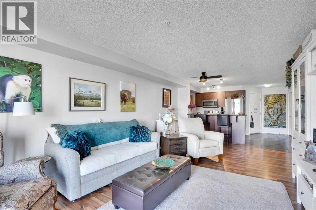 Welcome Home! This sweet condo is absolutely perfect for those who want a peaceful place to call their own. You can feel it as soon as you step into the suite. This corner suite overlooks walking paths, community spaces and greenery and the east exposure guarantees bright mornings. A generous size balcony is accessed through sliding patio doors from the living room: add some patio furniture, then sit back and enjoy the view. Tastefully decorated and well kept with dark stained wooden cabinetry, ceramic floor in the entry, kitchen and bathroom, laminate flooring in the living room and dining area, raised breakfast/casual/dining counter and upgraded appliances. The corner electric fireplace adds to the ambiance of this home. When it's cold outside, the heater fan can be turned on to gently warm the living area. Can you say "cozy"...?? There is abundant storage in the closets with built in shelving and space savers. An oversized, tiled, walk in shower in the main bath is both beautiful and functional. Care and thought was absolutely put into its design. Pride of ownership is both felt and seen in every part of this delightful condo. Walking distance to shopping complex with Shopper's Drug Mart, Save-On-Foods, banks, restaurants and... of course.... a Timmy's. A short drive will take you to the full Country Hills Shopping complex boasting a theatre, flower shops and the Calgary Public Library at Country Hills! CrossIron Mills is 15 minutes away. If you don't drive, Calgary Transit offers good service with connections at the North Pointe Terminal that's beside the Country Hills Complex. Check out the Panorama Pointe Community Centre, an active and expansive recreation facility for the area. A golf course is close by. Your designated parking stall #15 with power is right in front of the building. Condo fees include all utilities, even electricity. This home offers affordable, low maintenance living in a lovely area of Calgary. Contact your realtor to see it today!! (id:58070)