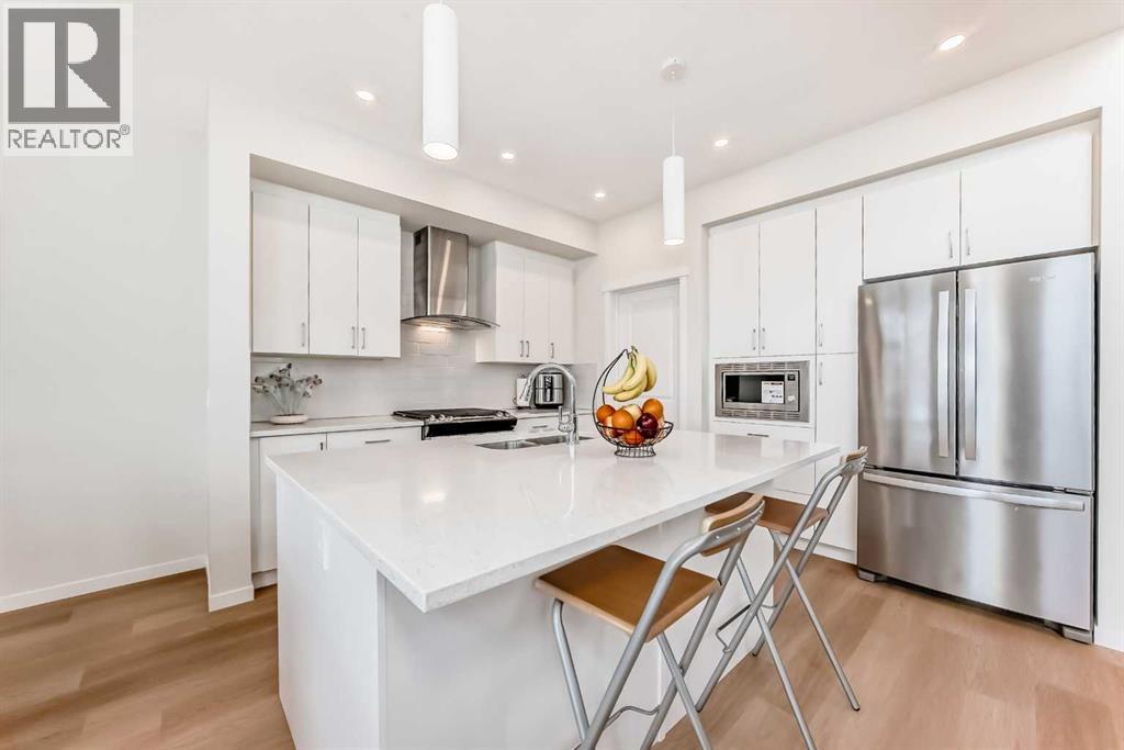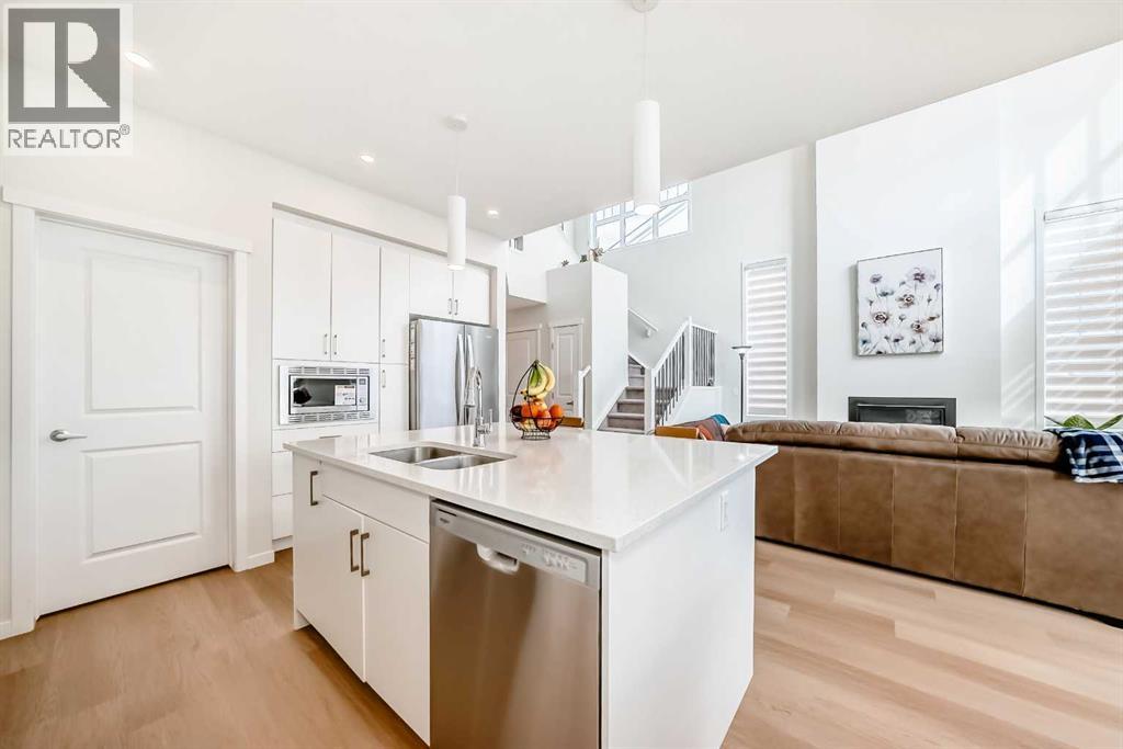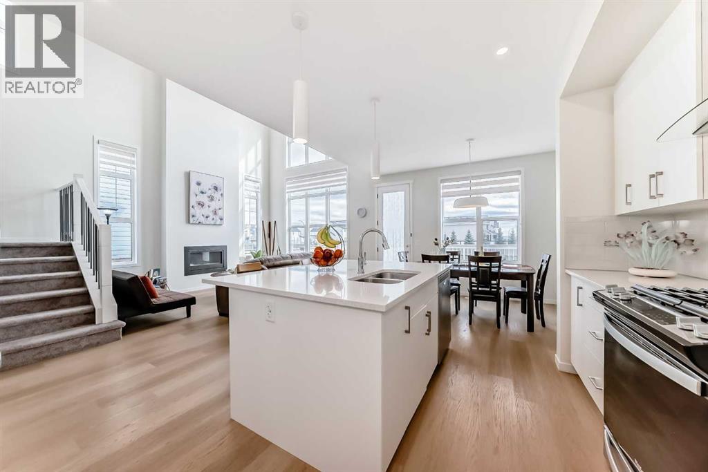 Welcome to this stunning 2025-built NEW home in the sought-after lake community of Mahogany, offering modern design, exceptional functionality, and incredible income potential. The MAIN FLOOR features a rare and versatile layout with a spacious BEDROOM and a convenient 4-piece bathroom just steps away—ideal for multi-generational living or guests. The heart of the home is the impressive living room with soaring 19-FOOT CEILING, a cozy fireplace, and expansive windows that flood the space with natural light. The bright, contemporary kitchen showcases white cabinetry, quartz countertops, a gas range, and a sleek wall-mounted chimney hood fan—perfect for both everyday living and entertaining. Upstairs, you’ll find a luxurious primary suite retreat, along with two additional generously sized bedrooms, a full 4-piece bathroom, and a versatile loft-style bonus room—perfect for a home office, play area, or media space. The fully finished basement offers a LEGAL SUITE with 9-foot ceilings, complete with its own living room, full kitchen, two bedrooms, and a full bathroom—an excellent mortgage helper or private space for extended family. Enjoy a sunny SOUTH-FACING backyard and a bright, inviting interior throughout the home. Located in the vibrant lake community of Mahogany, you’ll have access to parks, pathways, schools, shopping, and year-round lake amenities. (id:58070)
