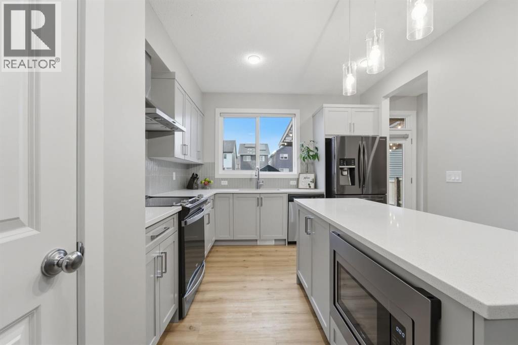 Welcome to Calgary’s first Garden-to-Table community and a home that truly reflects the lifestyle that comes with it.Located in Rangeview, this beautifully upgraded home offers over 1,550 sq ft of thoughtfully designed living space, ideal for families seeking comfort, functionality, and long-term value in a growing, lifestyle-driven neighbourhood.The main floor features a bright open-concept layout anchored by a fully upgraded kitchen complete with high-end appliances, chimney-style range hood fan, built-in microwave, and ample cabinetry and a pantry area perfect for both daily living and entertaining. A main floor den adds flexibility, ideal for a home office or study. Upstairs, you’ll find well-sized bedrooms along with a spacious bonus room, creating the perfect setting for family time, relaxation, or a kids’ play area. The fully finished basement with a separate side entrance offers incredible versatility, featuring 2 bedrooms, 1 full bathroom, kitchen, wet bar, and washer/dryer hookups, ideal for extended family living or future potential. Step outside to a thoughtfully designed outdoor space with a gazebo and concrete pad, perfect for hosting or unwinding. What truly sets this home apart is its location. Rangeview is Calgary’s first garden-to-table community, designed around connection, sustainability, and lifestyle offering community gardens, walkable pathways, parks, and a unique neighbourhood feel focused on bringing people together.Move-in ready, lifestyle-driven, and packed with value, this is a home you don’t want to miss. (id:58070)