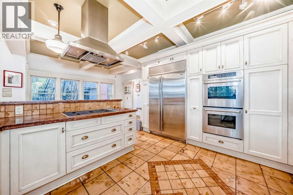 Facing a tranquil park in one of Calgary’s most treasured inner-city communities, this red-brick 5-bedroom, 4,289 sq.ft. (RMS+Finished Area) Scarboro estate embodies a rare harmony of heritage elegance and modern sophistication. The iconic red-brick façade and manicured gardens exude timeless charm. Inside, the Downsview Gourmet Farmhouse Kitchen is a true architectural masterpiece — surrounded by three-sided window walls, vaulted ceilings with rustic beams, and a sculptural curved island. Sub-Zero and Thermador appliances, dual sinks, and a skylit outdoor kitchen and patio make this the heart of the home. Between 2001 and 2022, thoughtful renovations harmoniously merged classic character with modern comfort. The formal dining room overlooks lush gardens, while the living room and paneled office, each with their own fireplaces, invite quiet moments of reflection. Upstairs, the serene primary suite features a spa-inspired ensuite, walk-in closet, and Juliet balcony overlooking downtown. A sunlit yoga room facing the park completes the tranquil experience. The lower level features a recreation room with a wet bar, a gym, a fifth bedroom, and a laundry room equipped with a cast-iron sink and a chute. A 2017 steam boiler system, two furnaces, and an oversized double garage reflect true craftsmanship. Set on a secluded, park-facing lot near top-ranked schools, downtown, and the LRT, this is more than a home — it’s a lifestyle of grace, light, enduring harmony, and true legacy! (id:58070)