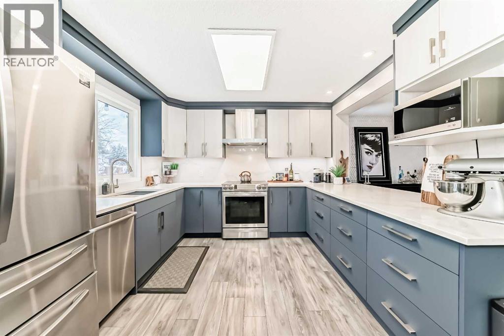 This exceptional updated 5 bed/3.5 bath + office two storey home, in the highly desirable & mature Deer Run Estates is a must see! Located on a quiet cul de sac, the home sits on on a huge pie lot, and perfect for a family at any stage of life. Walking up to the home, you'll appreciate the flagstone walkway, Gemstone lighting, widened driveway for plenty of parking & new overhead garage door on the heated & insulated double attached garage. The first things to catch your eye upon entry is the soaring ceilings, full wall of windows & grand staircase with rock feature wall, gorgeous modern chandeliers and engineered hardwood & luxury vinyl plank flooring. The generous open concept living & dining spaces with wet bar is ideal for hosting large gatherings with family & friends. The fully renovated kitchen features modern two tone cabinetry, all new appliances with an induction range & convection oven (but also has a gas connection in behind), quartz counters and breakfast nook with new lighting. The sunken family room features a large bay window & wood burning fireplace with mantle and built in bookcases on either side, a great spot to enjoy a family movie night. A main floor office/bedroom, laundry area, updated powder room & mud room area complete the main floor. Upstairs you'll find a large bonus area, perfect for the teens in your life to relax. The serene primary suite features a generous sleeping area with large bay window overlooking the private backyard, and good sized walk in closet. The fully renovated spa-like ensuite features a double vanity w/quartz counters, huge glass steam shower, soaker tub to unwind in at the end of the day, in-floor heat and loads of additional cabinetry. Two large secondary bedrooms & 5 pc main bath complete the upper level. In the lower level you'll find an illegal suite with full kitchen, large bedroom, games area & large recreation area with a second wood burning fireplace flanked by built ins, plus a huge 4 pc bath. Off the kitc hen the west facing backyard oasis is calling! There you'll find a expansive composite deck with plenty of space for dining al fresco and large lounging area. The large pie shaped yard features newer fencing, artificial turf for kids & fur babies to play, a large flagstone fire pit area (matching with the front flagstone work), landscape lighting, extensive landscaping, drip line irrigation in the gardens, gas line connectors on two sides of the home and two storage sheds. Ideally located a quick walk to Fish Creek Park Bow Valley Ranch & the Bow River, Deer Run Community Centre & tennis courts, and a playground just a block away. Additionally, the home is located close to Deer Valley Marketplace with it's updated shops, restaurants/pubs, Co Op grocery, medical & dental services, fitness center, family fun center & schools/daycares make this the perfect family community. Commuting is a breeze with easy access to Bow Bottom Trail and Deerfoot Trail. Book your showing today! (id:58070)