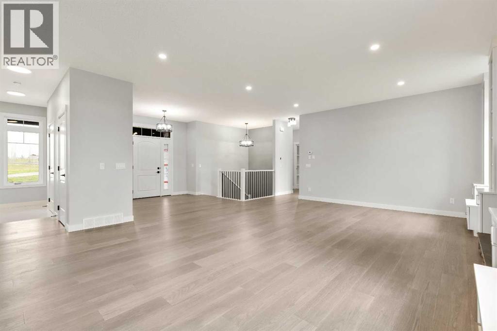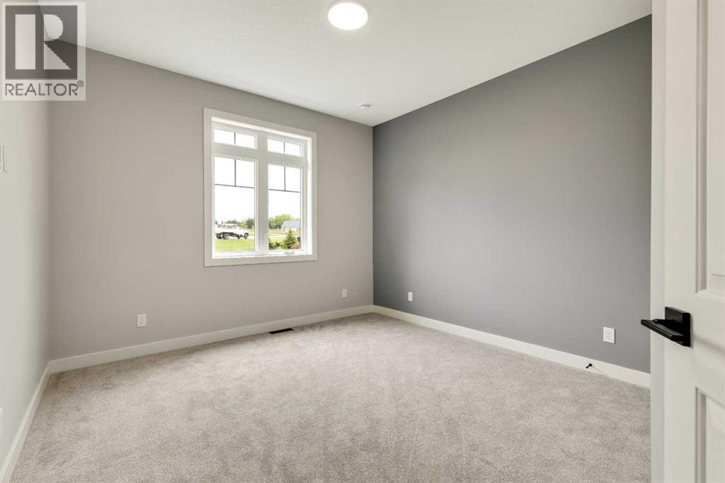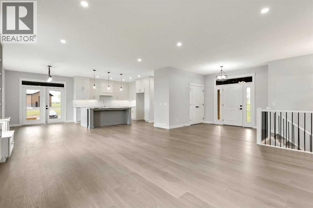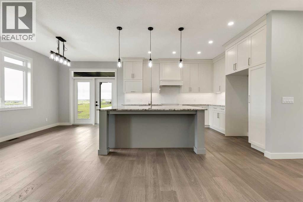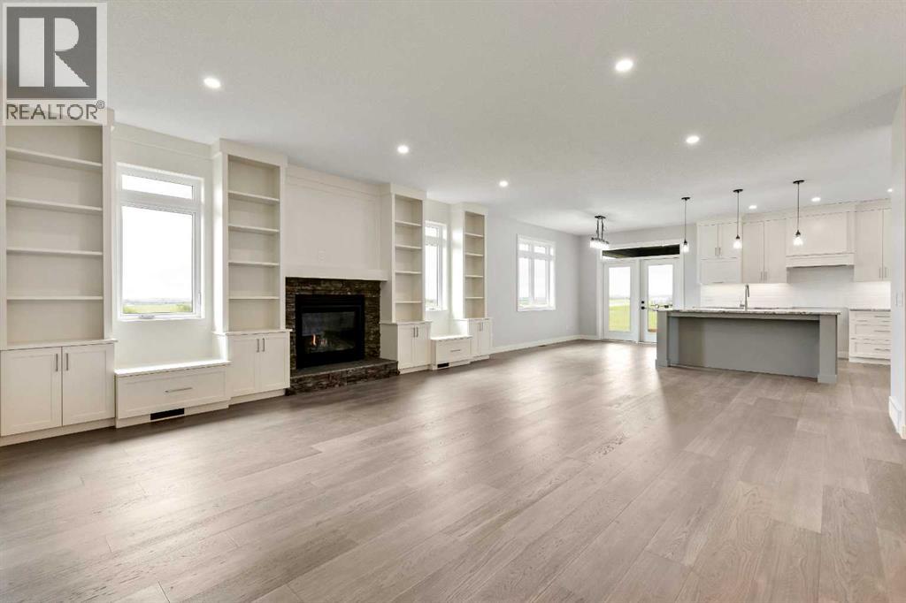 Unwind in Style and Comfort! Conveniently located just east of Okotoks and south of Calgary come and enjoy the years to come in this well-built designed to perfection 2001 sq. ft. bungalow on 4.30 acres. The main floor boasts an open concept filled with east views providing a nice flow of natural light, the warmth and coziness of a Napoleon gas fireplace flanked with built-in shelving, 9 ft. ceilings enhancing an airy atmosphere and offers ample space to comfortably accommodate large family gatherings. The kitchen is a chef’s delight, featuring timeless and natural beauty granite countertops, custom floor-to-ceiling kitchen cabinetry with remote under mounted lighting, hidden microwave shelf, island for seating, gun battle grey dual sink, and room for future dishwasher. The pantry cabinet offers pull out shelves for easy access. Options for electric or gas stove. The main level includes 3 bedrooms, including your bright & spacious & luxurious primary bedroom featuring an upscale walk-in closet with built-ins with a touch of country a barn door, an elegant 5-piece ensuite highlighted with a deep soaking stand-alone tub, shower, and double vanities, also on main offers 4-piece and a 2-piece bathroom and main floor laundry at the back entrance. The basement features a free-span steel beam, no exposed posts, it lends itself to being an open canvas for development with 9' ceilings and large windows. Oversize double attached garage with 13' ceiling height, insulated, & cement floor, nice window finishing, doggy house under the inside garage upscale entrance to the house.. Landscape will be finished to “topsoil”, 14’ x 34’ east deck pilings are installed for future development. Other features include double vapor exterior, continuous hot water with circulation pump, exterior soffit lights, cement entrance steps, sidewalks, and hardy board exterior highlighted with stone accent. Surround by covered sunrise and sunset decks to enjoy anytime of your day. All of this is located in a cul-de-sac subdivision and quick access to all amenities one needs, and to hwy 2 for the commuter in your family and minutes from South Campus Hospital or High River Hospital. (id:58070)