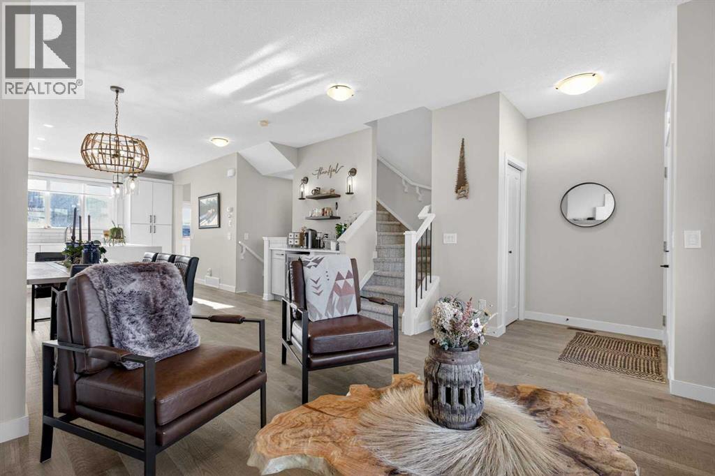 Welcome to 35 Wolf Hollow Park SE — the former Madison Ave Group showhome, beautifully upgraded and move-in ready.This stunning end-unit townhouse offers just over 1,400 sq. ft. of thoughtfully designed living space, a fully finished basement, and 3 bedrooms plus a versatile den — perfect for a home office, gym, or guest space. With 3.5 bathrooms and upgrades throughout, this home blends style, function, and comfort in every detail.Flooded with natural light thanks to its end-unit placement, the open-concept main floor features durable luxury vinyl plank flooring and a central kitchen designed for connection and entertaining. The sleek cabinetry, generous prep space, and seamless flow to both the dining and living areas make this the true heart of the home. A private main floor powder room adds convenience for guests.Upstairs, you’ll find upper-floor laundry, spacious secondary bedrooms, and a generous primary retreat complete with a walk-in closet and a beautifully appointed ensuite. Carpet adds warmth to the bedrooms, while tile flooring elevates each bathroom.The fully finished basement expands your living space with a flexible den area, an additional full bathroom, and a dry bar — ideal for entertaining or creating the ultimate movie night setup. With two dry bars in the home, hosting is effortless.Additional features include:Finished garage with 220V plugLuxury upgrades throughout as the original showhomeAbundant windows and natural lightModern finishes and thoughtful design touchesLocated in the sought-after community of Wolf Willow, close to pathways, nature, and everyday amenities, this is a rare opportunity to own a former showhome with premium upgrades in a prime end-unit location. This is a home you must see! (id:58070)