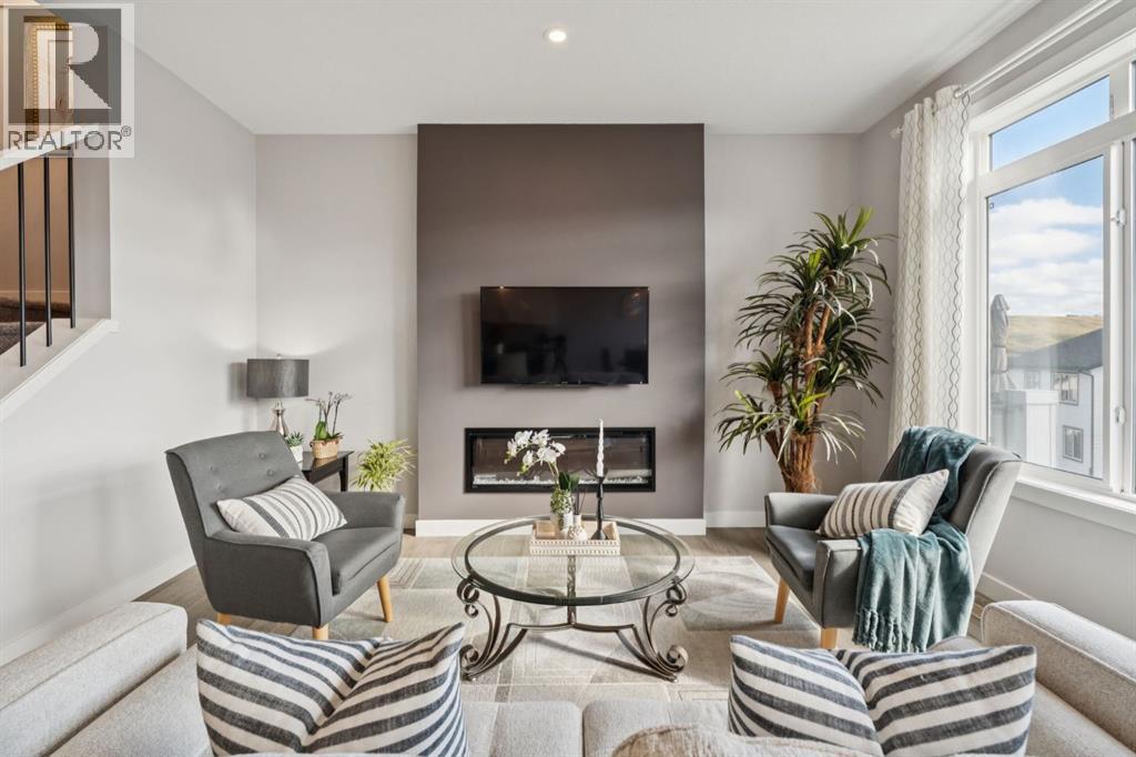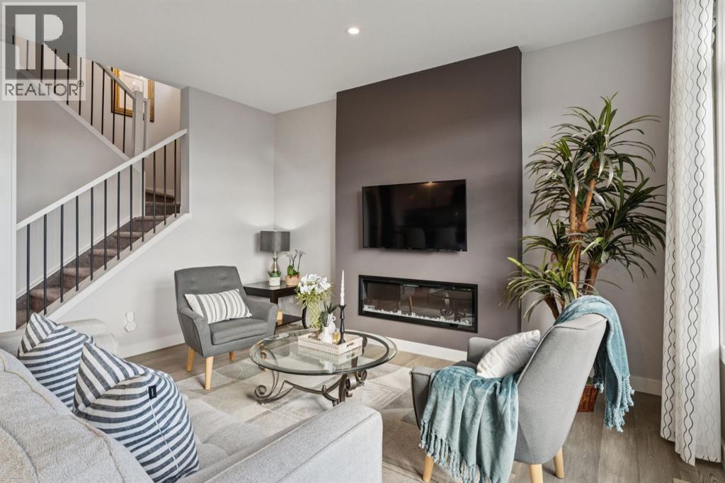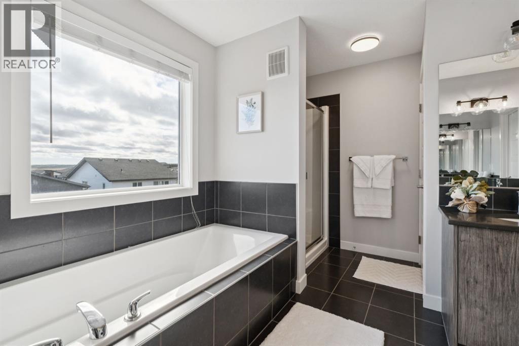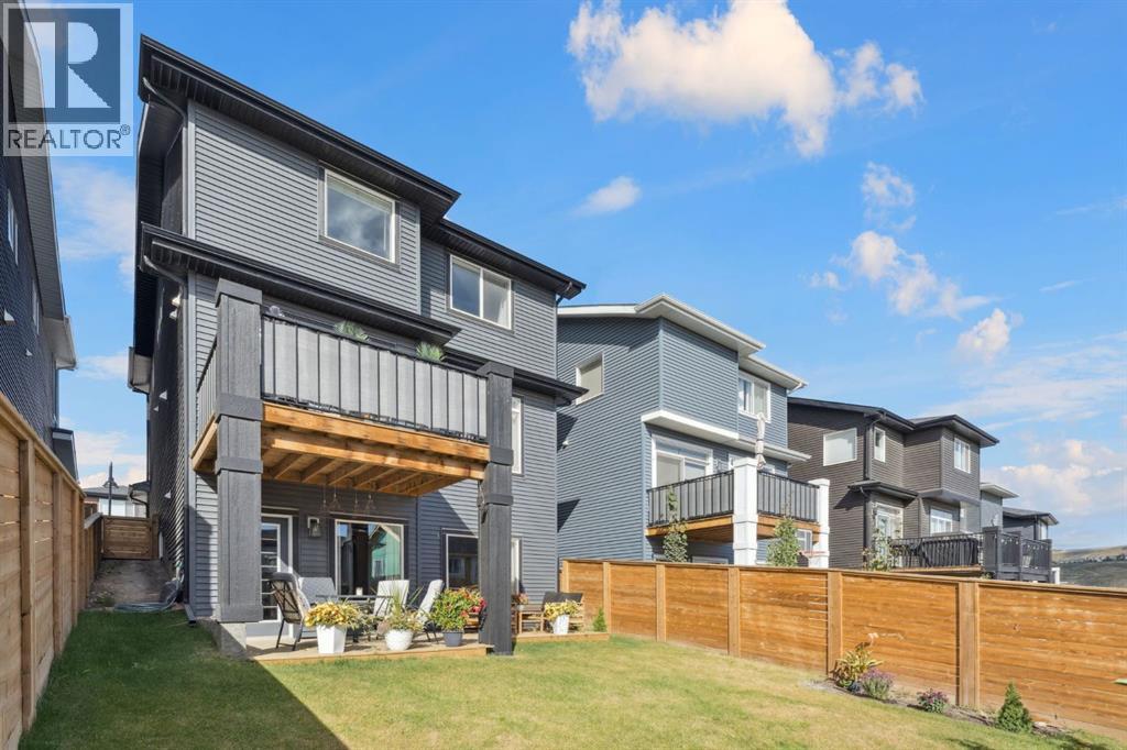 Experience refined living in this beautifully designed 2023 built home, where timeless style meets everyday comfort. * The heart of the home is a BRIGHT, luxurious WHITE kitchen featuring QUARTZ countertops and STAINLESS STEEL appliances * DESIGNER TILE, and elegant finishes throughout * Perfectly suited for both entertaining and everyday living * Upstairs includes a stunning primary retreat with VIEWS of Cochrane’s Glenbow Valley * Indulge in the spa-inspired 5-piece ENSUITE, * Complete with a SOAKER TUB, STAND ALONE SHOWER, DOUBLE VANITY, and a generous WALK-IN CLOSET * A stylish BONUS ROOM with a TRANSOM WINDOW adds the perfect touch of architectural interest and natural light * Additionally, two more bedrooms share a well-appointed 4-piece bathroom * plus a LAUNDRY ROOM completing the upper level * Thoughtful touches include an inviting BUILT-IN BENCH at the entry, * QUARTZ surfaces in every bathroom * Elegant ELECTRIC FIREPLACE creating a cozy ambiance in the main living area * The UNFINISHED WALKOUT BASEMENT offers incredible potential with a BATHROOM ROUGH-IN and direct access to a PRIVATE lower deck * The fully fenced, EAST-facing backyard is lined with trees and offers two outdoor living spaces * There is an UPPER DECK with a PRIVACY SCREEN and a LOWER PATIO—both with stunning VIEWS of the valley * This home is within walking distance to the river valley, parks, schools, and amenities * Also offering quick access to the Rec Centre, stores, and more * Enjoy elevated living in a peaceful, SCENIC setting—an exceptional home where luxury and lifestyle meet. (id:58070)