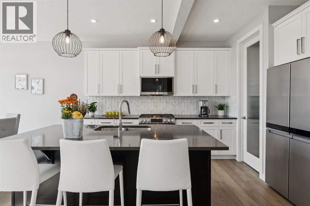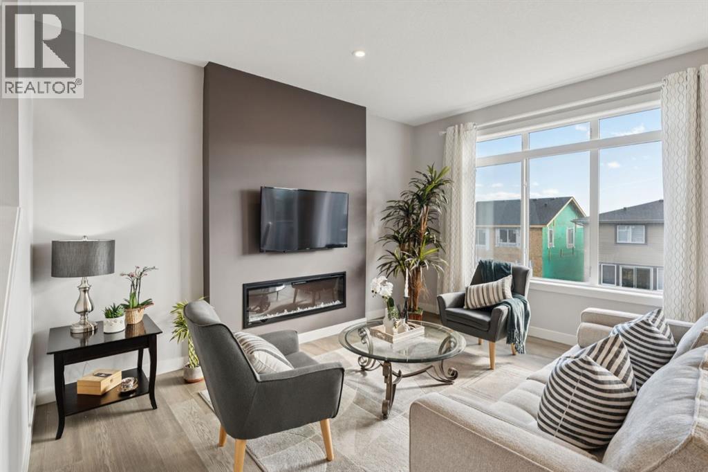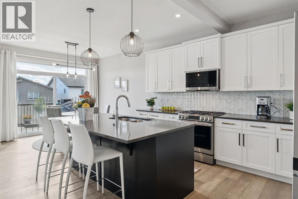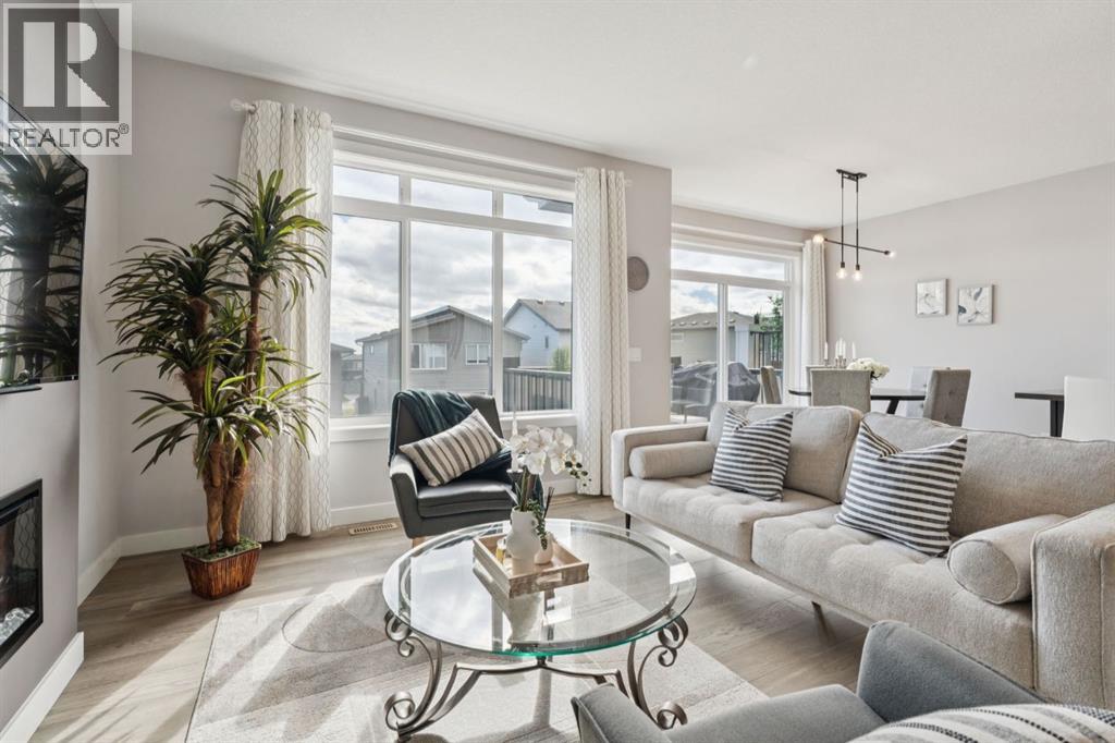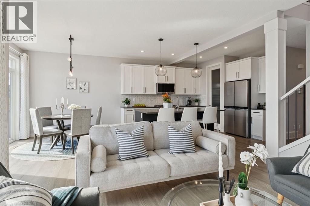 Experience refined living in this beautifully designed 2023 built home, where timeless style meets everyday comfort. * The heart of the home is a BRIGHT, luxurious WHITE kitchen featuring QUARTZ countertops and STAINLESS STEEL appliances * DESIGNER TILE, and elegant finishes throughout * Perfectly suited for both entertaining and everyday living * Upstairs includes a stunning primary retreat with VIEWS of Cochrane’s Glenbow Valley * Indulge in the spa-inspired 5-piece ENSUITE, * Complete with a SOAKER TUB, STAND ALONE SHOWER, DOUBLE VANITY, and a generous WALK-IN CLOSET * A stylish BONUS ROOM with a TRANSOM WINDOW adds the perfect touch of architectural interest and natural light * Additionally, two more bedrooms share a well-appointed 4-piece bathroom * plus a LAUNDRY ROOM completing the upper level * Thoughtful touches include an inviting BUILT-IN BENCH at the entry, * QUARTZ surfaces in every bathroom * Elegant ELECTRIC FIREPLACE creating a cozy ambiance in the main living area * The UNFINISHED WALKOUT BASEMENT offers incredible potential with a BATHROOM ROUGH-IN and direct access to a PRIVATE lower deck * The fully fenced, EAST-facing backyard is lined with trees and offers two outdoor living spaces * There is an UPPER DECK with a PRIVACY SCREEN and a LOWER PATIO—both with stunning VIEWS of the valley * This home is within walking distance to the river valley, parks, schools, and amenities * Also offering quick access to the Rec Centre, stores, and more * Enjoy elevated living in a peaceful, SCENIC setting—an exceptional home where luxury and lifestyle meet. (id:58070)