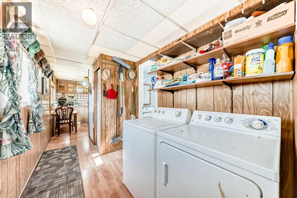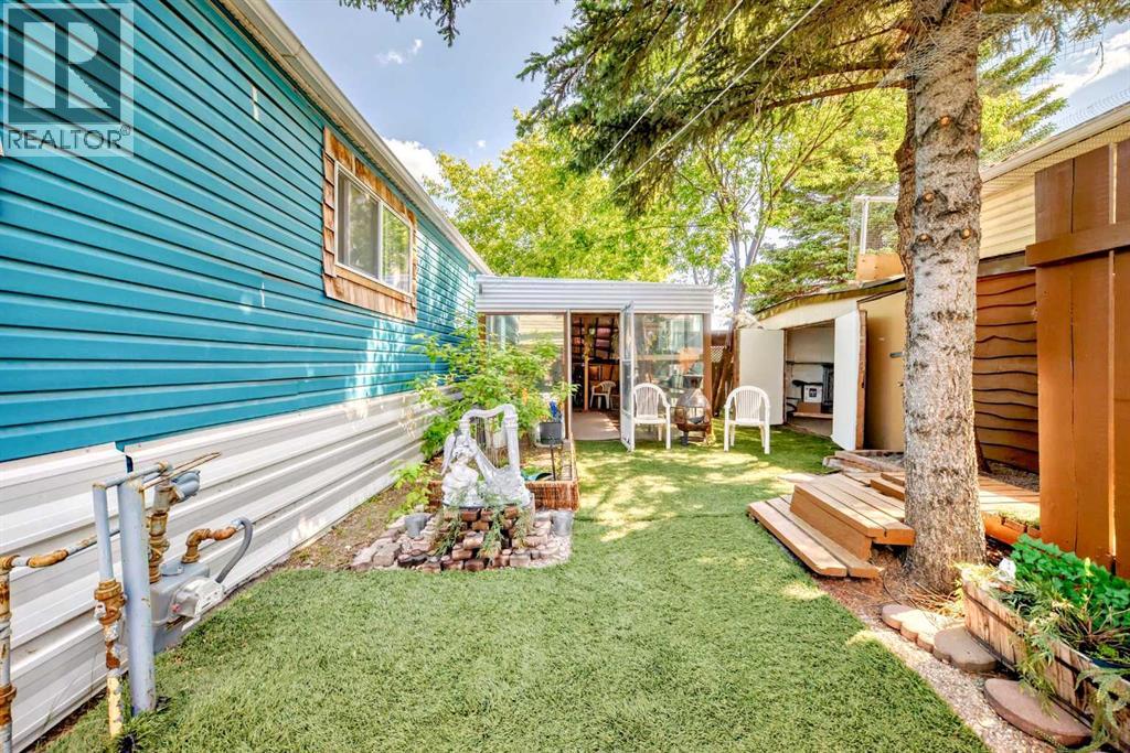 Welcome to this charming well maintained 2-bedroom, 1.5-bathroom mobile home, nestled on far end of the park, with views that are jaw dropping in, Greenwood Village Mobile Home Park. This older mobile home has been lovingly cared for and offers a bright and welcoming living space, perfect for those seeking comfort and tranquility in a family-friendly neighborhood. Step inside and be greeted by an abundance of natural light streaming through the skylights and numerous windows. The living space features a thoughtful layout, ideal for both relaxing and entertaining. The kitchen is equipped with 3 appliances ( refrigerator, stove, hood fan), offering a modern touch, and provides ample storage and counter space for all your culinary needs. The bedrooms are cozy and comfortable, the primary bedroom providing plenty of room for relaxation. The well-maintained 4 pc bathroom serves the home with style and functionality, there is a 2 pc bathroom in the front bedroom. Recent updates include a newer hot water tank, newer furnace, and a older washer/dryer. Outside, you'll find a lovely roof top deck and patio ( with a hottub that has never been used by this owner), perfect for enjoying your morning coffee or hosting outdoor gatherings, there is a large greenhouse, also a workshop (with access to under the mobile (this is well kept and lighted). The driveway adds extra convenience for parking and accessibility, rare find in this park is a garage that opens on both ends) . Located on a quiet street with excellent neighbors, this home offers a peaceful retreat from the hustle and bustle of city life. Greenwood Village is ideally located near shopping, parks, the new farmers market in Northwest Calgary, and Stoney Trail, making commuting and daily errands a breeze. Plus, pet owners will love being steps away from a dog park, perfect for giving your furry friends plenty of space to run and play. Don't miss this rare opportunity to own a well-maintained mobile home with some the upgr ades you need. Schedule a viewing today with your favourite Realtor and make this delightful property your new home! (id:58070)