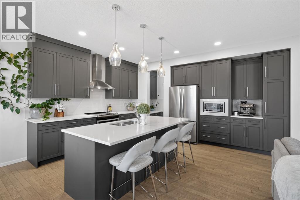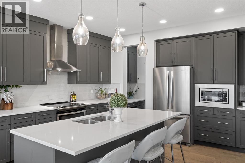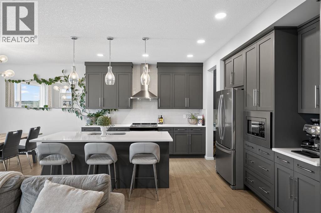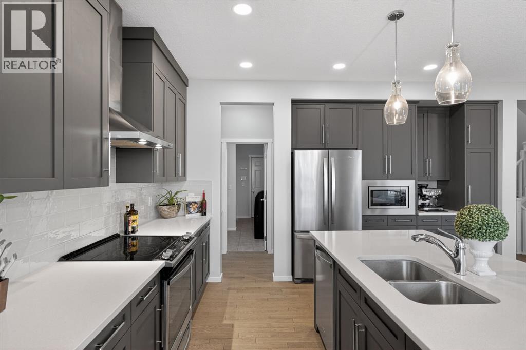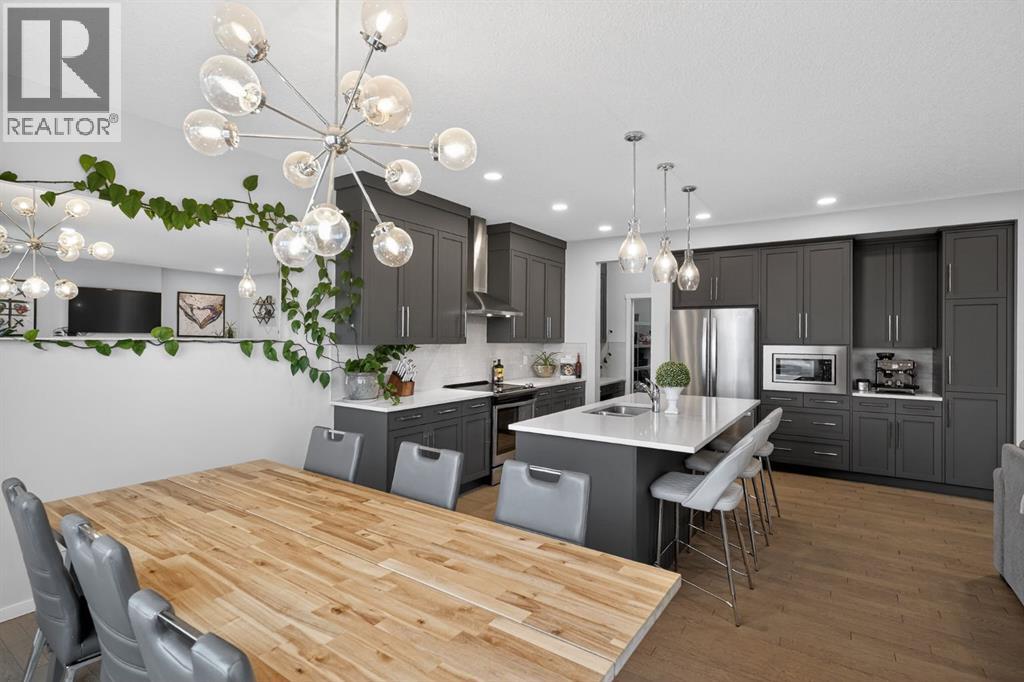 Backing onto expansive green space with no rear neighbours and unobstructed views, this fully finished walkout in Kings Heights offers over 3,100 sq ft of developed living space, with 5 bedrooms and 3.5 bathrooms, designed for those who value space, flexibility, and a setting that’s becoming increasingly hard to find.Tucked into a quiet close, this home combines a bright, open layout with a location that truly sets it apart. The south-facing main floor features 9’ ceilings, hardwood flooring, and a seamless flow between the kitchen, dining, and living areas.The kitchen is thoughtfully designed with a large island, quartz countertops, stainless steel appliances, and a walk-through pantry connecting directly to the mudroom and heated double attached garage.A main floor office with French doors creates a dedicated workspace, while upstairs, the bonus room provides additional living space. The primary suite is a true retreat, featuring a beautifully appointed 5-piece ensuite with a soaker tub and separate shower. Two additional generously sized bedrooms, both with walk-in closets, along with upper-floor laundry, complete the level.The fully finished walkout basement adds even more versatility, offering two additional bedrooms, a 3-piece bathroom, ample storage, and direct access to the backyard, ideal for guests, teenagers, or multi-generational living.The landscaped and fenced backyard opens directly onto wide green space with uninterrupted views and access to nearby pathways.Additional features include Gemstone exterior lighting, a heated garage, and excellent storage throughout.Located close to schools, parks, and everyday amenities, this is a well-rounded home in one of Airdrie’s most established communities. (id:58070)
