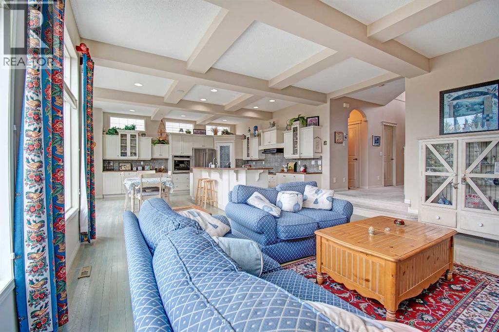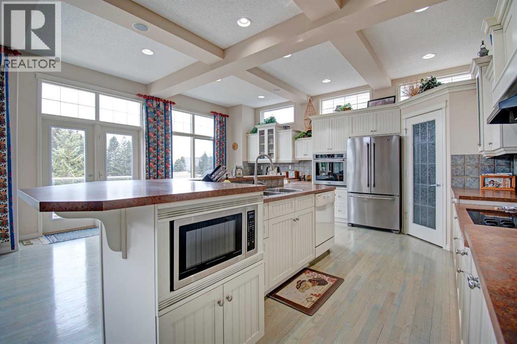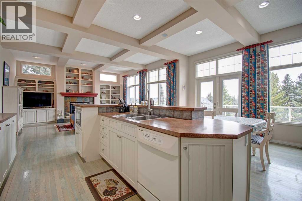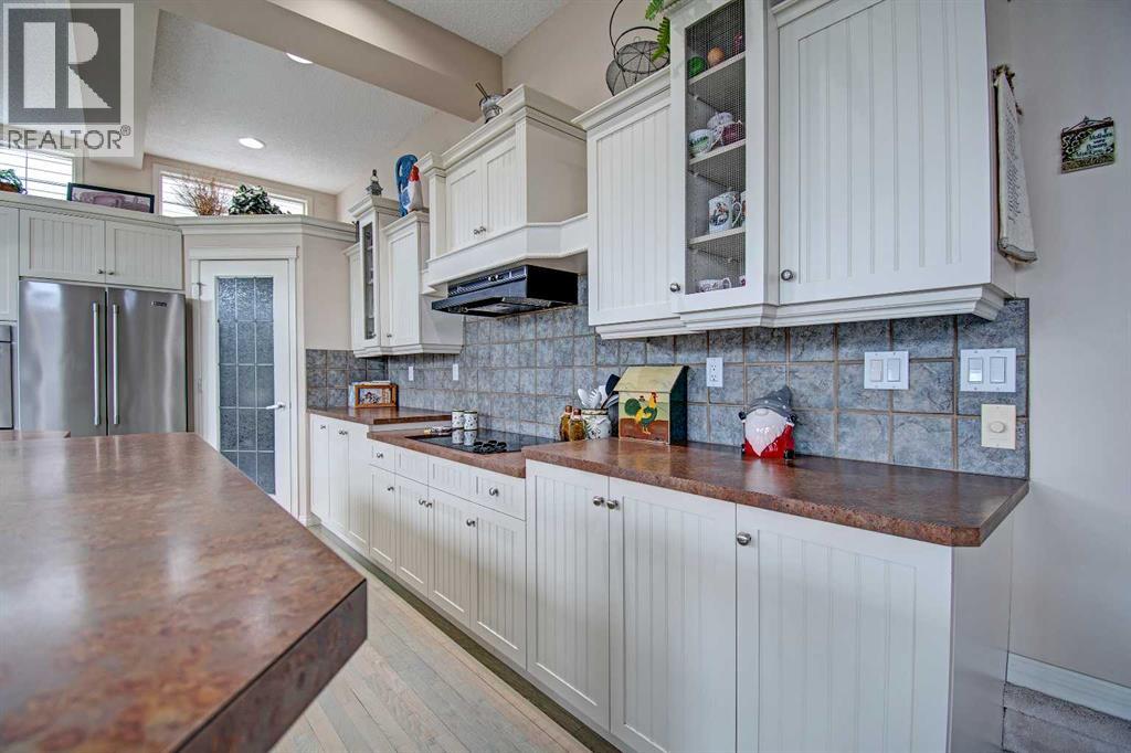 Welcome to this former Foothills Hospital Lottery Grande Prize home in the highly sought-after community of Springbank Hill offering nearly 2,600 square feet above grade, a fully finished walkout basement, 4 bedrooms, 3 1/2 bathrooms, and a rare triple-car (tandem) garage—an ideal combination of timeless design for families seeking space, style, comfort and functionality.From the moment you arrive, the home’s inviting front porch, beautiful stonework, and durable shake roof create a warm and welcoming first impression. Inside, a formal dining room greets you at the entrance, setting the tone for elegant gatherings. A bright great room with a cozy fireplace and built-in shelves with French doors opening to the full-width west-facing deck perfect for enjoying sunsets and panoramic mountain views. At the heart of the home lies a beautifully designed chef’s kitchen with stainless steel appliances, a built-in oven, cooktop, microwave, a large custom island, and a walk-in pantry. One of the home’s most unique features is the glass-wrapped office perched above the dining room on the way to the second level. With its built-in desk it offers an inspiring workspace rarely found in traditional layouts.The upper level includes a luxurious primary suite with French doors, a spa-like 5-piece ensuite with a soaker tub, large walk-in shower, double vanities and a spacious walk-in closet. Two additional bedrooms—originally themed as part of the Foothills Hospital Home Lottery -offer charm and personality. A large upper-level laundry room adds everyday convenience.The fully developed walkout basement offers a generous recreation room, one additional bedroom and another room that can service as a gym or a second office, and a beautifully finished 4-piece bathroom. The lower level opens directly covered patio, creating a private outdoor oasis ideal for entertaining, gardening, or simply enjoying the peaceful surroundings.The backyard is beautifully landscaped, offering privacy and space for outdoor living. Whether hosting summer barbecues, relaxing with family, or tending to a garden, this outdoor space is designed to be enjoyed.This home has been well maintained, with major mechanical updates including the furnace and air conditioning system, both replaced six years ago. Much of the furniture and décor can be negotiated with the sale. Located minutes from Griffith Woods, Aspen Landing, West Hills, Westside Recreation Centre, top-rated schools, parks, pathways, 69 Street LRT, and quick access to Stoney Trail this home offers exceptional convenience in one of Calgary’s most sought-after westside communities.A rare opportunity to own an executive-style home with spectacular mountain views, outstanding and timeless family-friendly design. Book your showing today. (id:58070)