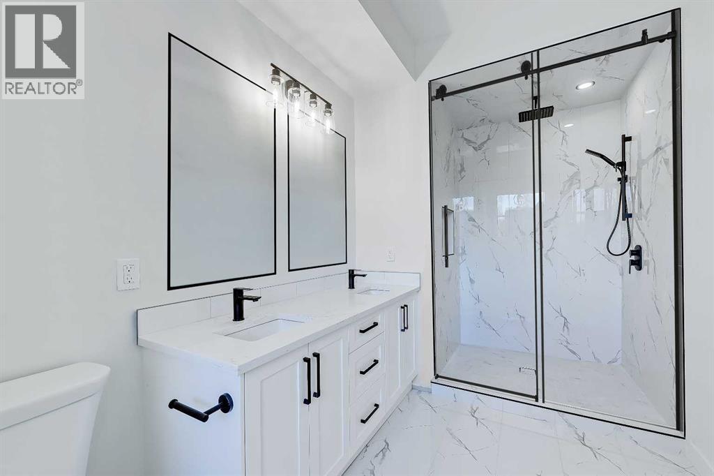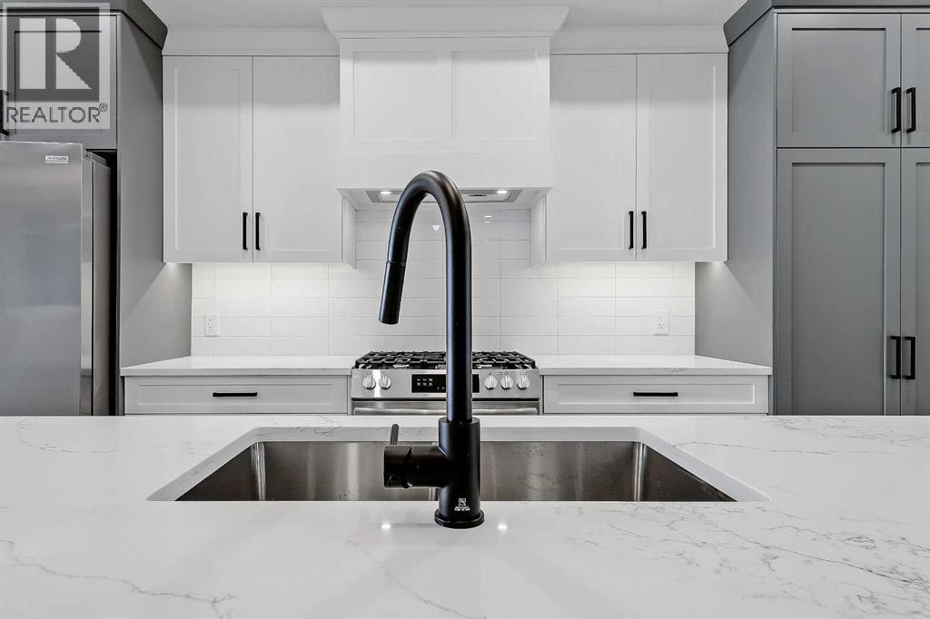 Home-cooked dinners and fresh beginnings. That’s exactly what you’ll find at this BRAND-NEW DETACHED INFILL IN HIGHLAND PARK, built with care and precision by AMSquared Custom Builders. The AMSquared approach is simple: if they do it right the first time, they’ll never need to address it again. Building across all areas of Southern Alberta, their construction experience is recognized for its superior quality, craftsmanship, and customer satisfaction—something to keep in mind when shopping around compared to other new infill builders! MOVE-IN READY AND DESIGNED WITH EVERYDAY LIVING IN MIND, a concrete wraparound walkway leads you to the clean, modern exterior. Step inside and let the open-concept main floor welcome you in. Luxury vinyl plank flooring extends throughout. The front dining area, framed by an oversized window overlooking the quiet street, sets the stage for cozy dinners and festive gatherings. Just beyond, the central kitchen commands attention with sleek dual-tone cabinetry, quartz countertops, a tiled backsplash, and stainless steel appliances, including a 5-burner gas stove. The oversized island doubles as a breakfast bar, while a pantry closet just off the kitchen keeps everything neatly tucked away. There’s even enough room for a breakfast table, illuminated by an oversized main floor window if you decide to convert the front room into an additional living or den area. In the rear living room, comfort meets design with an electric fireplace framed by a panelled accent wall. Dual sliding glass doors open to your private backyard retreat, where a large deck and grassy area offer space for year-round enjoyment. Tucked behind the living room, a mudroom connects to the 22’2” x 20’2” double detached garage via a concrete walkway. A convenient 2pc powder room completes the main level. Upstairs, plush carpeting adds warmth while oversized windows in every room fill the space with natural light throughout. The primary suite is a peaceful retreat featuring a walk-in closet with custom organizers and a spa-inspired 5pc ensuite with heated tile floors, dual vanities, a soaker tub, and a floor-to-ceiling tiled walk-in shower. Two additional bedrooms share a Jack-and-Jill bathroom, while the laundry room offers quartz counters, cabinetry, a folding surface, storage space behind the door, and a large skylight. The fully finished basement expands your living space with a large rec room, fourth bedroom, and 4pc bathroom, plus extra storage space under the stairs. Nestled on a peaceful street in Highland Park, this home offers a unique mix of city living and community charm. It is conveniently close to creeks, parks, and playgrounds. During weekends, enjoy a walk through nearby Confederation Park, relax with a coffee at a local café, or grab a Blizzard from Dairy Queen on your way! Families will appreciate the proximity to local schools and the Highland Park Community Centre, all within easy walking distance. Schedule your private showing today! (id:58070)