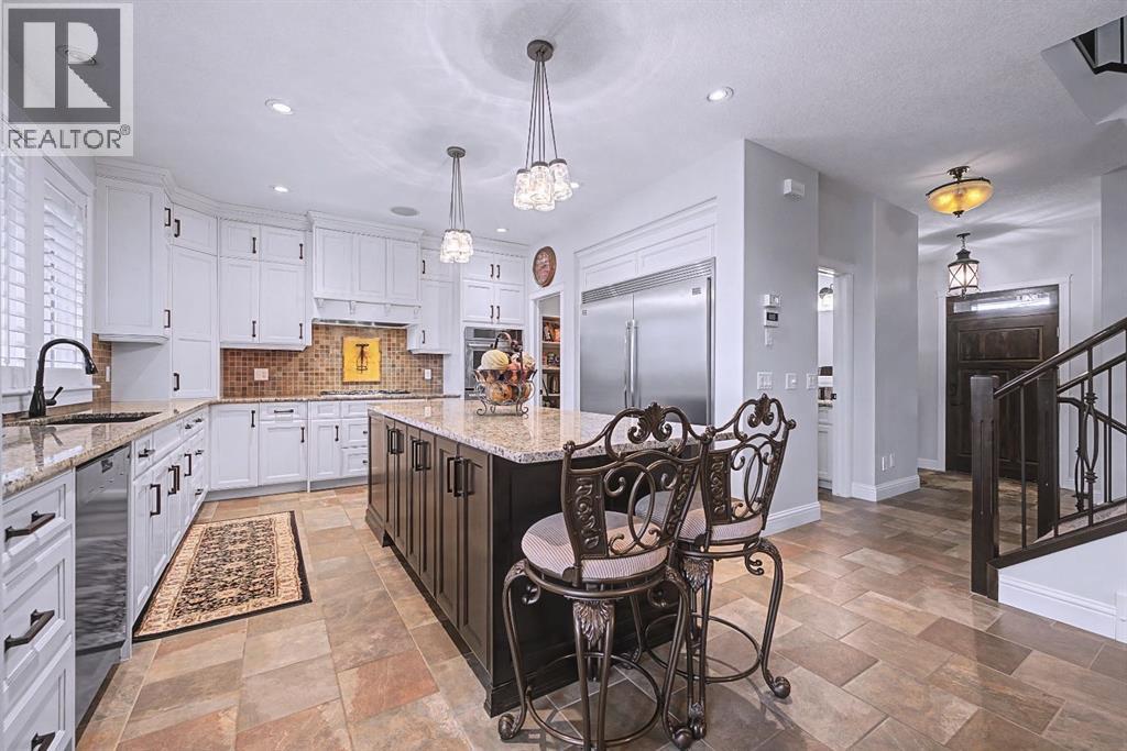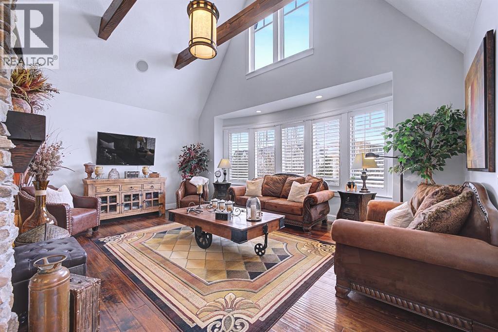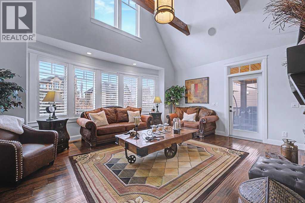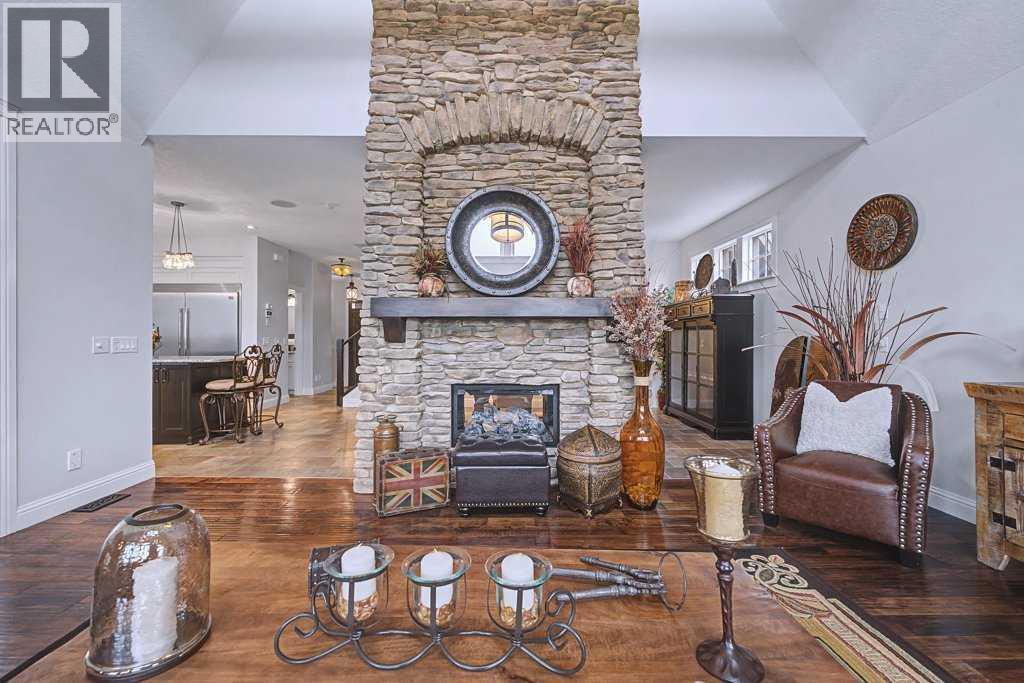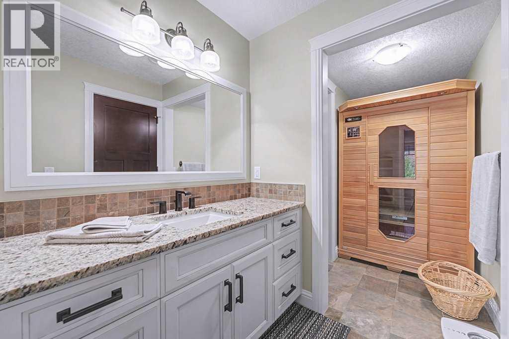 Get ready to fall in love.Welcome to 384 Coopers Terrace, a show-stopping walkout estate home in the heart of the prestigious Coopers Crossing. Perfectly positioned at the end of a quiet cul-de-sac and backing onto serene green space and walking paths, this property is the definition of elegance, craftsmanship, and timeless design.From the moment you arrive, the curb appeal impresses—with a sophisticated stone and stucco exterior, manicured landscaping, exposed aggregate concrete, and a massive triple tandem garage that checks every box.Inside, the wow-factor continues. This home has been immaculately maintained and offers refined touches throughout—from soaring vaulted ceilings to custom built-ins and premium finishes. The grand foyer welcomes you with space and warmth. To one side, a private office with custom cabinetry. To the other, a spacious mudroom with a walk-in closet designed for busy lives.The heart of the home is the gourmet kitchen—a dream for both chefs and entertainers. Outfitted with built-in stainless steel appliances including a Frigidaire Professional dual-door fridge, JENN-AIR gas cooktop & oven, and MIELE dishwasher, this kitchen blends functionality and beauty. A massive island, granite countertops, and warm wood shaker cabinets elevate the space, while the massive walk-in pantry ensures everything has a place.The open-concept main level features sky-high vaulted ceilings, with an 18 ft dual-sided stone fireplace that warms both the dining area and the inviting living room, drenched in natural light from oversized windows. The entire main level has been freshly painted in a warm white, enhancing the home’s airy and inviting feel.. Upstairs, the primary retreat is your own private escape—featuring a spa-like ensuite and large walk-in closet. Three more generously sized bedrooms, each with walk-in closets, and a versatile bonus room above the garage (think playroom, gym, or yoga sanctuary) complete the upper level.Downstairs, the fully fin ished walkout basement expands your living space with an additional bedroom, 4-piece bathroom with sauna, a huge rec room, and a cozy family room perfect for movie nights or game days. Walk out to your professionally landscaped, low-maintenance backyard, finished with high-end astroturf and exposed aggregate paths for year-round beauty without the hassle.Just minutes from top-rated schools, shops, parks, and a quick commute to Calgary or the mountains—this home is the total package.Homes like this don’t come up often. Book your private tour today and see why 384 Coopers Terrace is the one you've been waiting for. (id:58070)