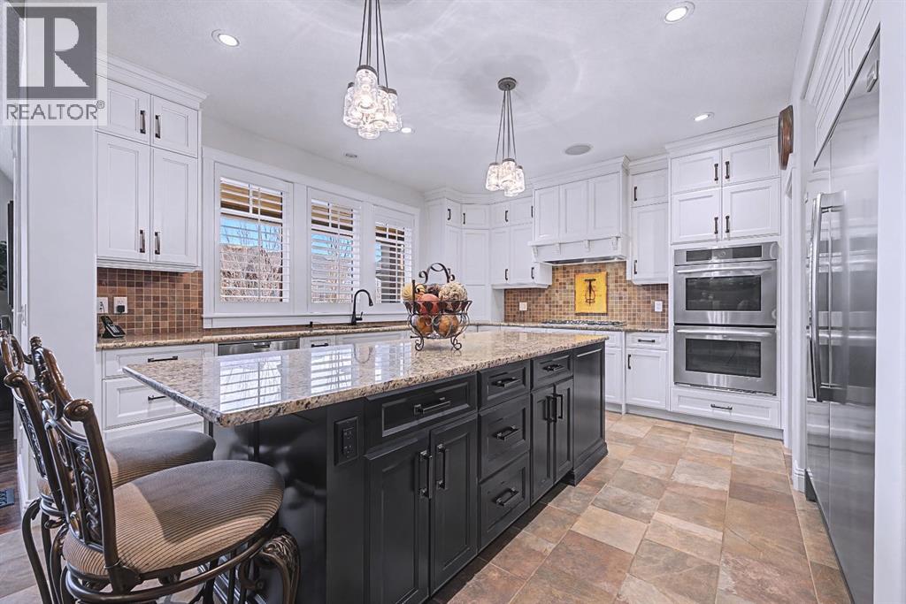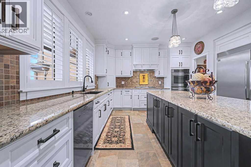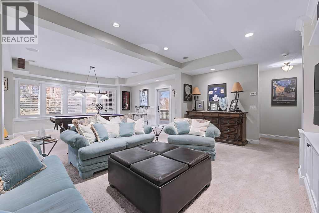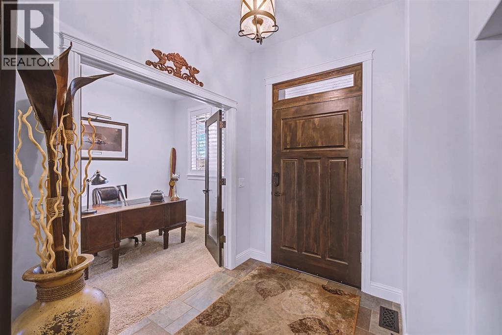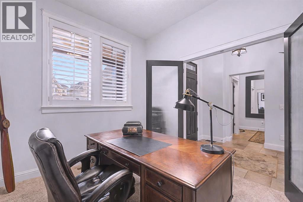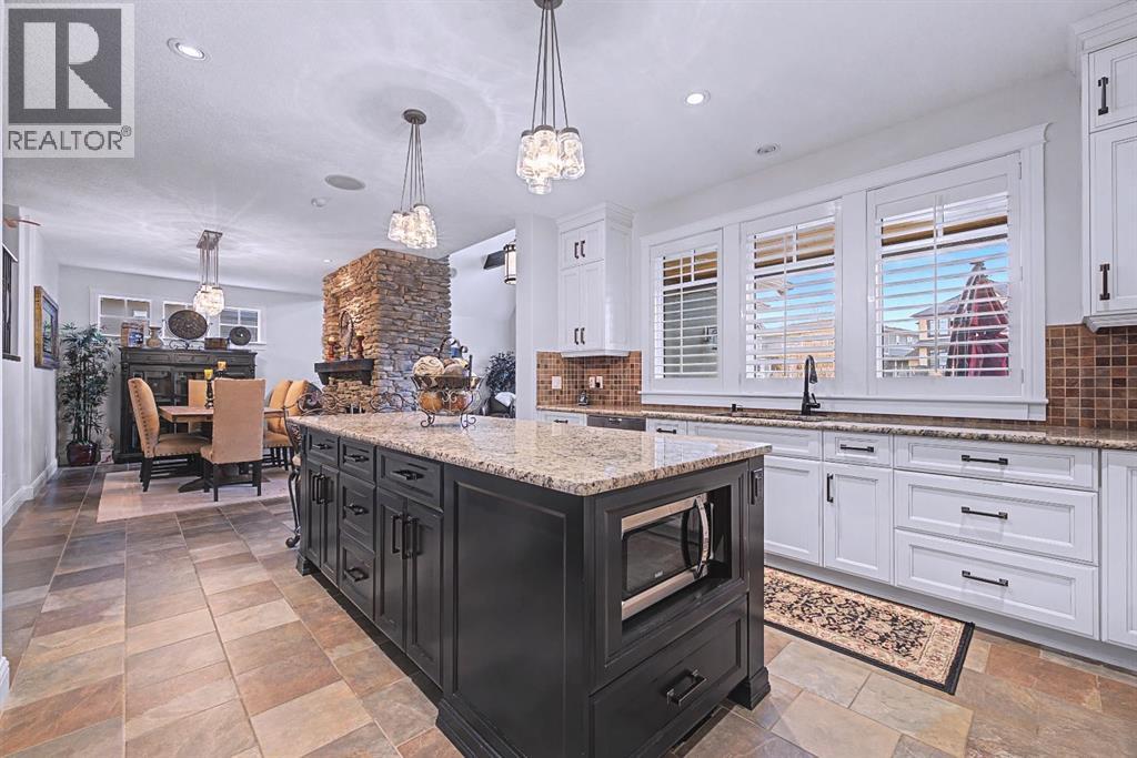 Get ready to fall in love.Welcome to 384 Coopers Terrace, a show-stopping walkout estate home in the heart of the prestigious Coopers Crossing. Perfectly positioned at the end of a quiet cul-de-sac and backing onto serene green space and walking paths, this property is the definition of elegance, craftsmanship, and timeless design.From the moment you arrive, the curb appeal impresses—with a sophisticated stone and stucco exterior, manicured landscaping, exposed aggregate concrete, and a massive triple tandem garage that checks every box.Inside, the wow-factor continues. This home has been immaculately maintained and offers refined touches throughout—from soaring vaulted ceilings to custom built-ins and premium finishes. The grand foyer welcomes you with space and warmth. To one side, a private office with custom cabinetry. To the other, a spacious mudroom with a walk-in closet designed for busy lives.The heart of the home is the gourmet kitchen—a dream for both chefs and entertainers. Outfitted with built-in stainless steel appliances including a Frigidaire Professional dual-door fridge, JENN-AIR gas cooktop & oven, and MIELE dishwasher, this kitchen blends functionality and beauty. A massive island, granite countertops, and warm wood shaker cabinets elevate the space, while the massive walk-in pantry ensures everything has a place.The open-concept main level features sky-high vaulted ceilings, with an 18 ft dual-sided stone fireplace that warms both the dining area and the inviting living room, drenched in natural light from oversized windows. The entire main level has been freshly painted in a warm white, enhancing the home’s airy and inviting feel.. Upstairs, the primary retreat is your own private escape—featuring a spa-like ensuite and large walk-in closet. Three more generously sized bedrooms, each with walk-in closets, and a versatile bonus room above the garage (think playroom, gym, or yoga sanctuary) complete the upper level.Downstairs, the fully fin ished walkout basement expands your living space with an additional bedroom, 4-piece bathroom with sauna, a huge rec room, and a cozy family room perfect for movie nights or game days. Walk out to your professionally landscaped, low-maintenance backyard, finished with high-end astroturf and exposed aggregate paths for year-round beauty without the hassle.Just minutes from top-rated schools, shops, parks, and a quick commute to Calgary or the mountains—this home is the total package.Homes like this don’t come up often. Book your private tour today and see why 384 Coopers Terrace is the one you've been waiting for. (id:58070)