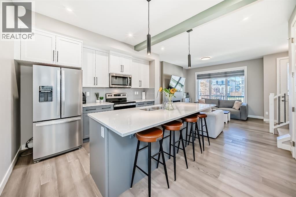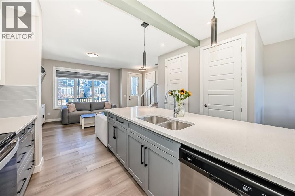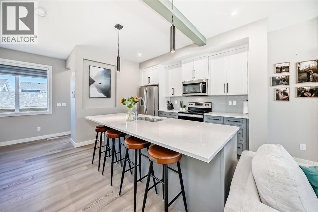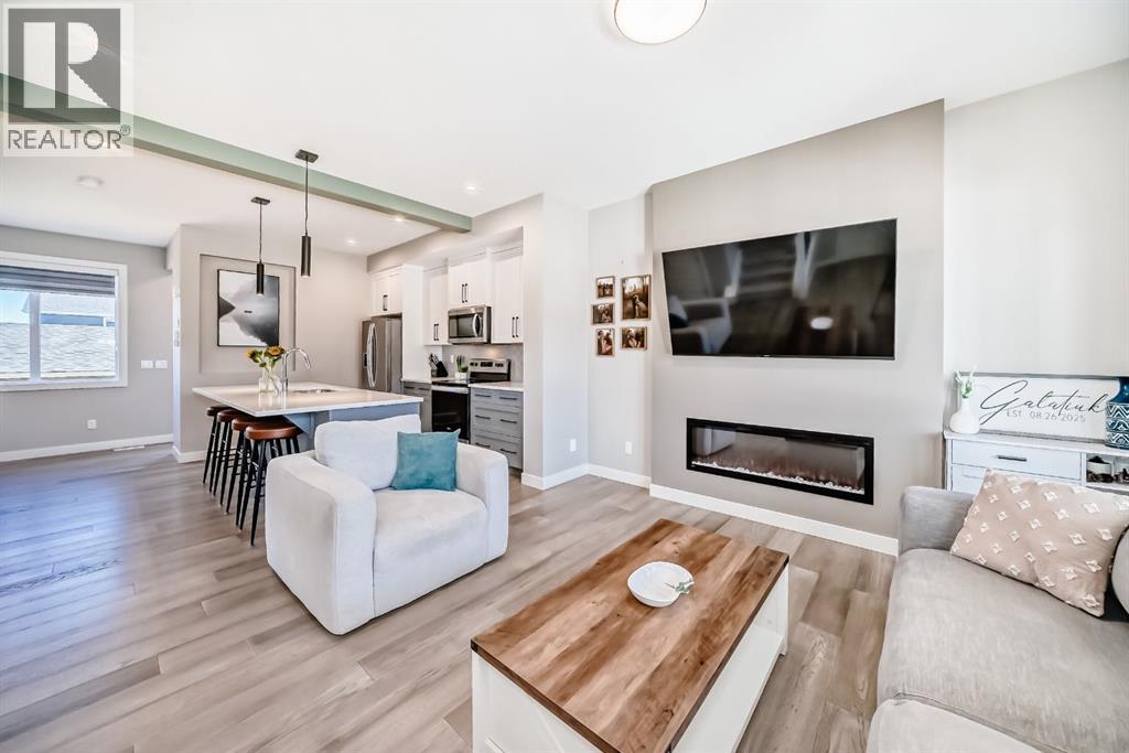 ** OPEN HOUSE, Saturday November 22nd, 1-3PM ** Welcome to this beautifully upgraded single-family detached home, perfectly combining modern style and everyday functionality. Step inside to find a spacious, open-concept layout featuring soaring 8-foot interior doors and high-end finishes throughout. The kitchen is a true showstopper with sleek quartz countertops, stainless steel appliances, and beautiful cabinetry—ideal for both cooking and entertaining. Relax in the cozy living area, complete with a contemporary electric fireplace that adds warmth and ambiance. This home offers three generously sized bedrooms, including a luxurious primary suite with a bit of a mountain view, a full ensuite and a large walk-in closet. The unfinished basement comes with a bathroom rough-in, offering endless potential to create the space you need. Outside, enjoy a beautifully landscaped yard, a back deck perfect for BBQs, and an oversized, insulated garage with plenty of room for vehicles, storage, or a workshop. Located in a vibrant and convenient community, you're just steps away from schools, walking paths, parks, and the nearby Trading Post commercial area, featuring restaurants, a convenience store, dental office, pharmacy, bakery, and more. This home truly offers the perfect blend of comfort, style, and location. (id:58070)