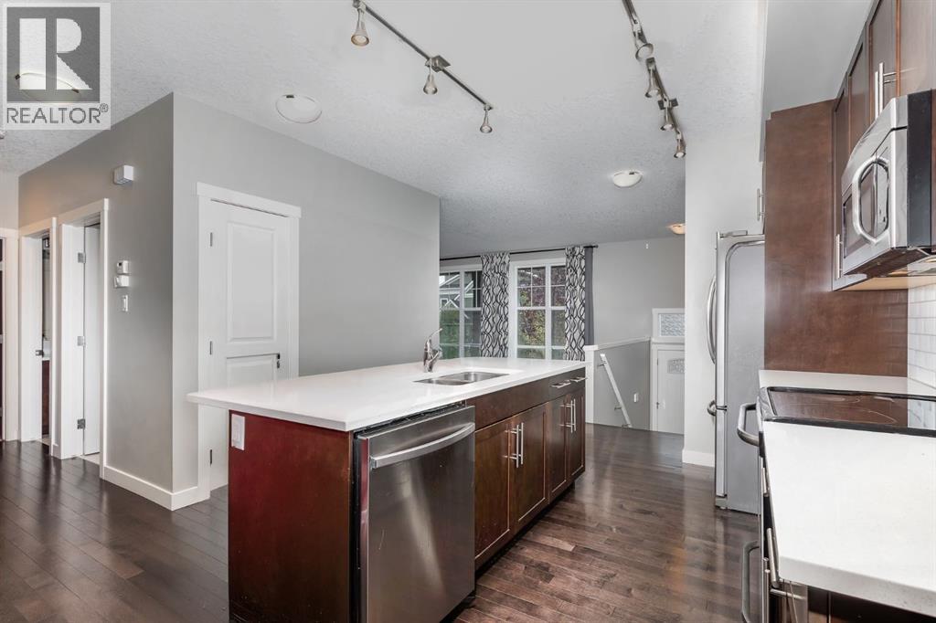 Effortless Bungalow-Style Living in McKenzie TowneMove-in ready and freshly professionally repainted in September, this beautifully maintained townhome offers true single-level, main-floor living in the heart of vibrant McKenzie Towne. With over 1,100 sq. ft. of thoughtfully designed space, this 2-bedroom, 2-bathroom bungalow blends comfort, convenience, and smart upgrades—perfect for anyone seeking low-maintenance living without compromise.The open-concept layout features a generous front living room with a cozy gas fireplace, custom built-ins, and expansive windows that flood the home with natural light. The kitchen, complete with a central island and seating, flows seamlessly into the dining area—an ideal setup for both everyday meals and entertaining.The spacious primary suite includes a walk-in closet with custom shelving and a private ensuite, while the second bedroom and full guest bath provide versatility for family, guests, or a home office. A dedicated laundry room, oversized storage/workspace off the garage, and a double attached garage add exceptional practicality.Recent upgrades include central air conditioning, a whole-home water softener, and a filtration system, all designed to elevate everyday comfort. With low condo fees and a walkable location just minutes from McKenzie Towne’s High Street shops, restaurants, and amenities, this home combines lifestyle and convenience.Whether you’re downsizing, looking for easy lock-and-leave living, or simply want the ease of a turnkey bungalow townhome, this property checks every box. (id:58070)