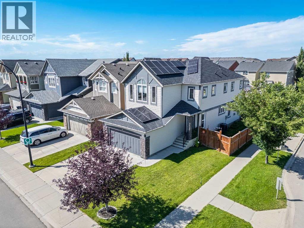 NEW Price! Discover Legacy’s Hidden Gem!  This stunning 2,300 sq. ft. corner-lot home perfectly balances modern style, functionality, and energy efficiency. The bright, open-concept main floor features soaring ceilings, sleek vinyl plank flooring, a cozy gas fireplace, and a chef’s kitchen with quartz counters, gas range, and stainless steel appliances—ideal for everyday living and effortless entertaining.  Step outside to your oversized two-tier deck, complete with a dog run, fruit trees, and a spacious yard backing onto green space—perfect for summer BBQs and family fun. Stay comfortable year-round with A/C, while solar panels help keep your utility bills low. Upstairs, unwind in the generous primary suite with walk-in closet and spa-inspired ensuite. Three additional bedrooms, a vaulted-ceiling bonus room, and convenient upper-level laundry complete the space. The unfinished basement offers endless possibilities—think rec room, home gym, or media lounge.  Located in Legacy, a vibrant southeast Calgary community twice named Community of the Year, enjoy 300 acres of environmental reserve, 12 playgrounds, 4 shopping districts (including Legacy Township), and top-notch schools—plus a brand-new K–9 elementary opening in 2026 just steps away. This isn’t just a house—it’s the beginning of your next great chapter. Book your private showing today! (id:58070)