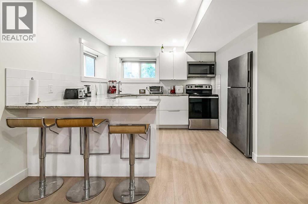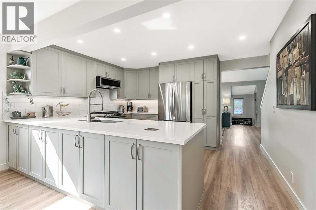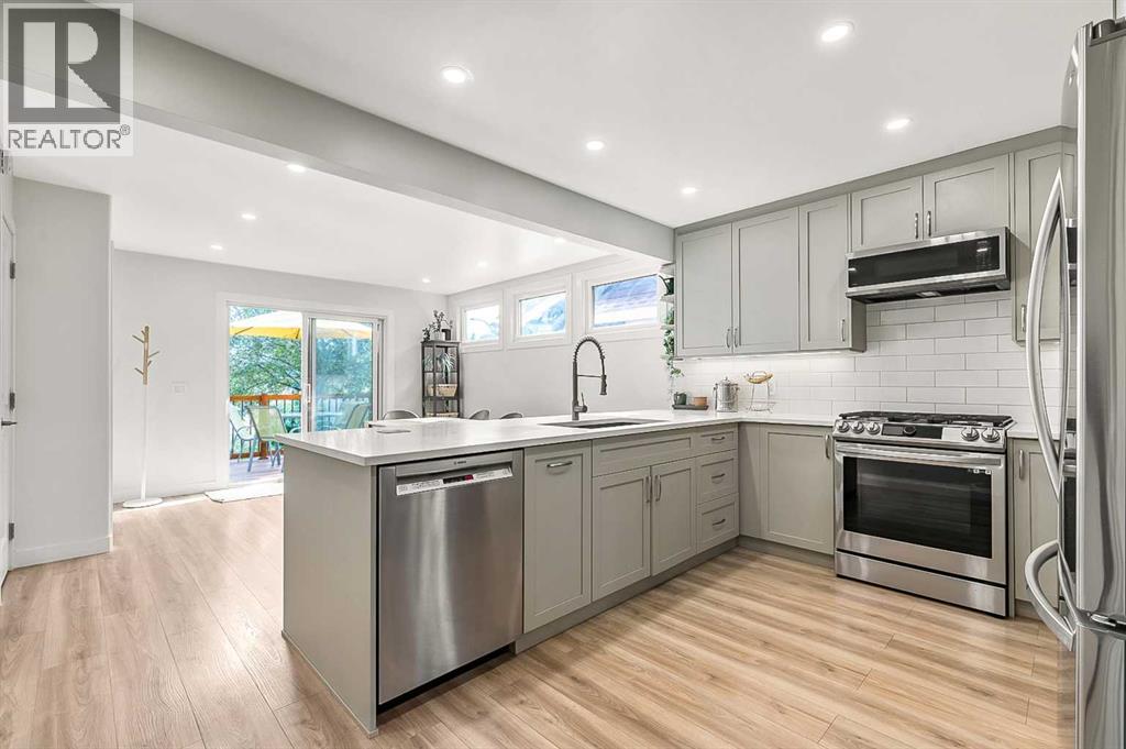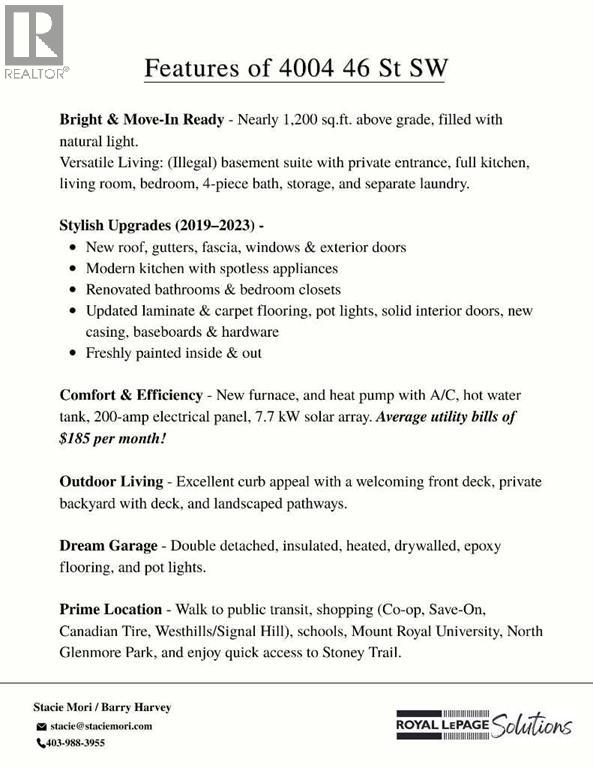 Come and enjoy this Move-in-Ready Home... Beaming with natural light, this 2 storey home in Glamorgan features a one bedroom basement suite (illegal) and major upgrades between 2019 and 2023. New roof (2019), gutters, facia, windows & exterior doors, new kitchen & appliances, bathrooms, bedroom closets, laminate flooring and carpet, pot lights throughout, solid interior doors, casings, baseboards, hardware, freshly painted inside and out! I forgot to mention... heat pump, new furnace, hot water tank and 200amp electrical panel! The 7.7kW solar array & heat pump keeps utility costs and your carbon footprint low with overall average utility bills of just $185/month, including AC! This home’s cost of ownership is truly remarkable (inquire for more info!). Put your energy savings into your mortgage and see the advantages! Great curb appeal greets visitors with a beautiful first impression on the cozy front deck, shaded by the front yard tree. Inside you are welcomed by a handy entrance that leads you to a comfortable living room with a vaulted ceiling and wood-burning fireplace. The bright, modern kitchen offers lots of counter space, cupboard storage, and spotless appliances. The roomy dining area leads to livable deck space & private back yard. A generously proportioned concrete path takes you to the double detached garage which is insulated, heated and drywalled, with an epoxy floor & bright pot lights. The upper level has a new bathroom, two bedrooms with space-efficient closets giving a boost of colour. The lower level features a separate entrance, large windows, 2nd kitchen and living room, a 3rd bedroom, and a 4 pc bath, plenty of storage plus a separate laundry! Offset your mortgage by renting the lower level or enjoy the additional space as a larger family home. All of this within walking distance public transit, shopping, schools, cafes, off leash area, parks, close proximity to North Glenmore Park / Reservoir, Mount Royal University and quick access to Stoney Trail! (id:58070)