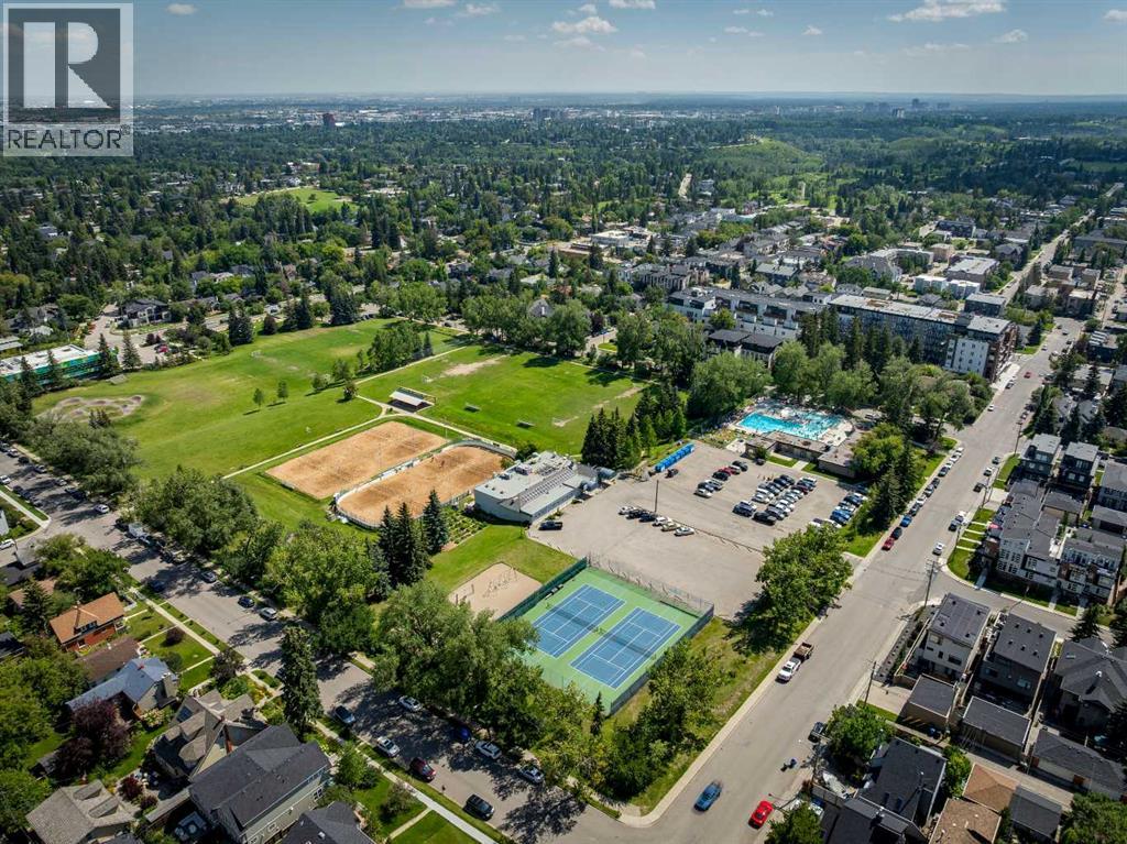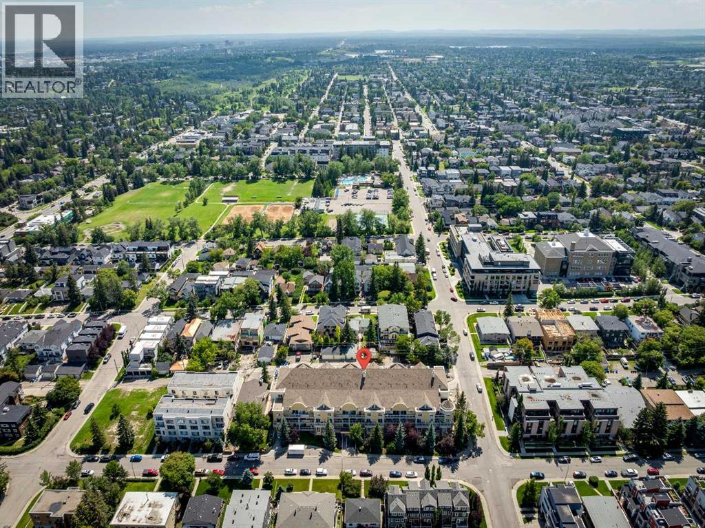 Welcome to this stunning 1,136 sqft TOP FLOOR 2-storey condo in the heart of vibrant Marda Loop, offering 1 spacious bedroom, 2 full bathrooms, a versatile loft, and a long private balcony! Soaring 2-storey ceilings - peaking at an impressive 25 feet - and expansive windows flood the space with natural light, creating an open, airy feel throughout. Step inside to discover thoughtful updates, including fresh paint completed in 2024, new window shades installed in November 2024, and luxurious in-floor heating throughout the entire unit. The sleek kitchen features stainless steel appliances -including a fridge that is 3 years old and a stove that is 5 years old - and opens to a huge living room with a beautiful gas fireplace and a designated dining area, perfect for entertaining. Laminate flooring, updated approximately 7 years ago, adds warmth and durability to the space. The private primary suite is tucked away with direct access to the balcony and a large ensuite bath with a corner soaker tub and a brand-new light fixture. A second full bathroom near the front entry (rare for a one-bedroom home) offers a tub/shower combo for added flexibility, and in-unit laundry (with a washer and dryer just 3 years old) is also included. Upstairs, the bright and spacious loft provides endless possibilities for a guest room, home office, gym, or play area. Enjoy summer evenings on your south-facing private balcony with a gas BBQ hook-up, and take advantage of the titled underground parking stall, secure storage locker, and convenient bike storage. Located just steps from boutique shops, trendy cafés, and some of Calgary’s best restaurants, plus minutes from 17th Avenue, downtown, and fantastic recreational amenities like an outdoor pool, tennis courts, skating rink, ball diamond, and public library - just a few short blocks away! This move-in-ready home is a rare find - book your showing today! (id:58070)
