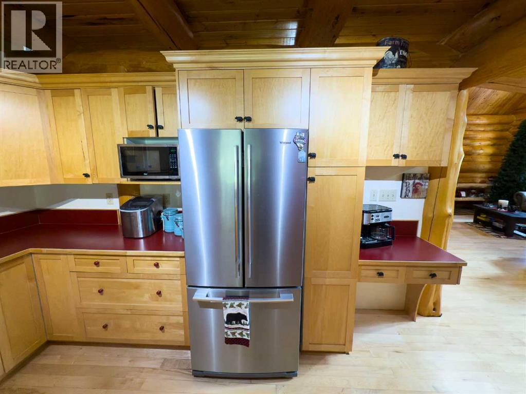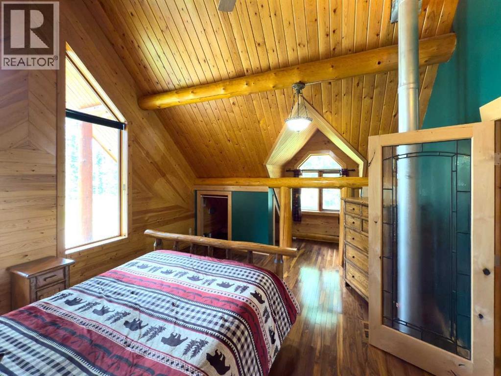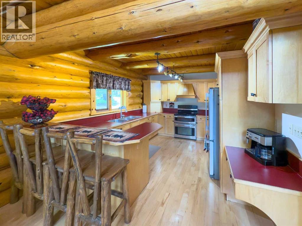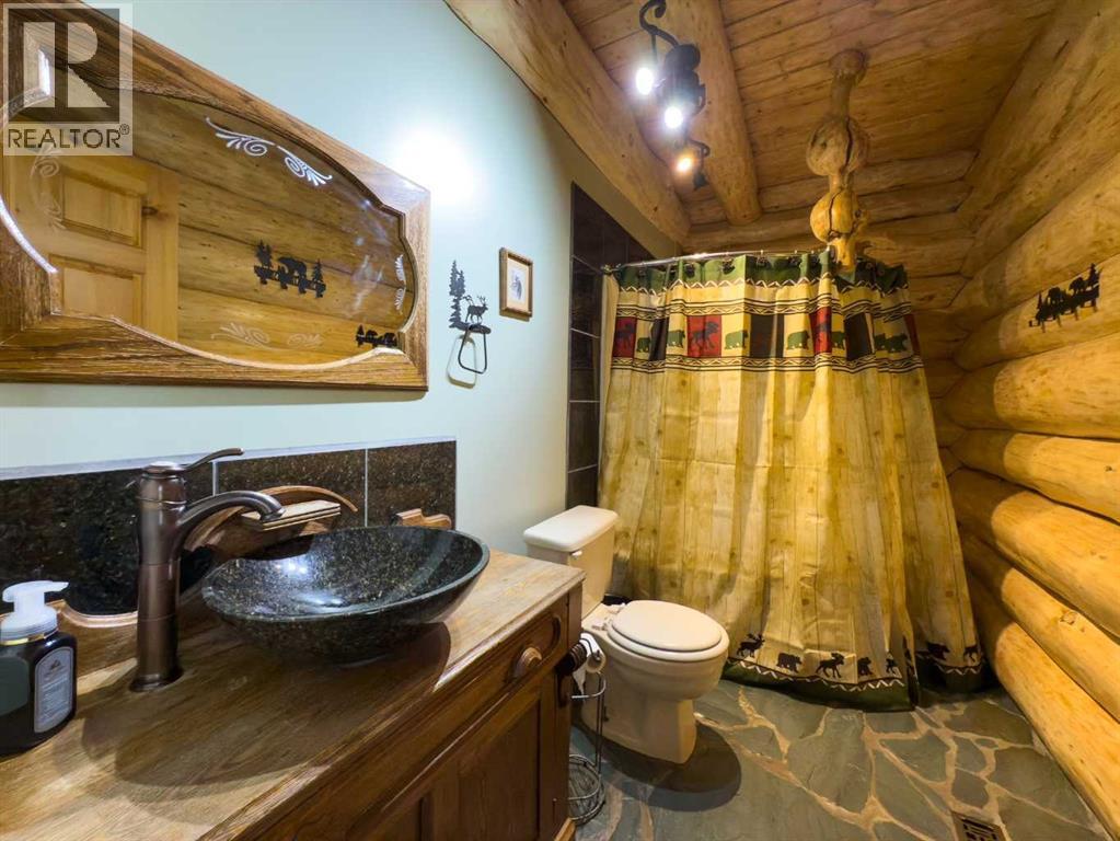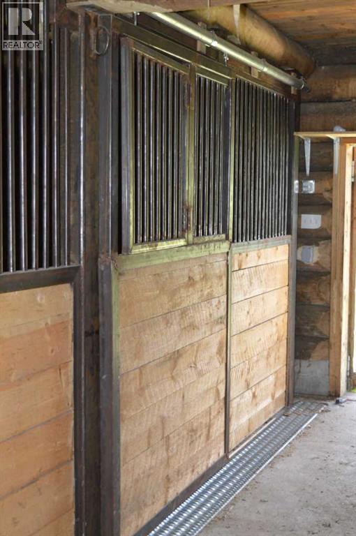 Rarely does one find a property such as this.....offering PRIVACY and QUIET SOLITUDE while still being convenient to amenities. Surrounded by crown land and on a no thru road, this oasis is located approximately 30 kms west of Rocky Mountain House. The private driveway with your own bridge crosses the Chamber Creek that flows through the property, then up the hill to the yard site. The custom built scribed log home offers 1790 square feet of beautiful living area. The main floor offers kitchen, den (currently being used as a bedroom), 3 piece bathroom, storage/boot room conveniently located just inside the main front entrance and a spacious great room with vaulted ceilings and maple hardwood floors. The upper level offers the primary bedroom with walnut flooring, a walk in closet and a 4 piece ensuite complete with free standing bath tub for those relaxing bubble bath soaks. The lower level has 3 bedrooms, family room with wood burning stove, the laundry room, 4 piece bathroom and mechanical room. This beautiful home has covered decks front and back for enjoying the fully landscaped yard with cedar fencing and retaining walls of limestone quarry rocks. The wood fired boiler provides heat for the house, with a propane furnace back up heat source. The 24' x 30' log barn with metal roof is complete with box stalls, tie stalls, tack room and upper loft...just waiting for your equine friends!! There are three stock waterers, corrals, a 90' x 30" calving shed and two water wells on the property ...all set up for your livestock. And the grass...it is belly deep and lush!!! Words truly cannot describe this property...you will not be disappointed!! Book your private viewing today!! (id:58070)