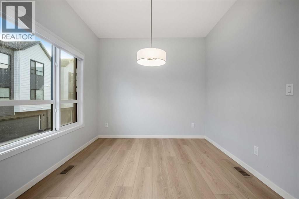 Welcome to Seton Serenity, an exceptional residence in one of Calgary’s most coveted communities, masterfully crafted by the award-winning CedarGlen Living. Offering nearly 1,748.55 sqft of refined living space, this exquisite 3-bedroom, 2.5-bathroom home blends timeless sophistication with modern comfort. Soaring 9' ceilings, expansive windows, and luxury vinyl plank flooring set the stage for an airy, light-filled interior. The north-facing balcony frames captivating views of the tranquil wet pond, creating a seamless connection between indoor comfort and outdoor serenity. The chef-inspired kitchen is nothing short of spectacular, featuring chic white cabinetry, gleaming quartz countertops, a designer subway tile backsplash, premium stainless-steel appliances, and an expansive island with seating—perfect for both intimate dinners and lavish entertaining. Flowing effortlessly into the dining area and spacious living room, the open layout invites gatherings with an air of refinement. The upper level is crowned by the sumptuous primary suite, a private retreat with a large walk-in closet and a spa-like 4-piece ensuite adorned with dual vanities, quartz counters, and an oversized glass-enclosed shower. Two additional bedrooms provide versatile space for children and guests, accompanied by a beautifully appointed 4-piece bath and the convenience of upper-level laundry. The lower level features a large space that can accommodate a home office or gym, while the attached double side-by-side garage offers security and ease. Just steps away, indulge in world-class amenities including the largest YMCA in North America, the renowned South Health Campus, boutique shopping, gourmet dining, and vibrant cafés. This is more than a home—it is a statement of luxury, comfort, and lifestyle in the heart of Seton. (id:58070)