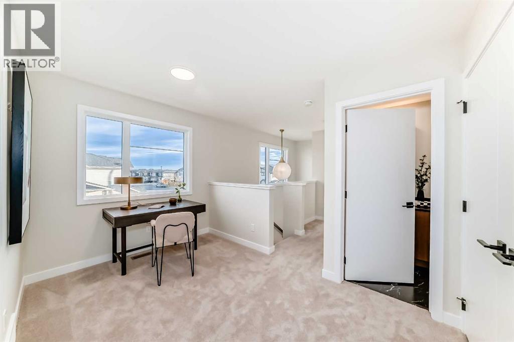 ** Open House at showhome - 120 Clydesdale Ave, Cochrane - November 26th 4-6pm, November 27th 1-4pm, November 29th 12-3pm, November 30th 12-4pm and December 2nd 2-5pm ** Welcome to this beautifully crafted semi-detached Talo model by Rohit Homes, situated in the vibrant and rapidly growing community of Heartland in Cochrane. This home is an excellent fit for families, first-time buyers, or anyone looking to right-size without compromising on style or versatility.Offering 3 bedrooms, 2.5 bathrooms, and 1,520 sq. ft. of well-designed living space, this brand-new home features a bright, open-concept main floor with 9' ceilings and a seamless connection between the kitchen, dining, and living areas—ideal for both daily living and entertaining.The contemporary kitchen serves as the focal point, complete with quartz countertops, a central island, and modern cabinetry that blend practicality with sophisticated design. At the rear, a double detached parking pad provides convenient parking and extra storage while preserving the home’s inviting curb appeal.Upstairs, the spacious primary suite includes a private ensuite and generous closet space, complemented by two additional bedrooms and a full bathroom—ideal for kids, guests, or a home office. A convenient upper-floor laundry room adds to the everyday ease of living.Set in the dynamic community of Heartland, you'll enjoy quick access to parks, schools, scenic pathways, local amenities, and major routes—making commuting to Calgary or weekend escapes to the mountains a breeze. Don’t miss your chance to live in this stylish and functional duplex in one of Cochrane’s most desirable new neighborhoods—schedule your private showing today! Please (id:58070)