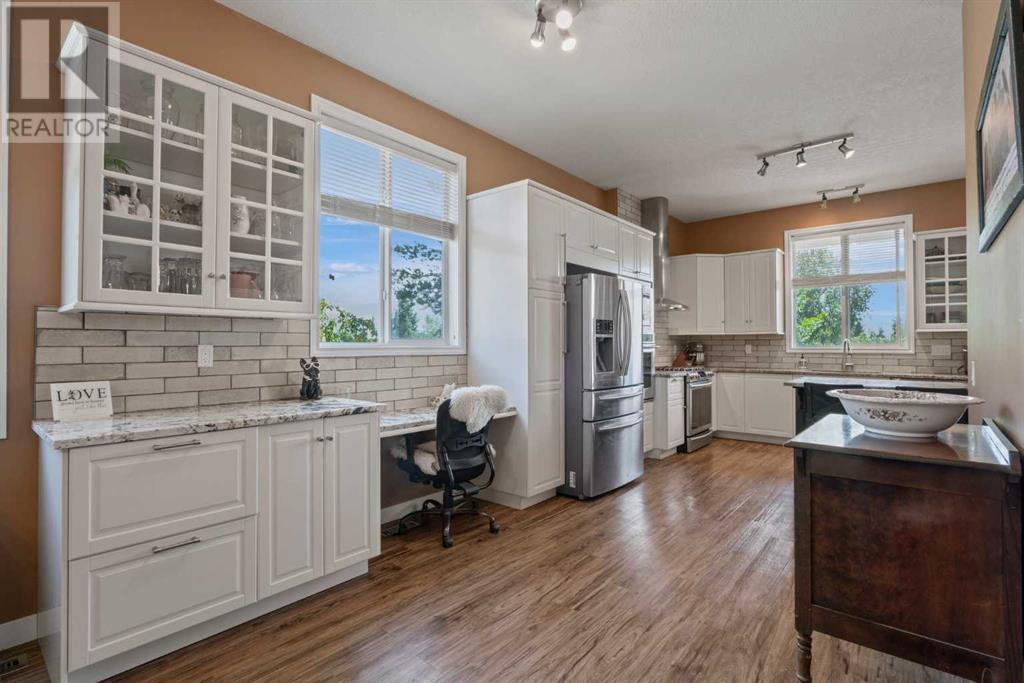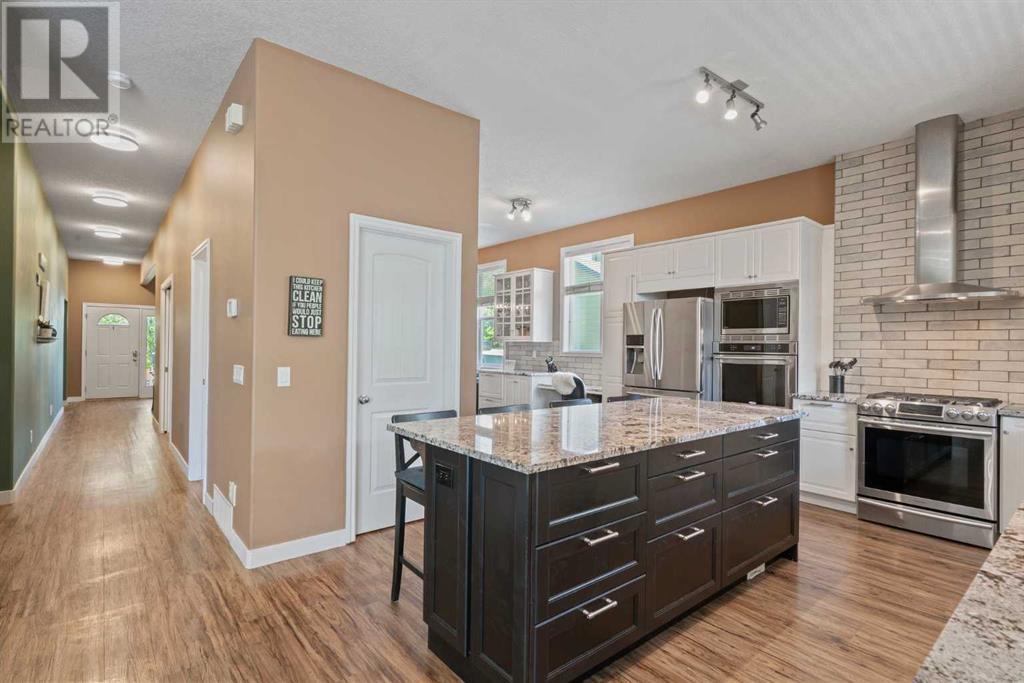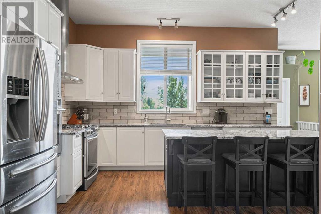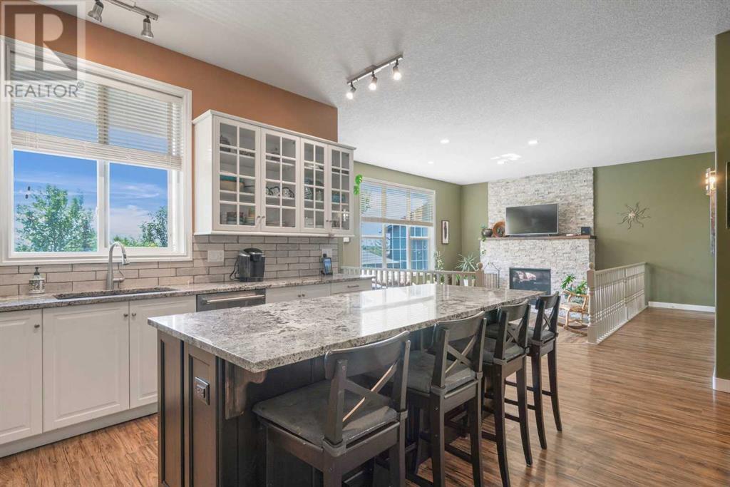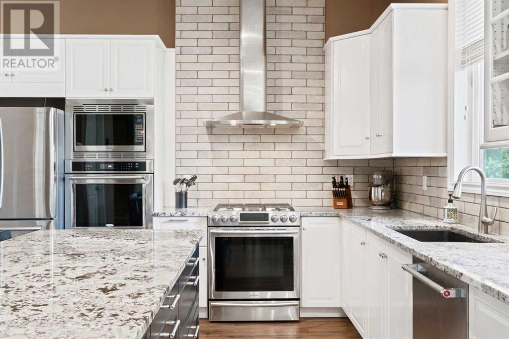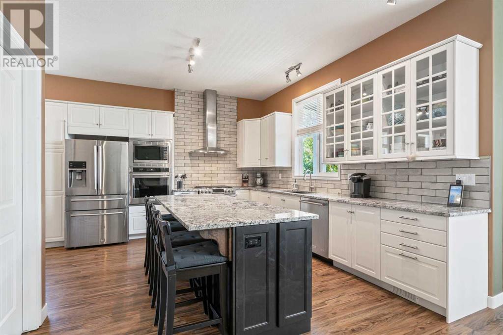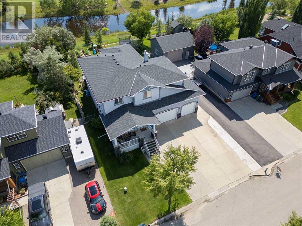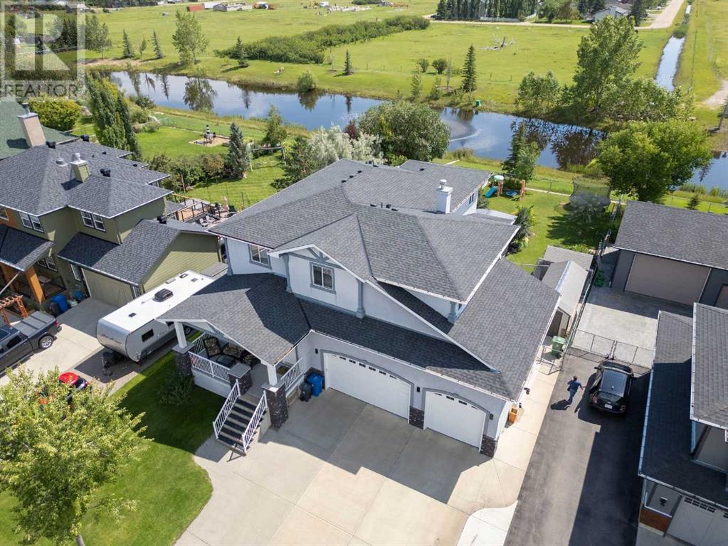 Exceptional Custom Family Home Backing Onto a Scenic Pond with Fountain.Discover the perfect blend of luxury, space, and functionality in this stunning custom-built family home nestled in a tranquil setting with picturesque views of a serene pond and fountain. With over 3,000 sq. ft. of thoughtfully designed living space, this home offers everything your growing family needs—and more!Step inside to soaring 10-foot ceilings on the main floor and 9-foot ceilings upstairs, creating a sense of openness and elegance throughout. The heart of the home is the updated gourmet kitchen, complete with granite countertops, stainless steel appliances, a massive island, and an abundance of custom cabinetry— flowing effortlessly into a spacious dining room ideal for family gatherings, perfect for hosting and daily living. The sunken living room adds character and comfort.Upstairs, you'll find five oversized bedrooms, including a luxurious primary suite with a private balcony, and spa-inspired ensuite featuring a jetted tub and steam shower. A sixth large bedroom is located in the fully developed basement, which also boasts in-floor heating for year-round comfort.Enjoy the outdoors from your maintenance-free deck or gather around the backyard fire pit under the stars. The immaculately landscaped yard includes underground sprinklers and irrigated garden beds, making it easy to maintain your personal oasis.Additional highlights include:Heated triple attached garage with 9-foot doors3 full bathrooms plus a convenient half bath.Two furnaces, two air conditioners, two hot water tanks, and two sump pumps for optimal efficiency.Roof replaced in 2018.This extraordinary home truly has it all—space, luxury, and a premium location backing onto nature with rural views and privacy. Don’t miss your opportunity to make this dream home yours! (id:58070)