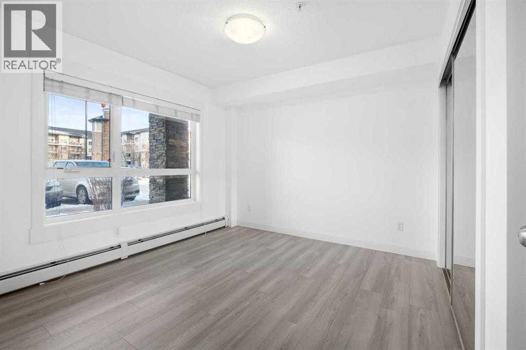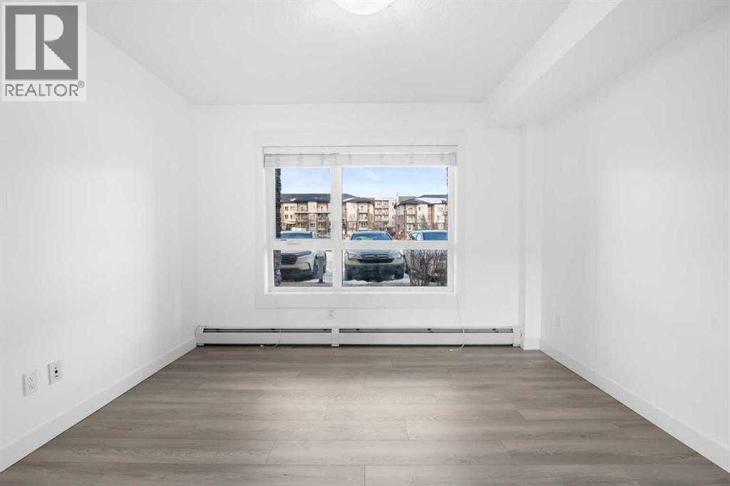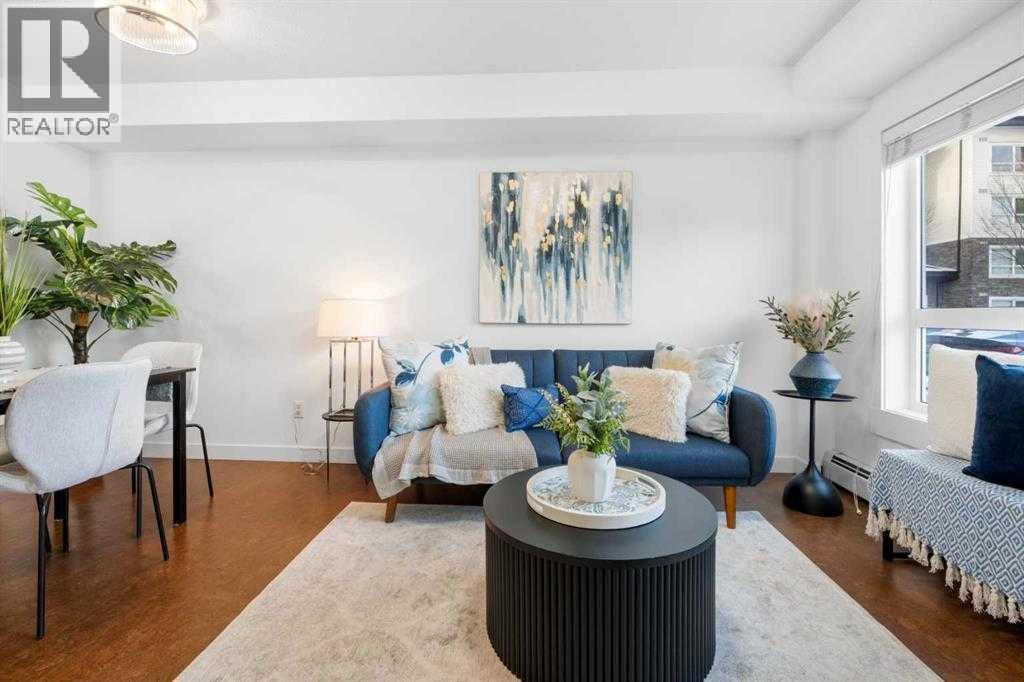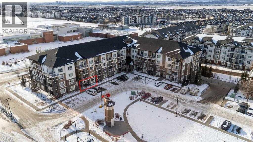 Welcome to this bright and well-laid-out ground-floor apartment in the heart of Skyview Ranch—perfectly positioned directly across from both Public and Catholic schools, making it an ideal choice for families and future resale value.This 2-bedroom, 1-bathroom unit offers approximately 630 sq. ft. of intelligently designed living space, making every square foot count—whether you’re a first-time buyer, downsizer, or investor looking for a low-maintenance property with strong rental appeal.The kitchen is built for both function and style, featuring granite countertops, stainless steel appliances, and a central island that comfortably seats three—perfect for casual dining or entertaining. It flows seamlessly into the open dining and living area, creating a clean, connected space that feels larger than it is.The living room opens directly onto your private exposed concrete patio through a glass-panel door, complete with a gas line—set up for effortless BBQs and outdoor enjoyment without the hassle of stairs or elevators.Both bedrooms are generously sized, with the primary bedroom offering dual closets for added storage and convenience. You’ll also appreciate the in-suite laundry with extra storage space, plus titled surface parking for easy access year-round.Located in a well-managed complex, you’re just minutes from public transit, shopping, playgrounds, and major roadways, with quick access to CrossIron Mills and Calgary’s key routes—making daily life simple and efficient.This is the kind of property that checks all the boxes: location, functionality, and long-term value.Book your private showing today—opportunities like this don’t stay on the market for long. (id:58070)