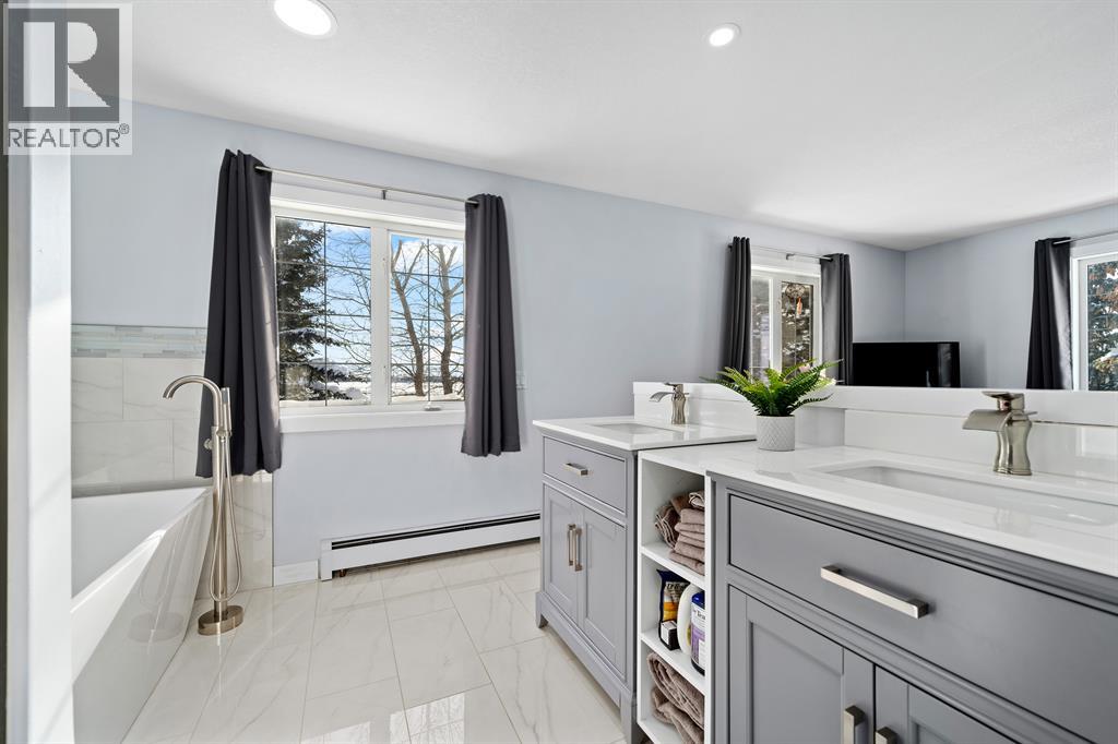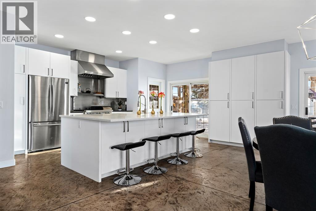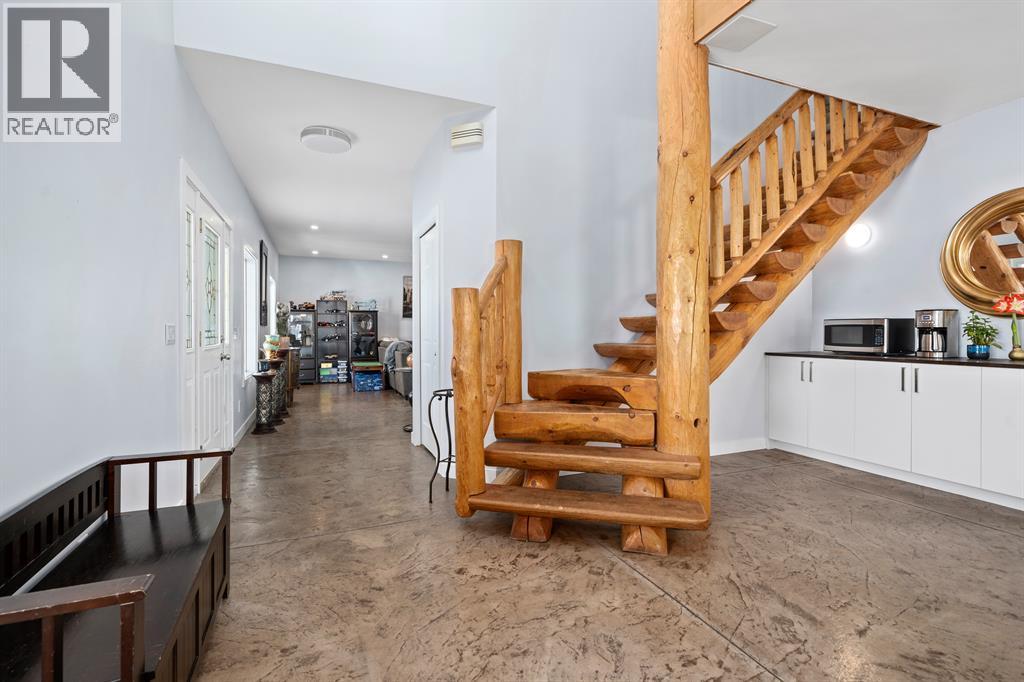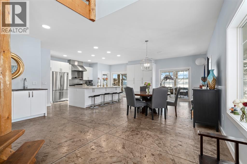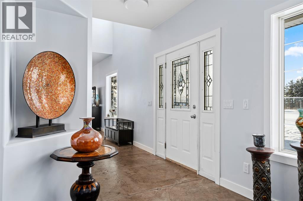 RARE LIVE/WORK OPPORTUNITY WITH EXCELLENT ROAD EXPOSURE FOR YOUR BUSINESS! 3.35 ACRES, ZONED C-HWY (MIXED USE, SEE SUPPLEMENTS FOR DETAILS). This one-of-a-kind property is located 10 minutes north of Cochrane (HWY 22 & HWY 567) and offers a fully renovated 2751 SQ FT home with a 4169 SQ FT commercial space. The bright and open main floor features a spacious living room with office space, a cozy dining room, and a 3 piece bath/laundry all highlighted by gorgeous stamped concrete floors. The luxurious chef’s kitchen offers quartz countertops, a spacious island/breakfast bar, a coffee station with a second sink, ample cabinet space, and high-end appliances – perfect for entertaining and the at-home gourmet. Upstairs, relax in the primary retreat which includes an upscale 5-piece ensuite (relaxing soaker tub, stand-up shower, double sinks), a large walk-in closet, and views of the Rocky Mountains. Completing the upstairs are 3 additional bedrooms, a 4 piece bathroom, and plenty of storage. You will fall in love with the oversized (49'2" x 21'2" 0), heated/insulated garage where you could easily park 6 vehicles/toys - perfect for a home mechanic, car enthusiast, or tradesperson. The commercial space offers a huge showroom, front desk, office, 2 bathrooms, loft/office, and additional garage. This space is ideal for any entrepreneur or established business. Other features included a custom log wood staircase, a large patio, new chain link fencing & amazing views. Ideally located just minutes from Cochrane and a short commute to Calgary this property offers huge potential and would be hard to recreate. Please reach out for more details and to arrange a private viewing. *** RESIDENTIAL - 2751 SQ FT, COMMERCIAL - 4169 SQ FT. *** (id:58070)